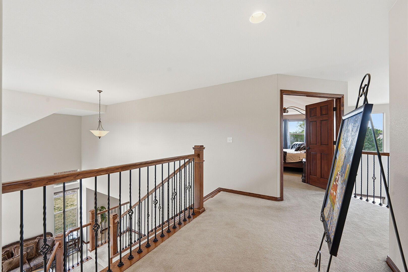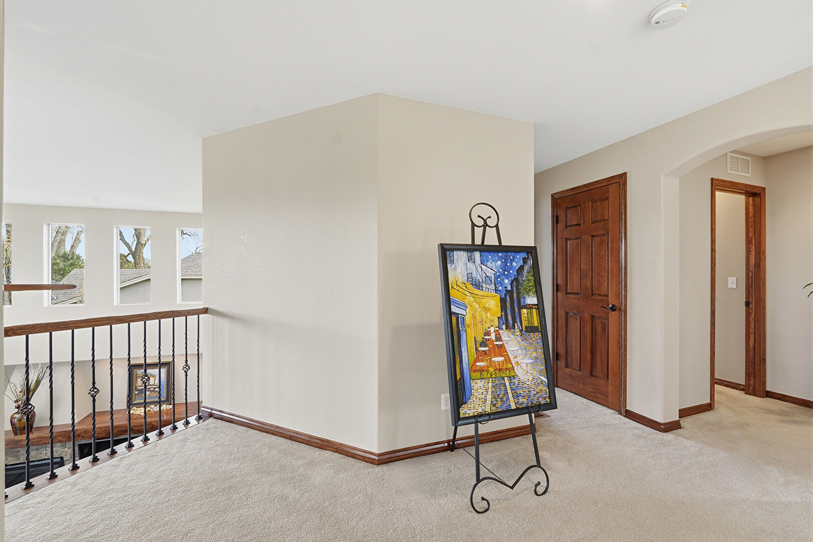 Arched Walkways, Baseboards Wall, Carpet, Drywall, Loft, Natural Light, Recessed Lighting, Smoke Carbon Monoxide Detector, Upstairs Landing, Vaulted Ceiling, Vent, Loft, Natural Light