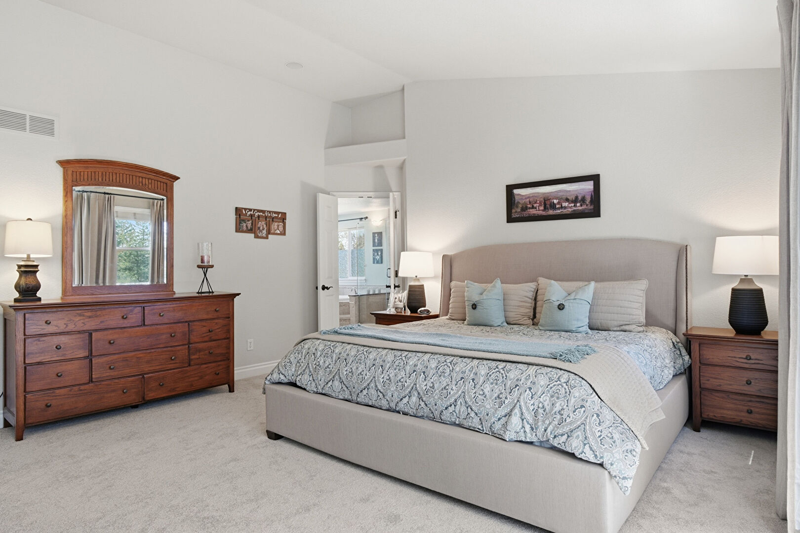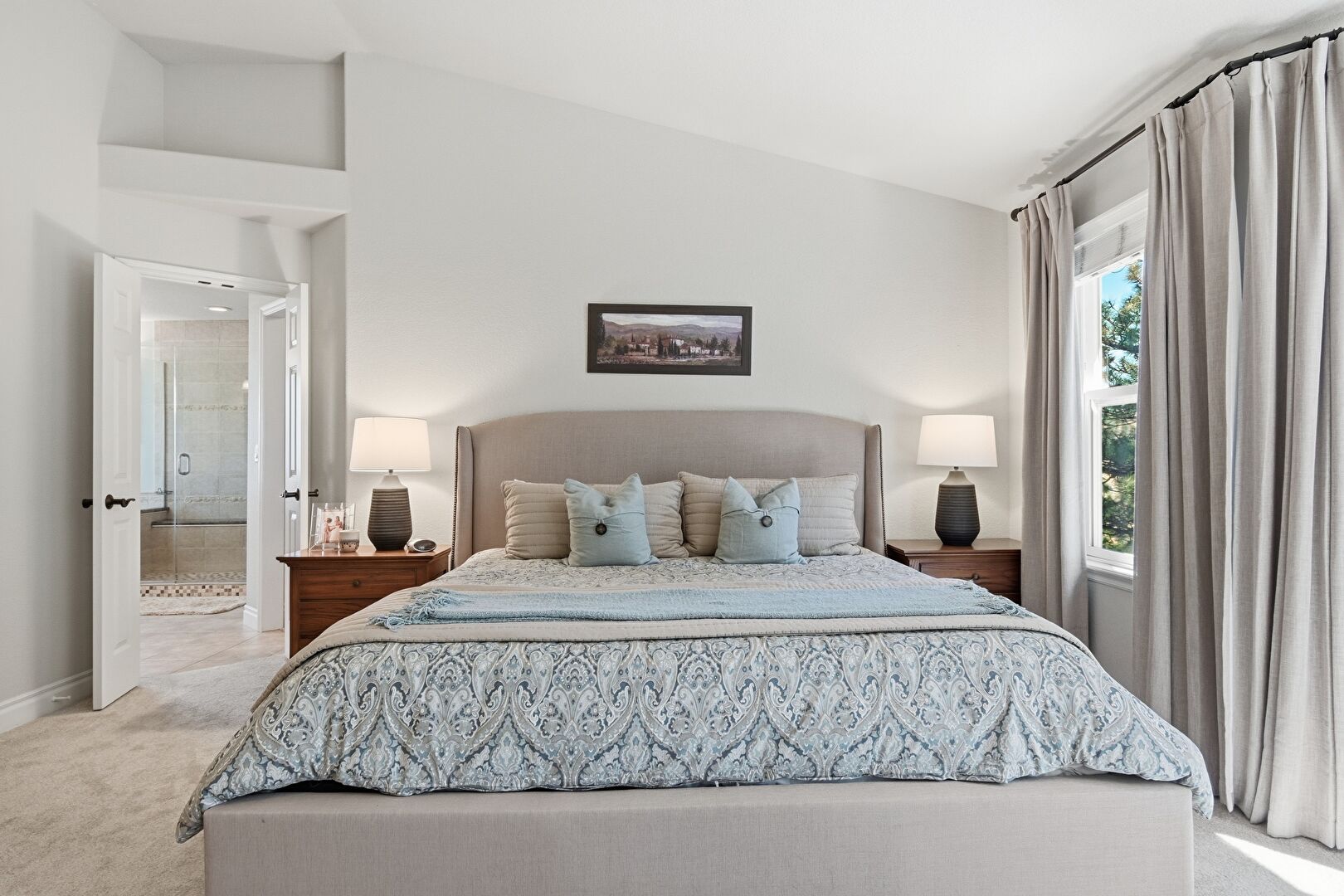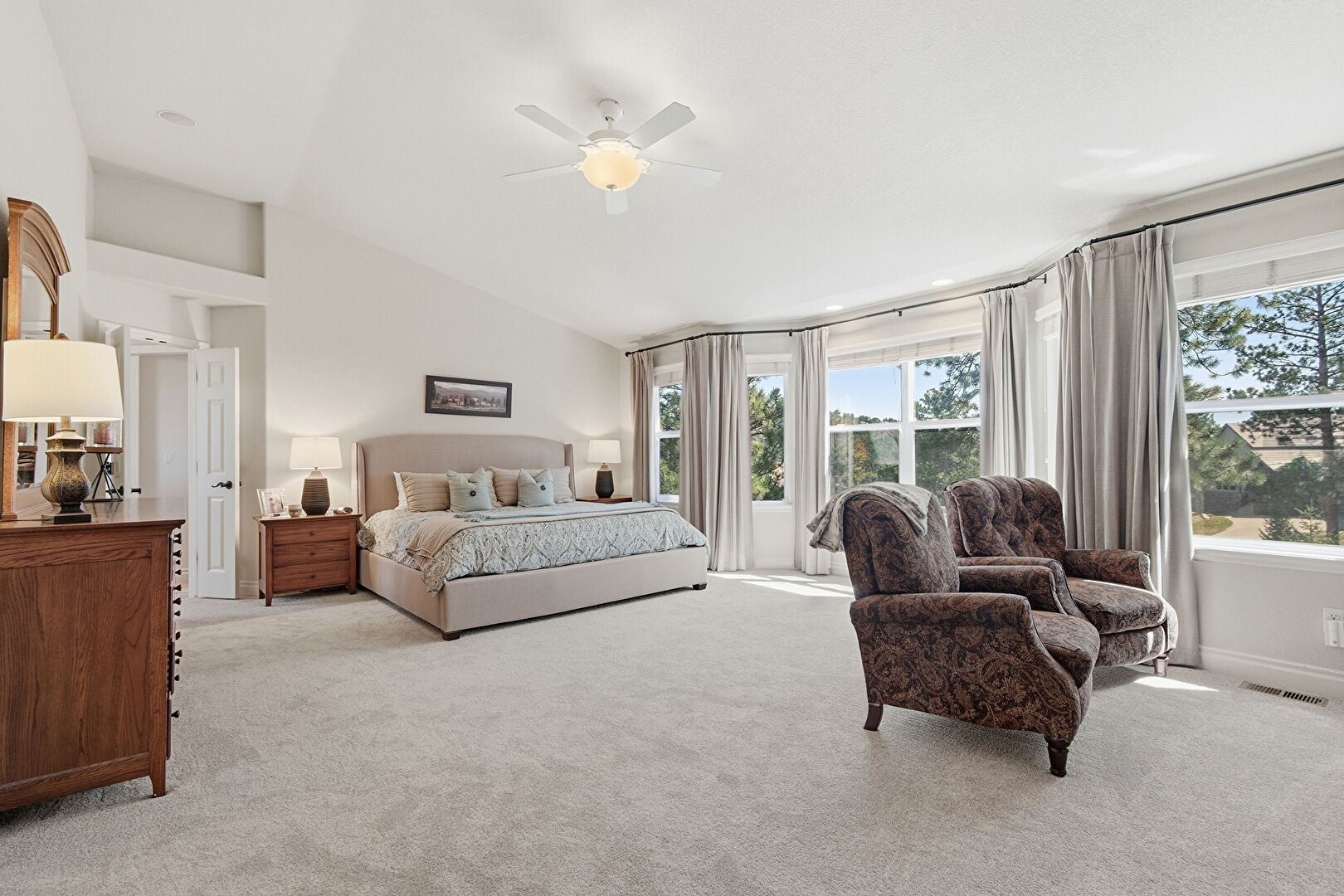 Baseboards Wall, Built In Desk, Carpet, Ceiling Fan, Closet, Drywall, Ensuite Bathroom, Fireplace, High Ceiling, Natural Light, Office Area, Recessed Lighting, Smoke Carbon Monoxide Detector, Vaulted Ceiling, Vent, Baseboards Wall, Carpet, Ceiling Fan, Drywall, High Ceiling, Natural Light, Vaulted Ceiling