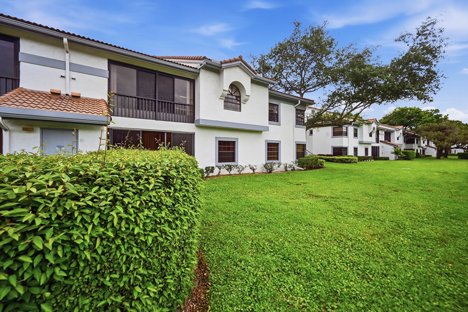 Balcony, Downspout, Gutters, Lawn, Stairs, Stoop, Stucco Siding, Tile Roof, Downspout, Lawn, Stairs, Sunroom, Water View