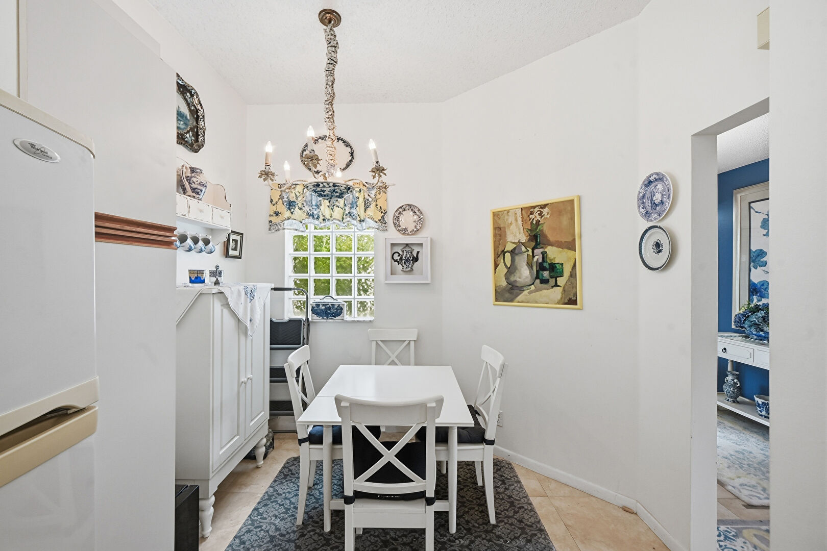 Baseboards Wall, Drywall, Natural Light, Tile Floor, Notable Chandelier