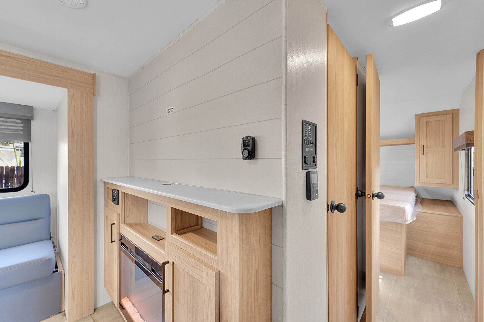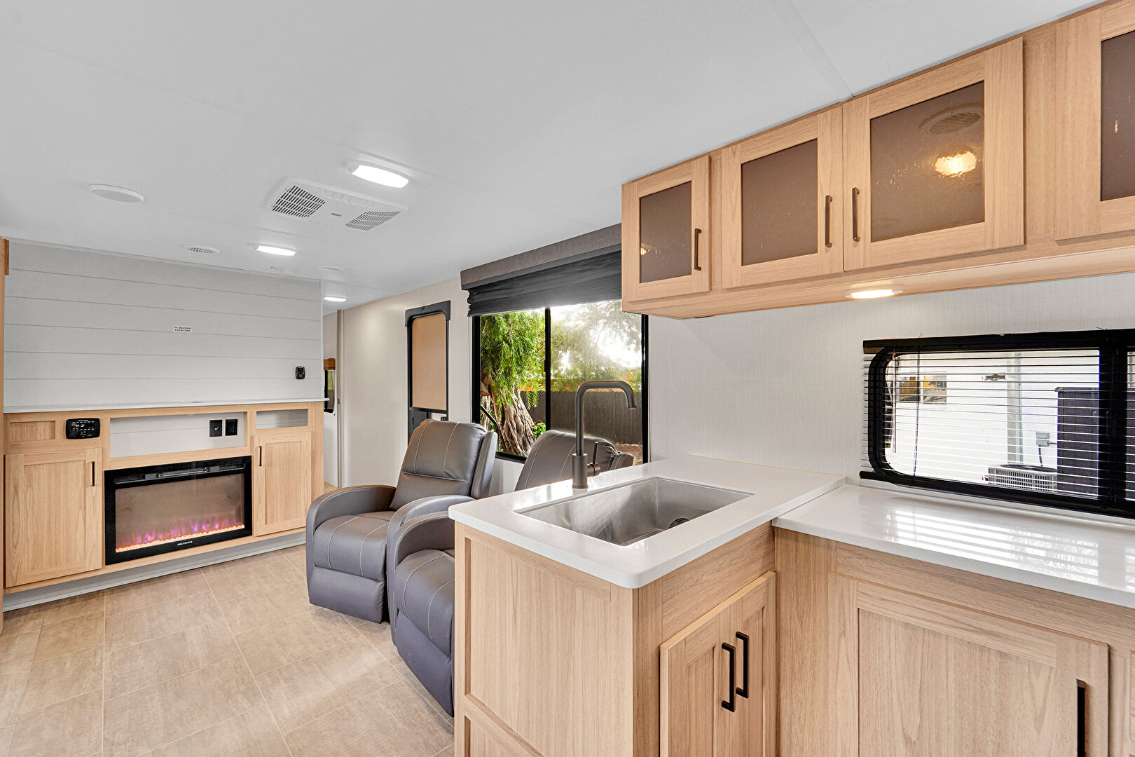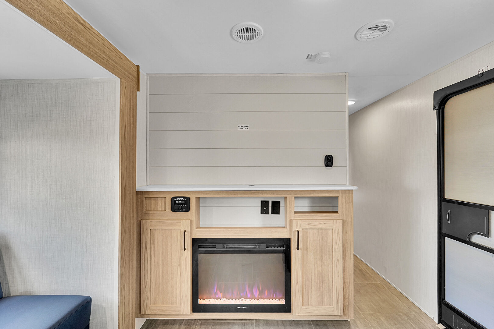 Drywall, Fireplace, Natural Light, Recessed Lighting, Shaker Cabinets, Vent, Vinyl Floor, Fireplace, Natural Light, Recessed Lighting, Vent