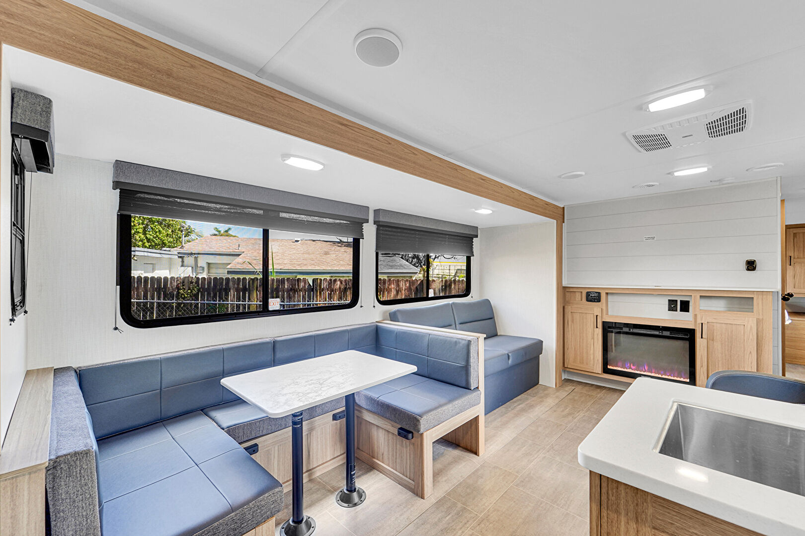 Breakfast Nook, Fireplace, Natural Light, Vent, Recessed Lighting