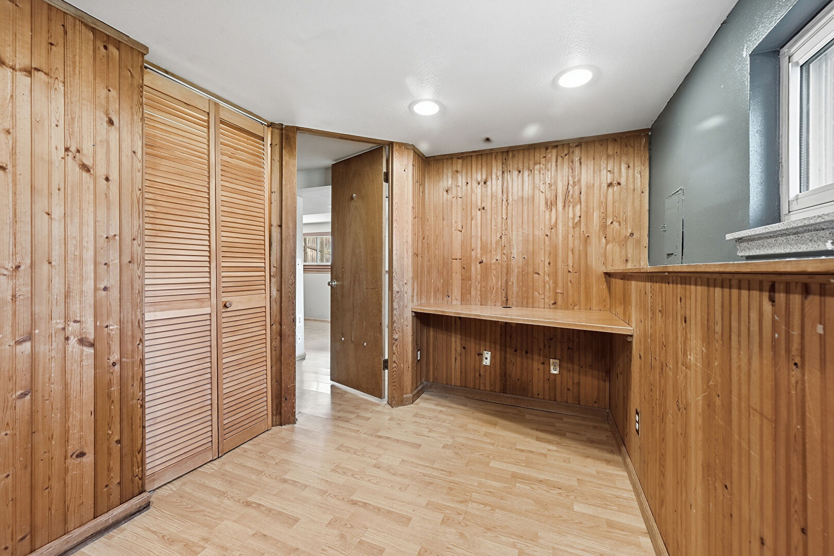 Baseboards Wall, Closet, Drywall, Natural Light, Recessed Lighting, Textured Ceiling, Vent, Wainscot Wall, Wood Finish Floor, Wood Wall, Baseboards Wall, Closet, Drywall, Electric Panel, Wood Finish Floor