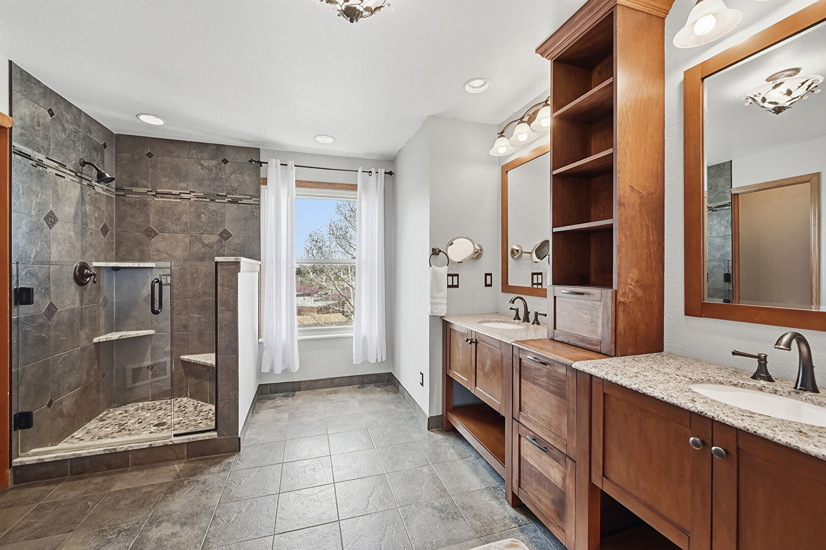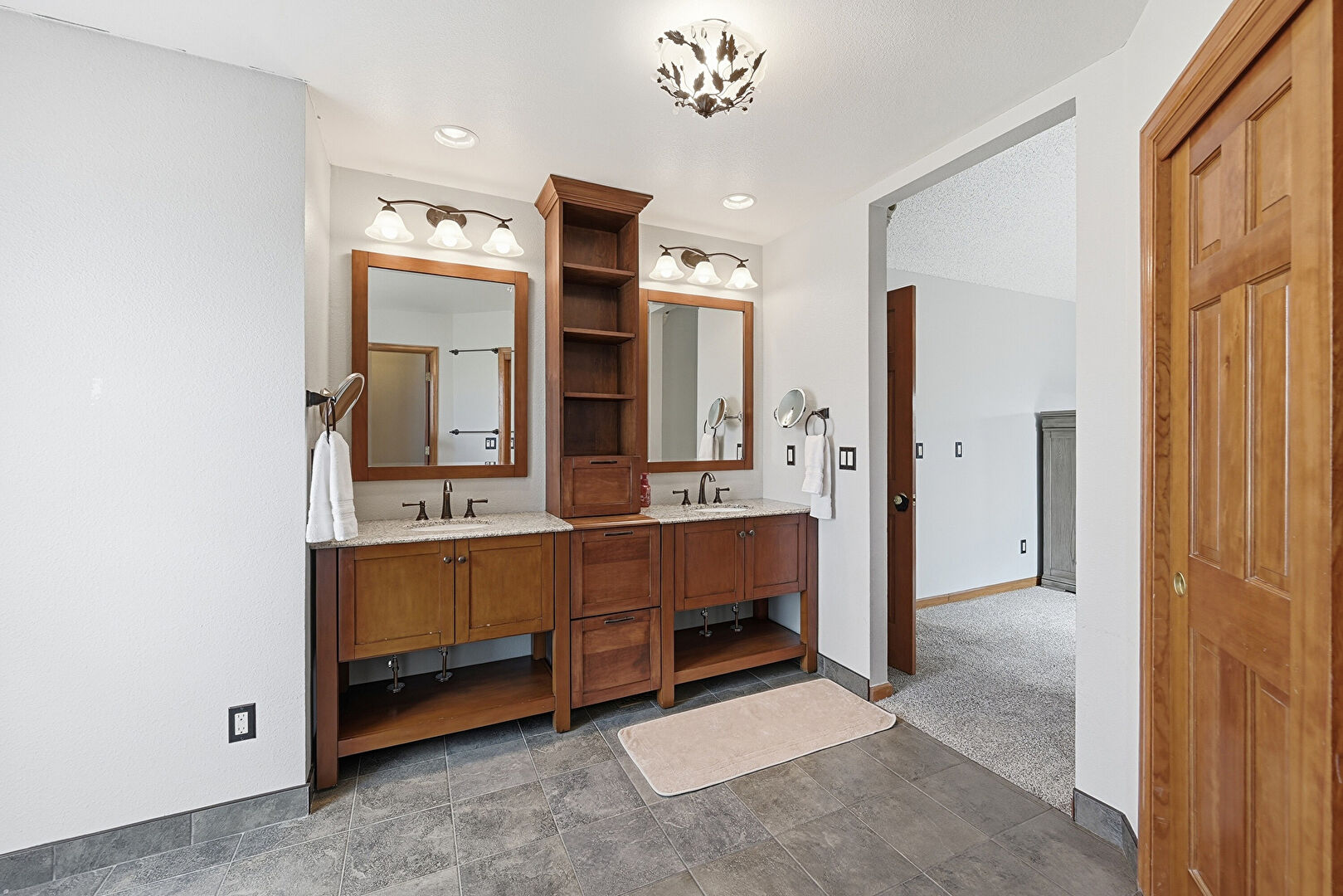 Baseboards Wall, Double Vanity, Drywall, Full Bathroom, Natural Light, Recessed Lighting, Two Single Vanities, Carpet, Drywall