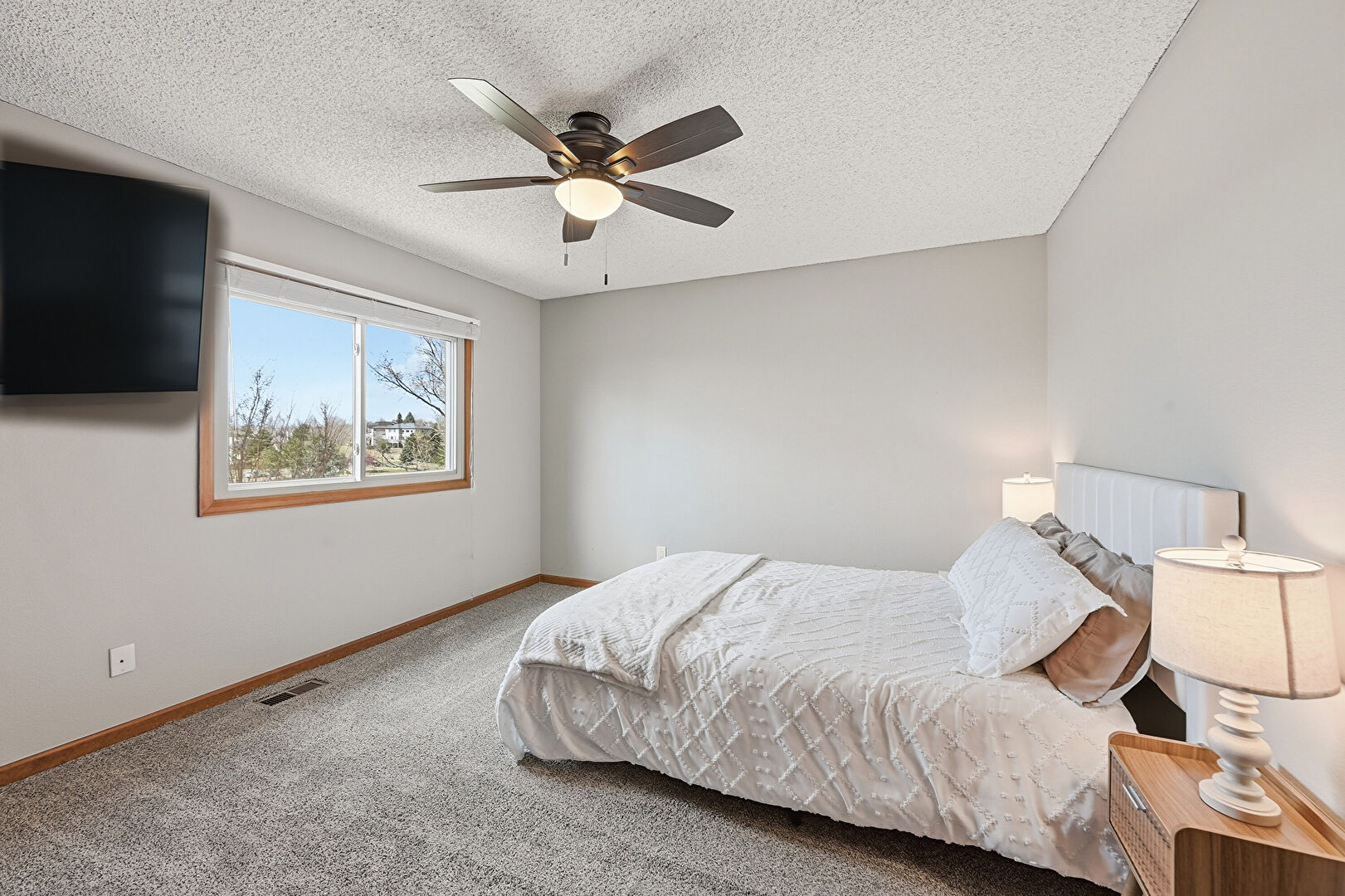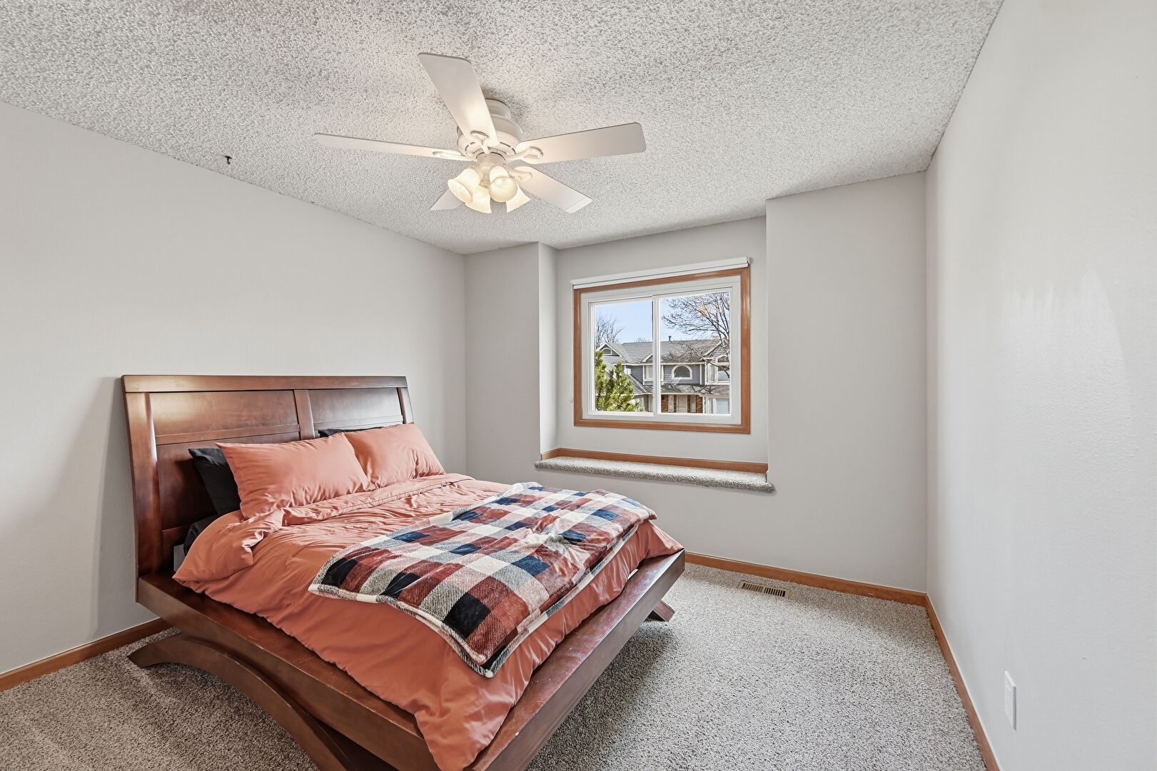 Baseboards Wall, Carpet, Ceiling Fan, Drywall, Natural Light, Textured Ceiling, Vent, Baseboards Wall, Drywall, Textured Ceiling