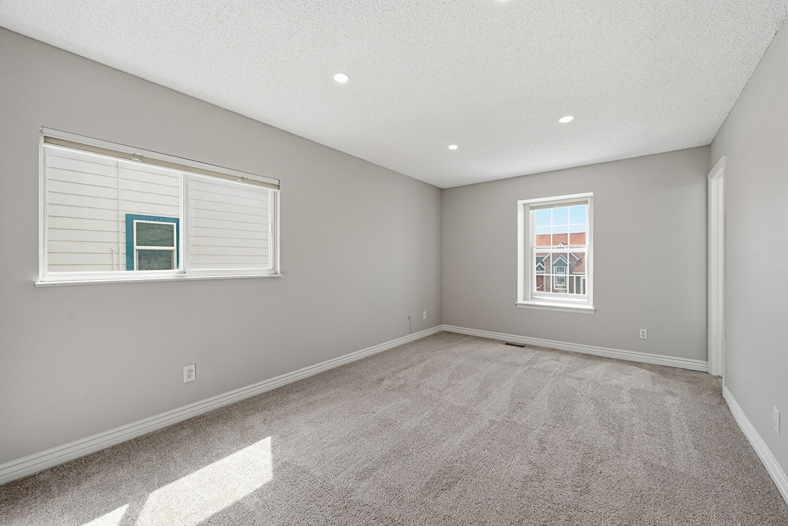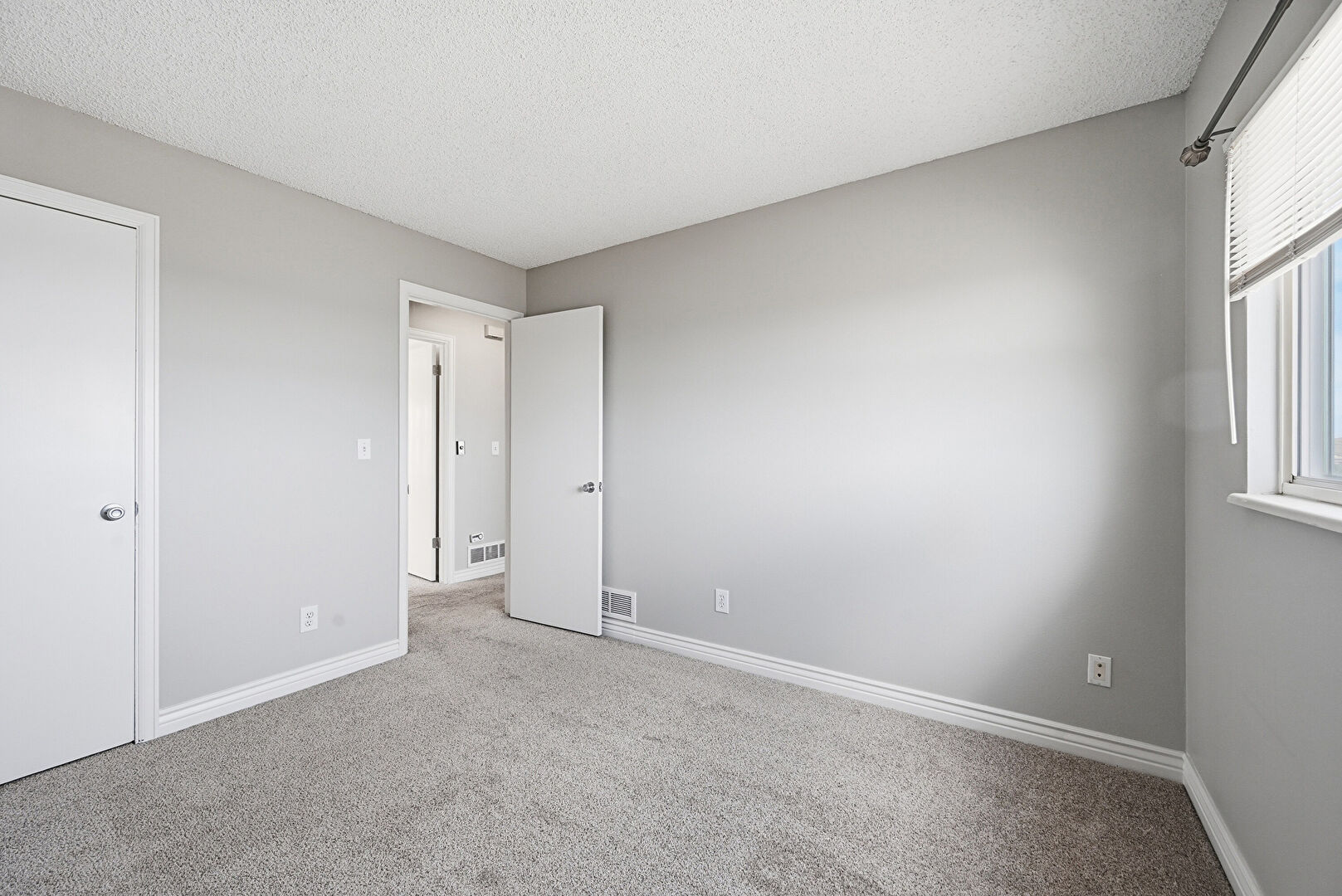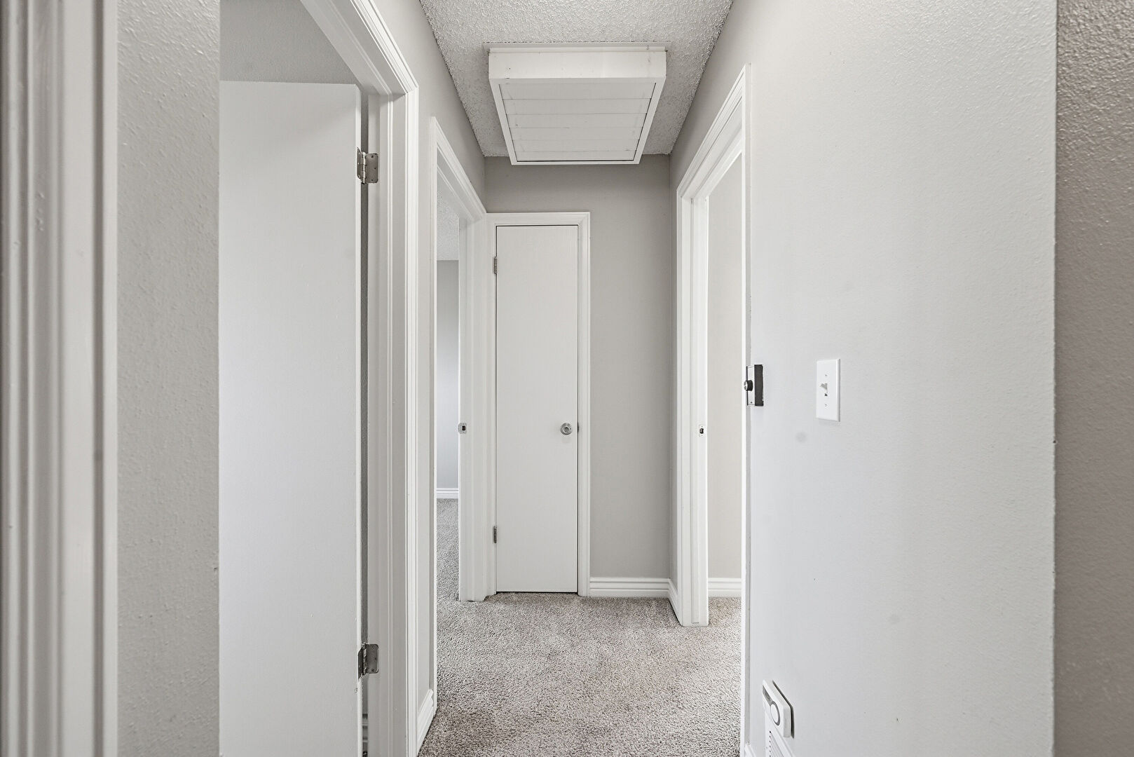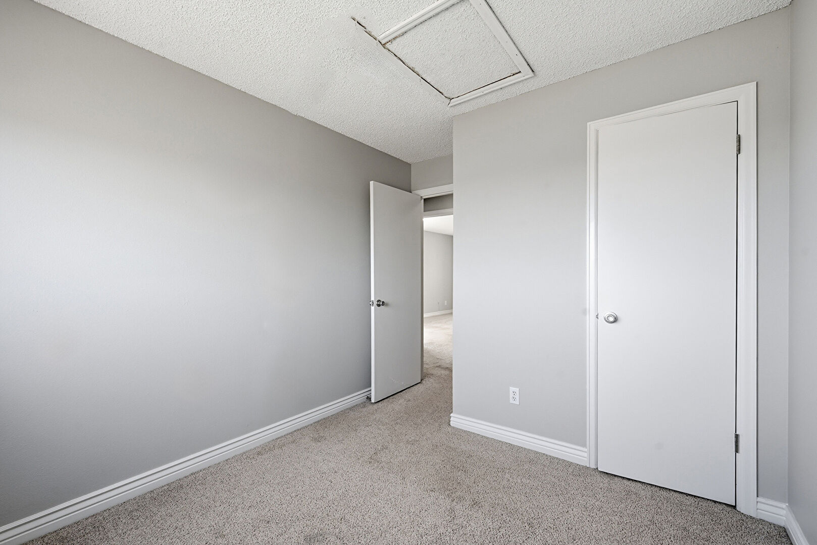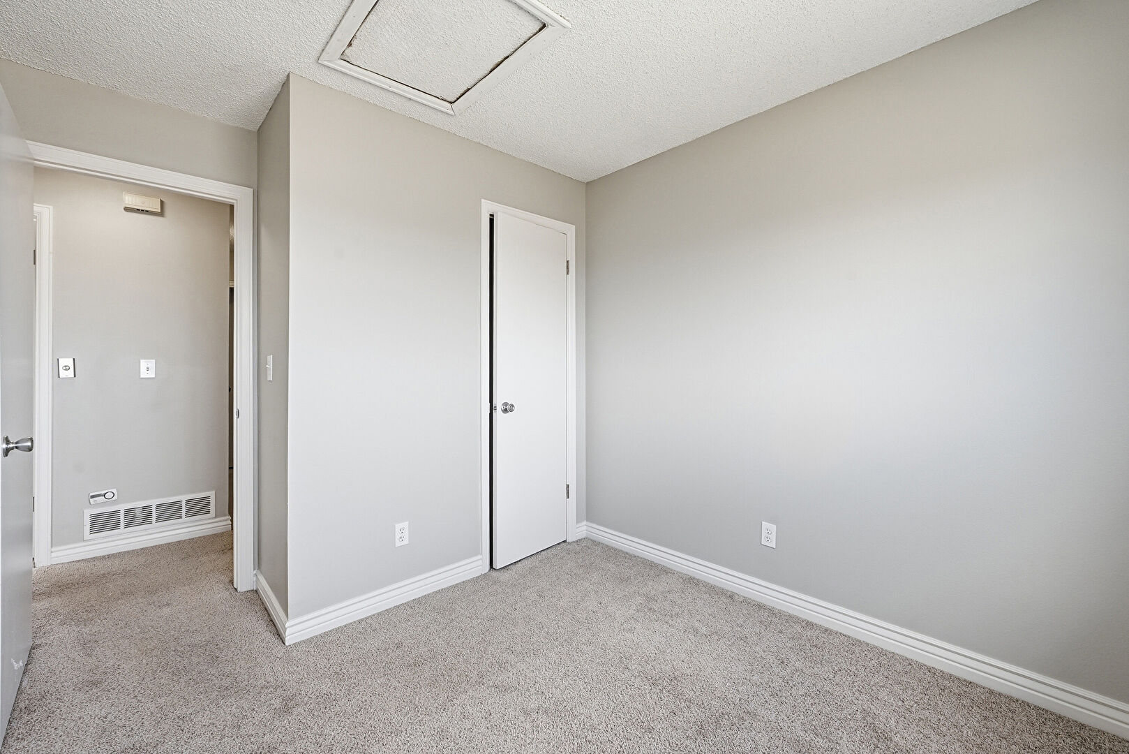 Baseboards Wall, Carpet, Drywall, Natural Light, Scuttle, Textured Ceiling, Vent, Carpet, Drywall, Natural Light, Scuttle, Textured Ceiling