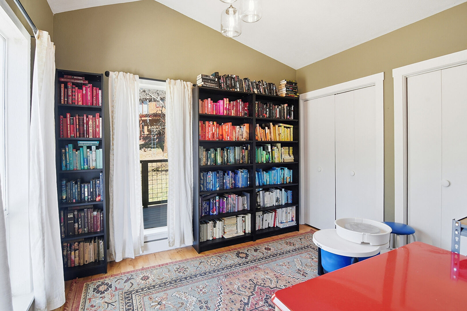 Cathedral Ceiling, Drywall, Vaulted Ceiling, Wood Finish Floor, Natural Light