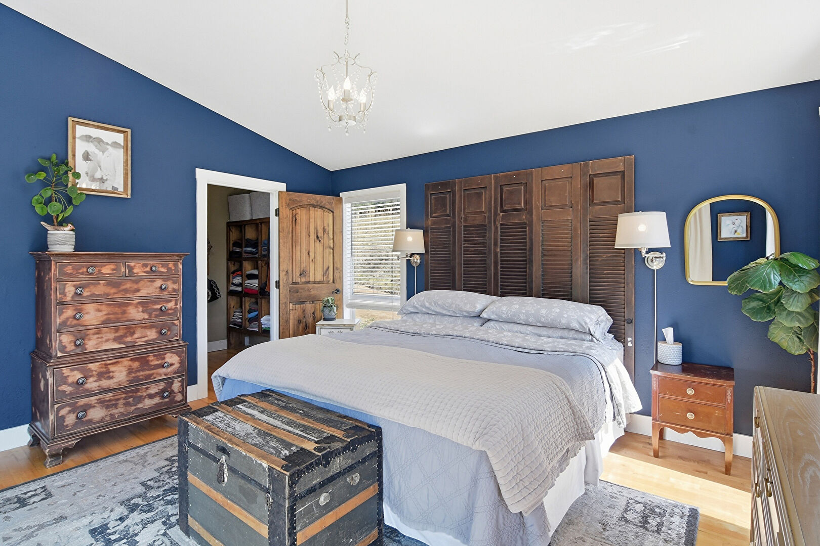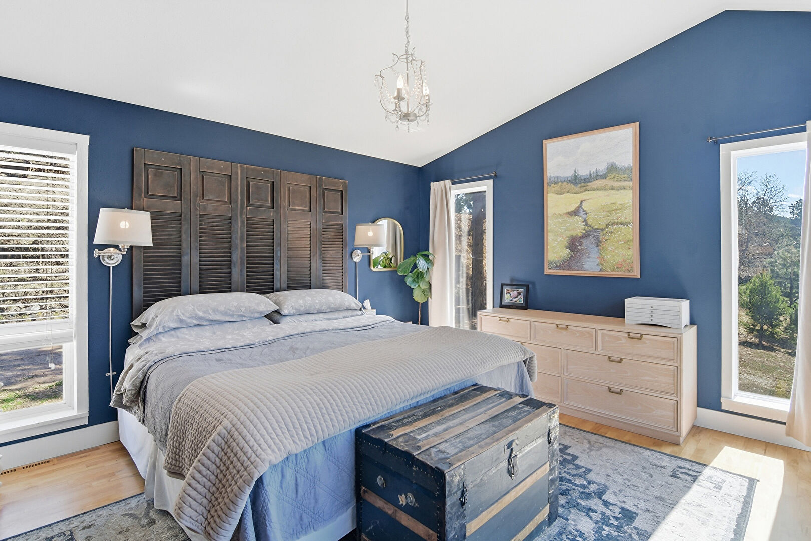 Access To Exterior, Baseboards Wall, Cathedral Ceiling, Drywall, Natural Light, Notable Chandelier, Vaulted Ceiling, Vent, Walk In Closet, Wood Finish Floor, Baseboards Wall, Drywall, Natural Light, Notable Chandelier