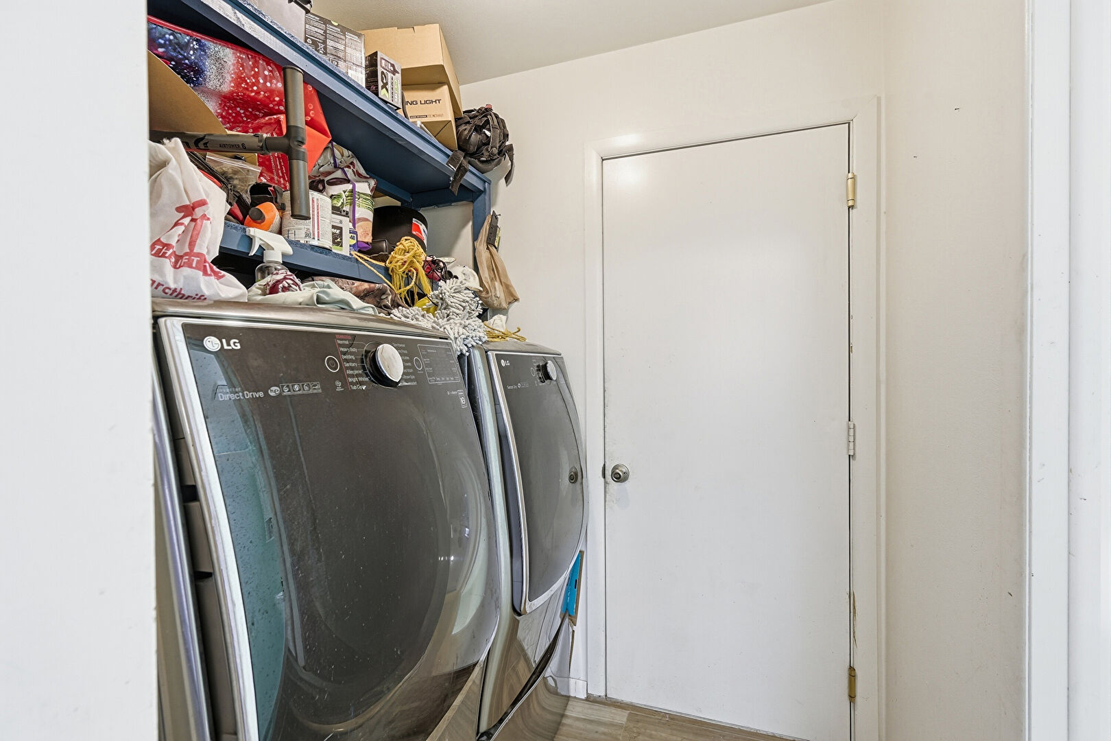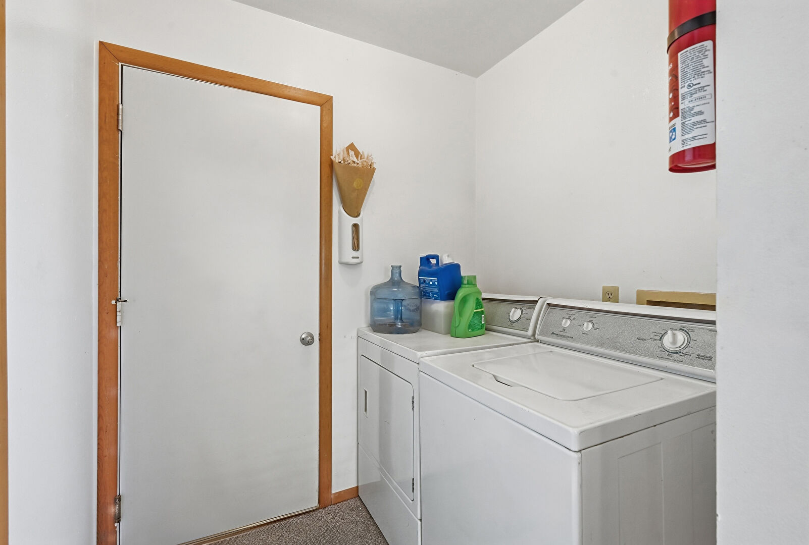 Baseboards Wall, Drywall, Fire Extinguisher, Laundry, Wood Finish Floor, Laundry, Washer Hookup