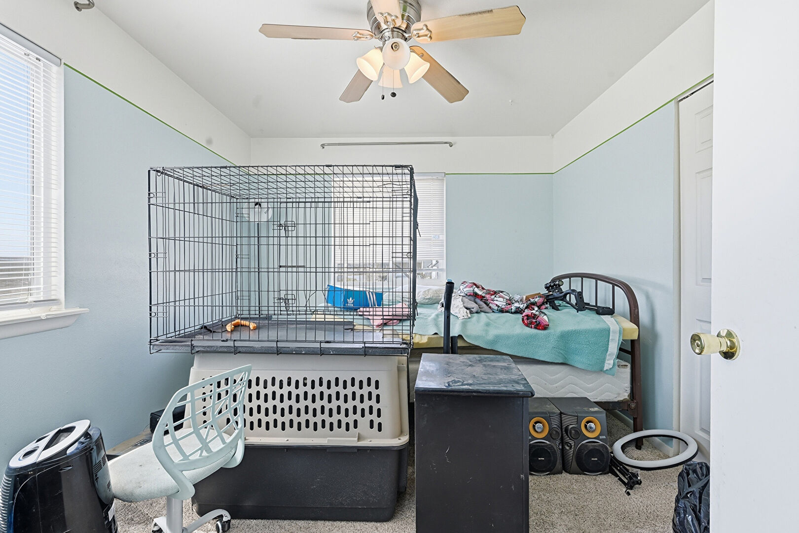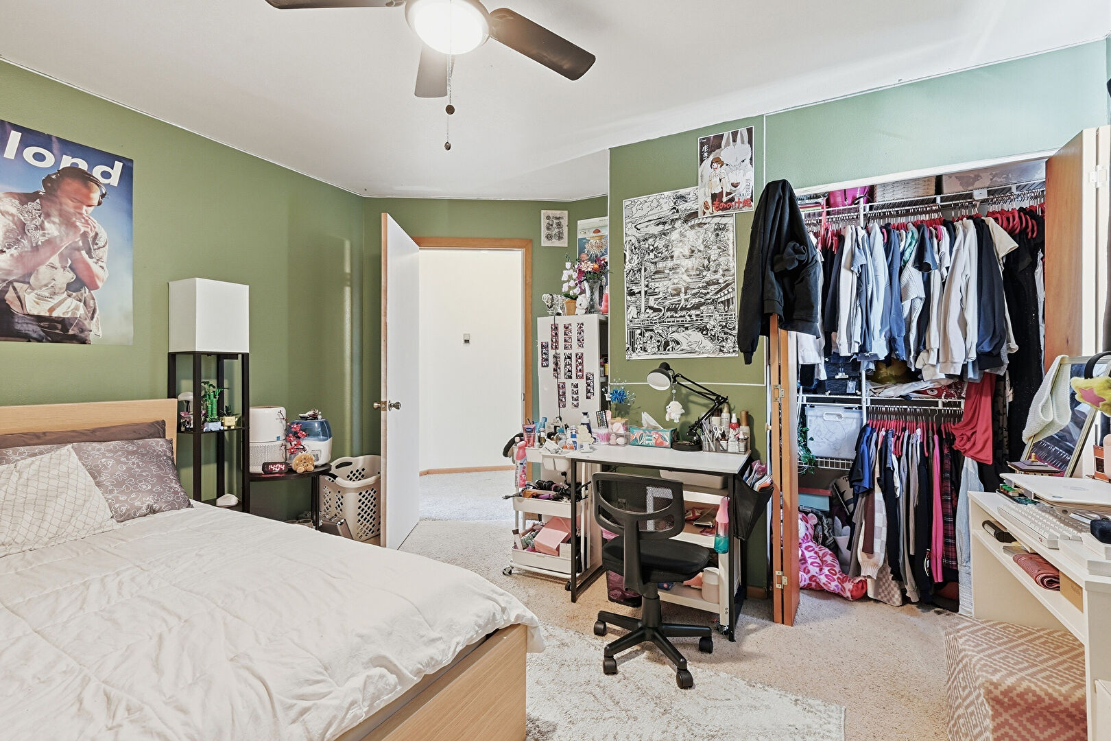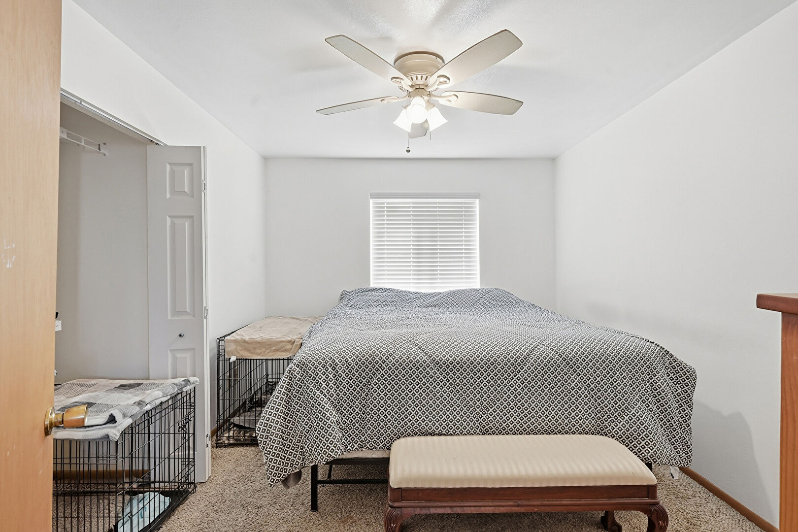 Carpet, Closet, Drywall, Natural Light, Ceiling Fan