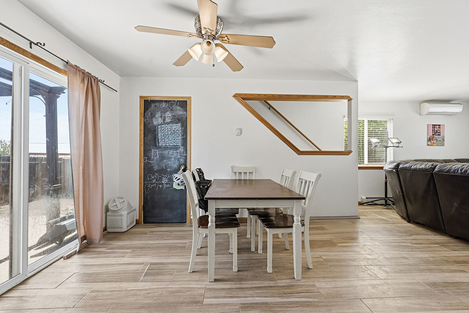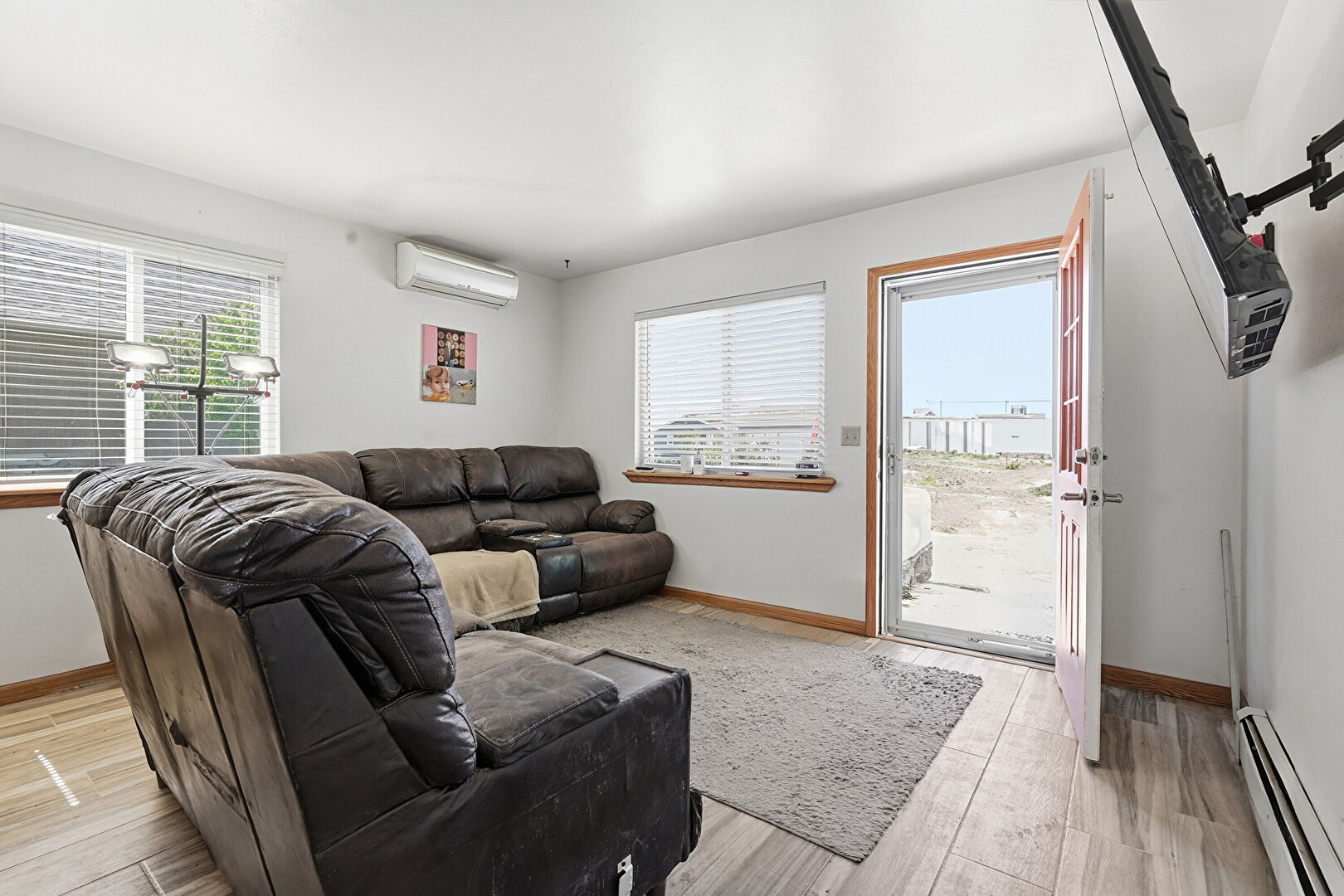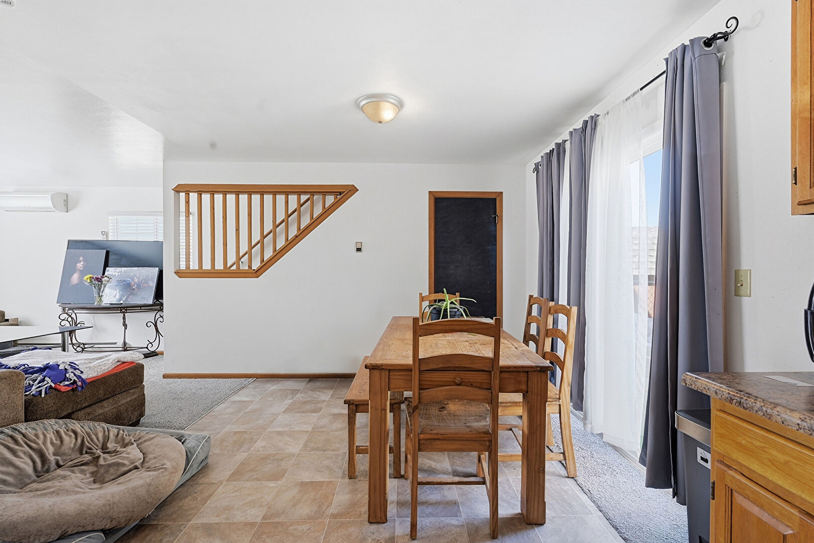 Baseboard Radiator, Baseboards Wall, Carpet, Ceiling Fan, Drywall, Natural Light, Stairs, Vent, Wall Mounted Ac, Wood Finish Floor, Baseboards Wall, Carpet, Natural Light, Wall Mounted Ac