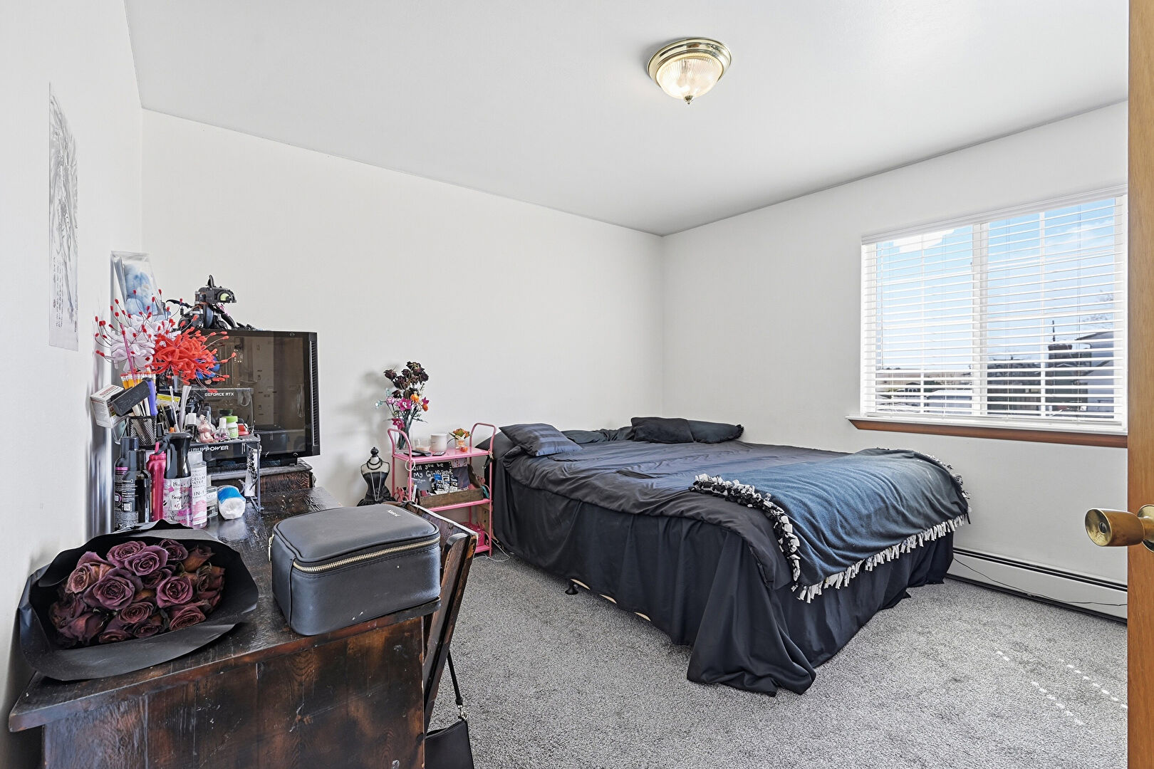 Baseboard Radiator, Carpet, Ceiling Fan, Closet, Drywall, Natural Light, Office Area, Baseboards Wall, Carpet, Wood Finish Floor