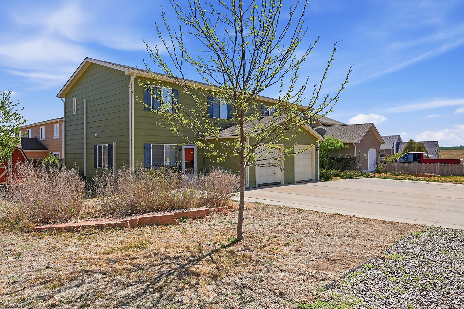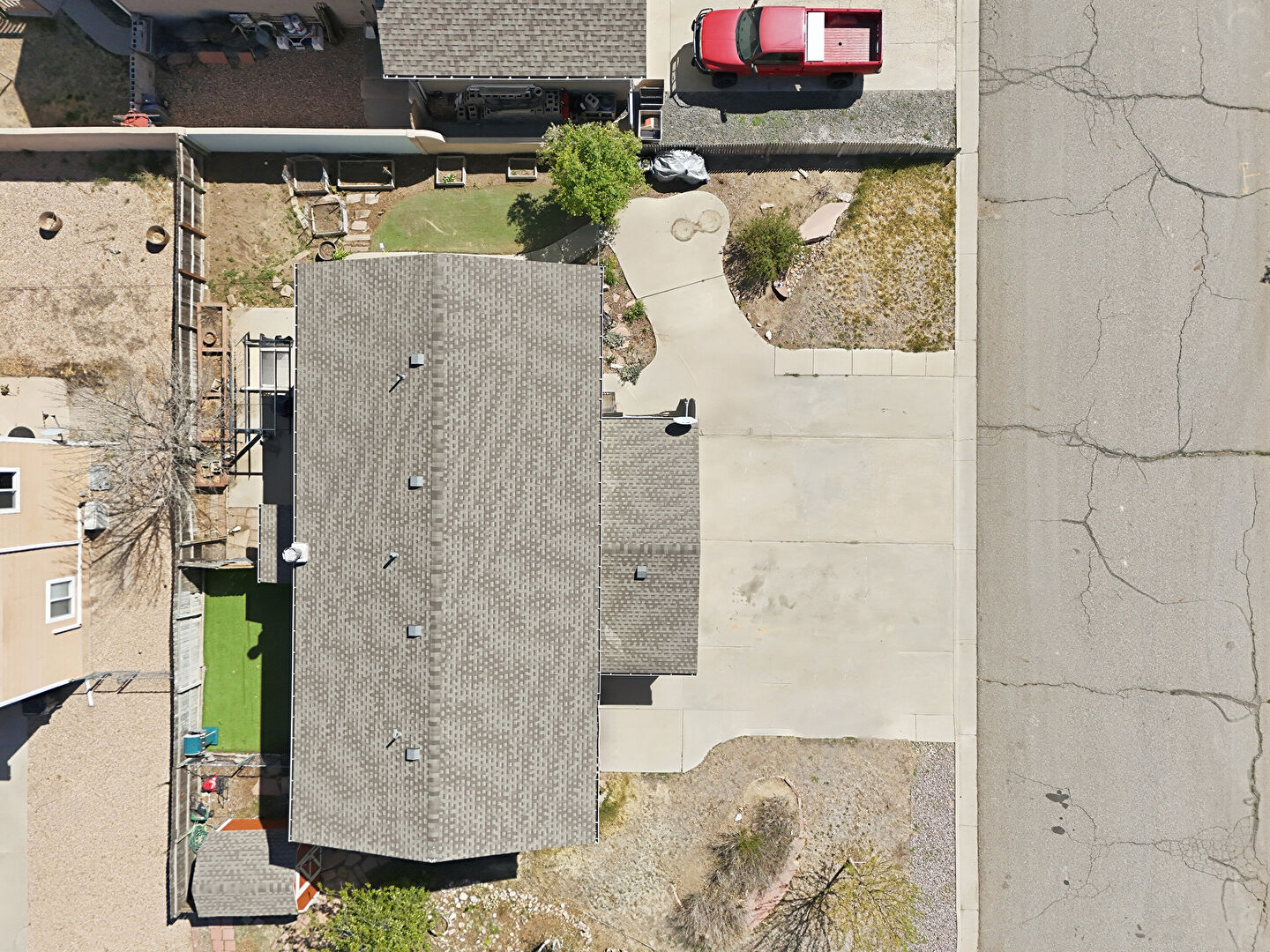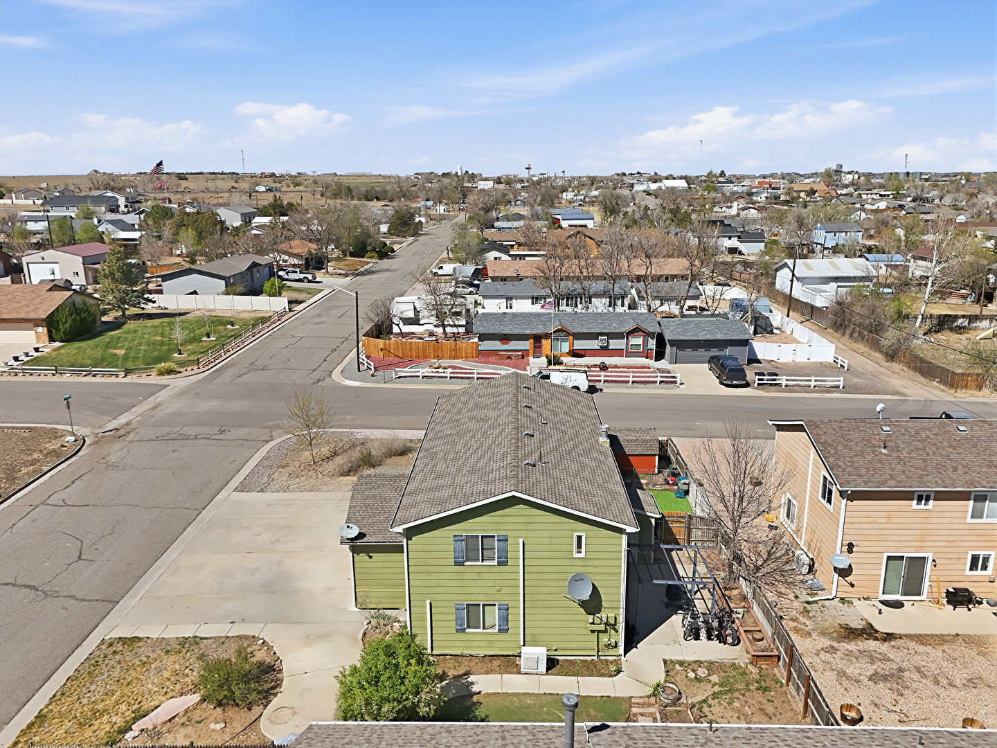 Downspout, Driveway, Fence, Gutters, Horizontal Siding, Lawn, Patio, Satellite Dish, Downspout, Horizontal Siding