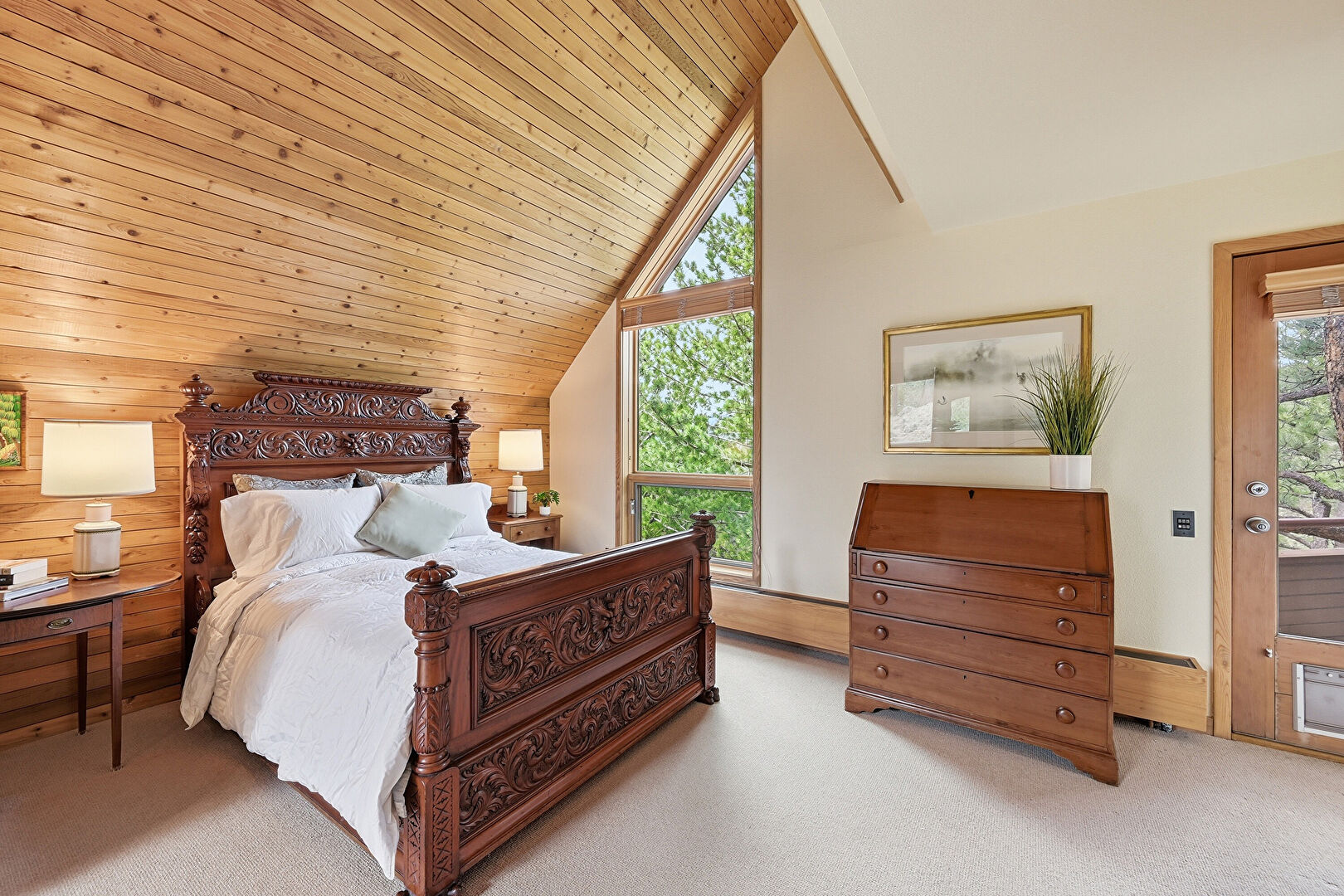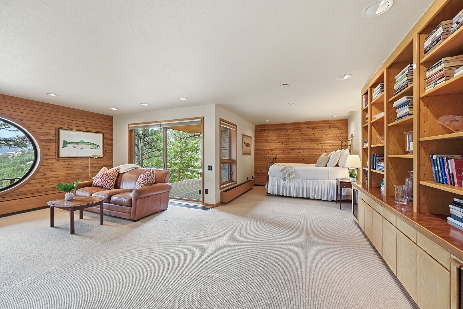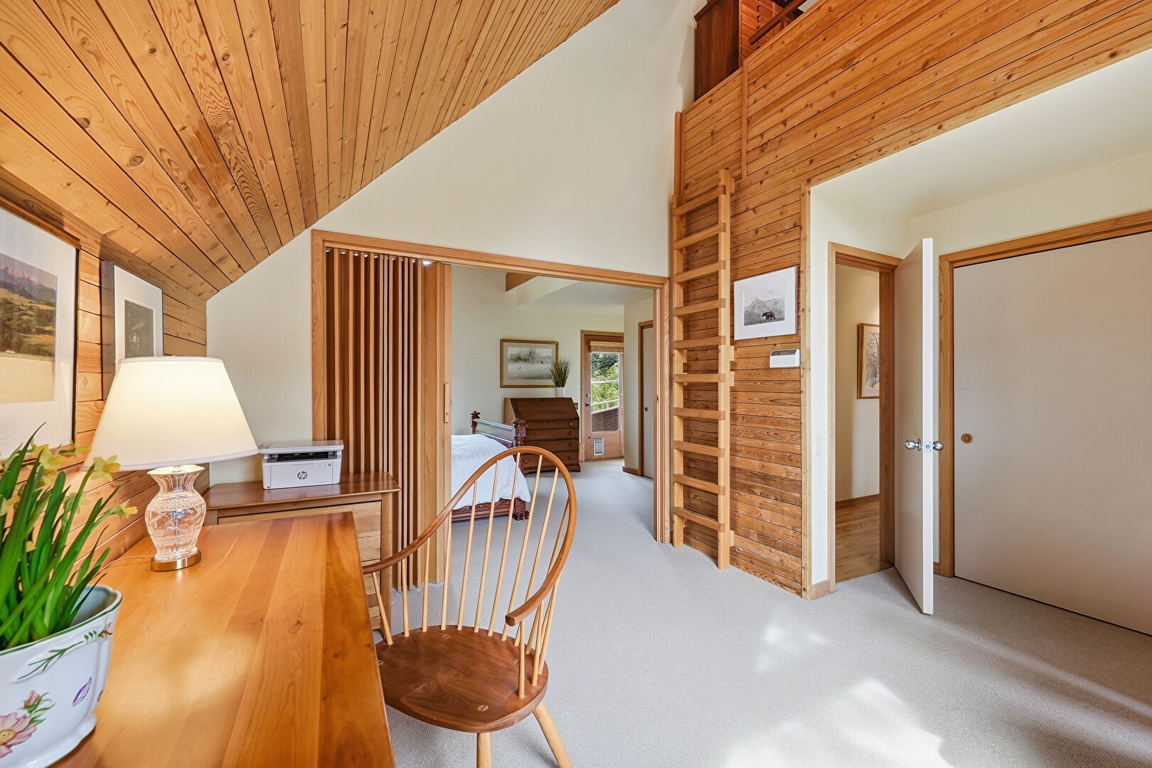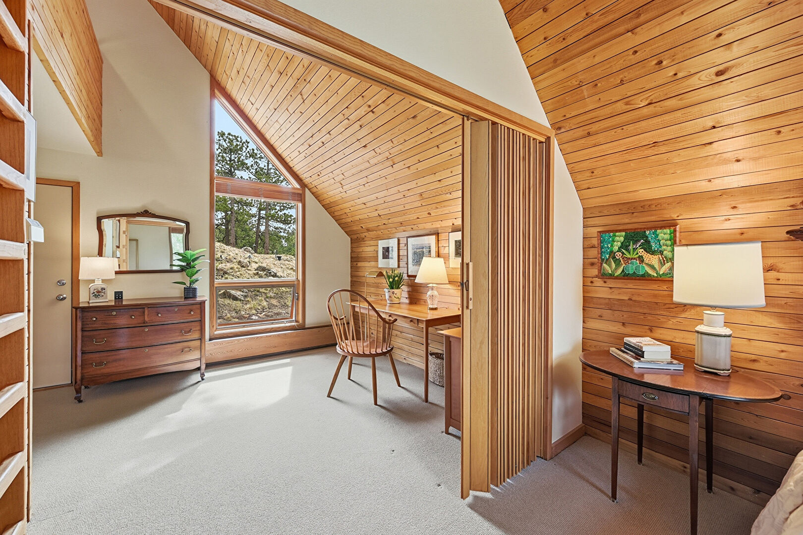 Access To Exterior, Baseboards Wall, Beamed Ceiling, Bonus Room, Built In Desk, Carpet, Cathedral Ceiling, Drywall, Floor Ceiling Windows, High Ceiling, Mountain View, Natural Light, Office Area, Skylight, Vaulted Ceiling, Wood Ceiling, Wood Wall, High Ceiling, Natural Light, Track Lighting, Wood Ceiling, Wood Wall