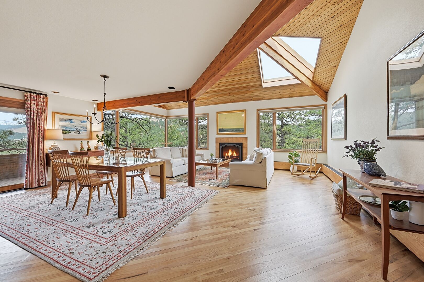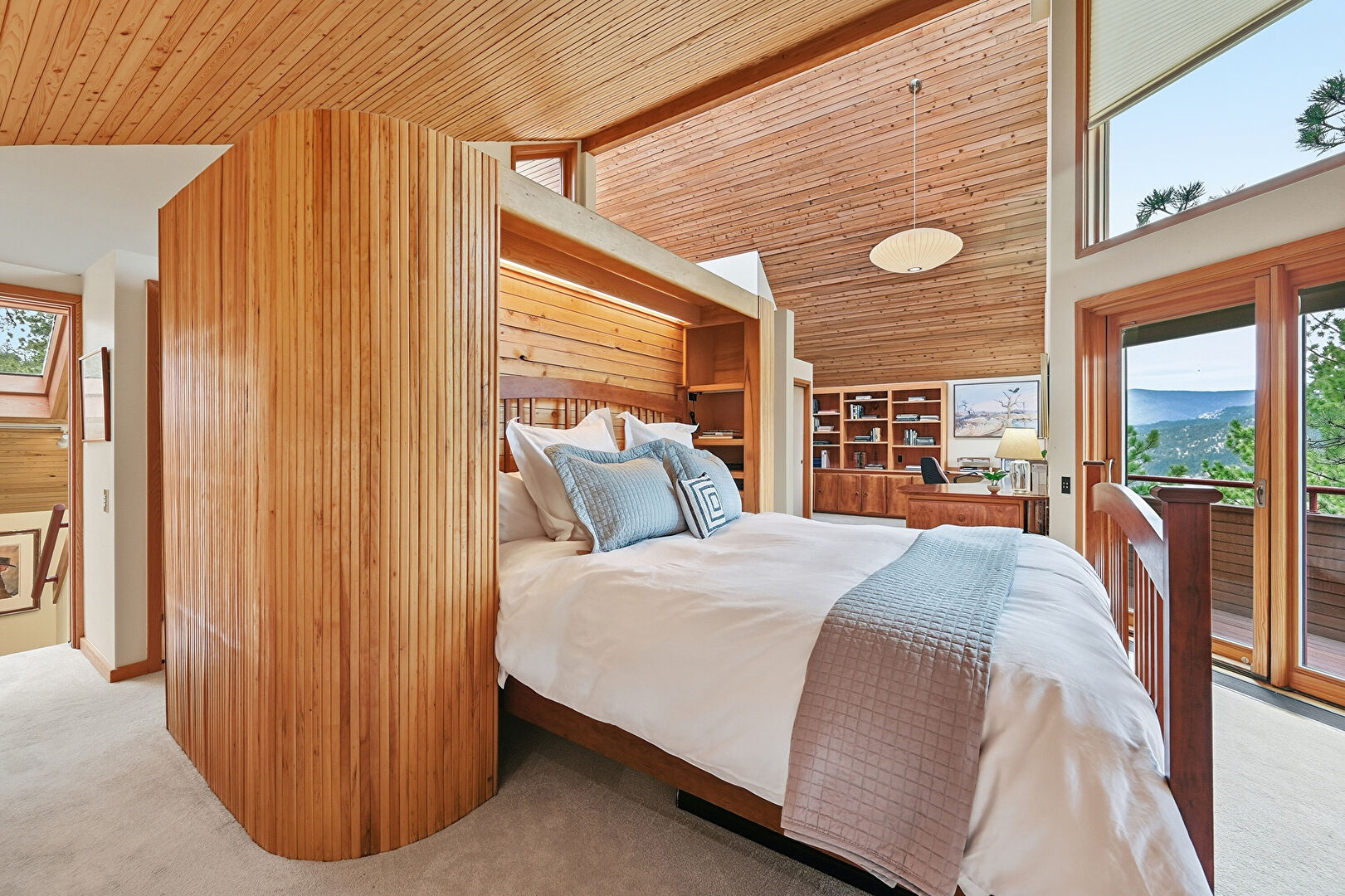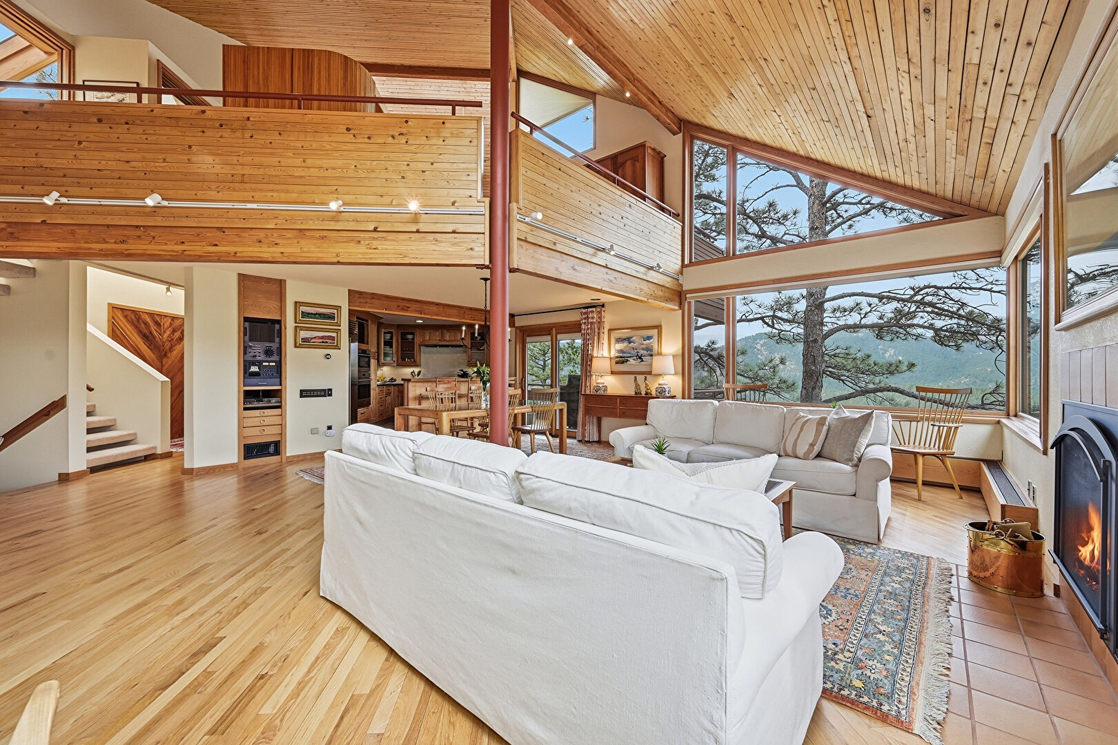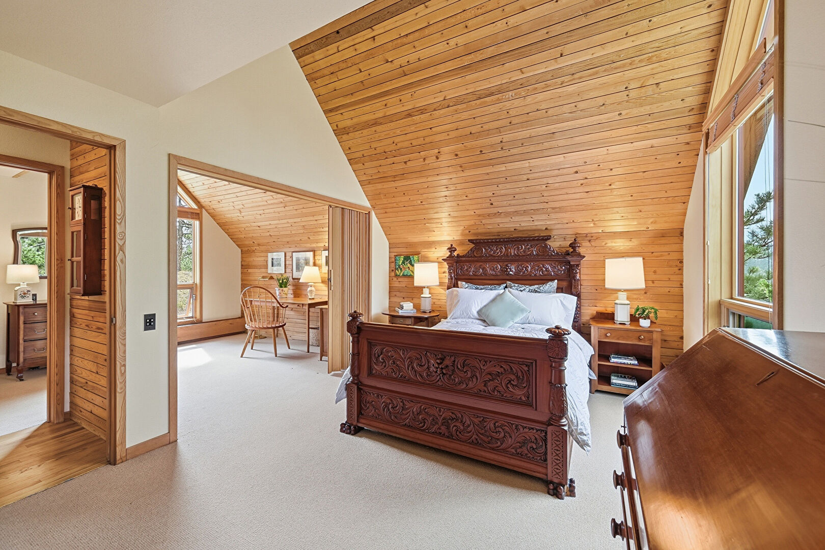 Access To Exterior, Baseboards Wall, Beamed Ceiling, Bonus Room, Built In Desk, Carpet, Cathedral Ceiling, Drywall, Floor Ceiling Windows, High Ceiling, Mountain View, Natural Light, Office Area, Skylight, Vaulted Ceiling, Wood Ceiling, Wood Wall, High Ceiling, Natural Light, Track Lighting, Wood Ceiling, Wood Wall