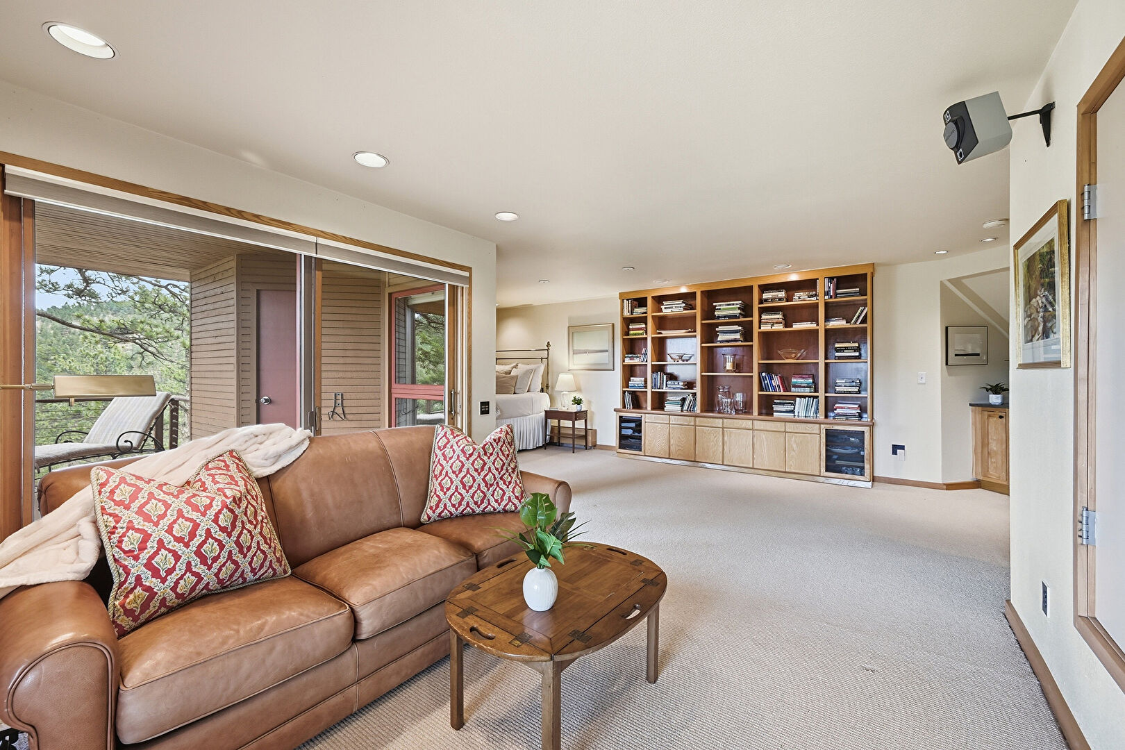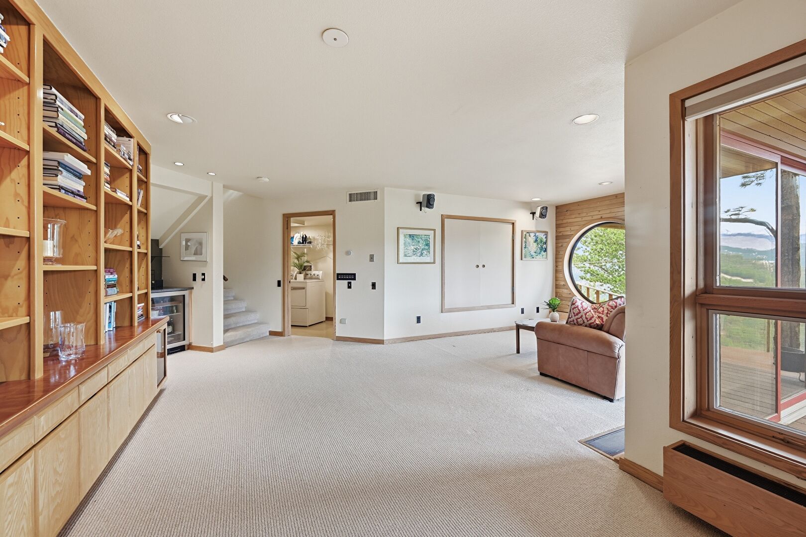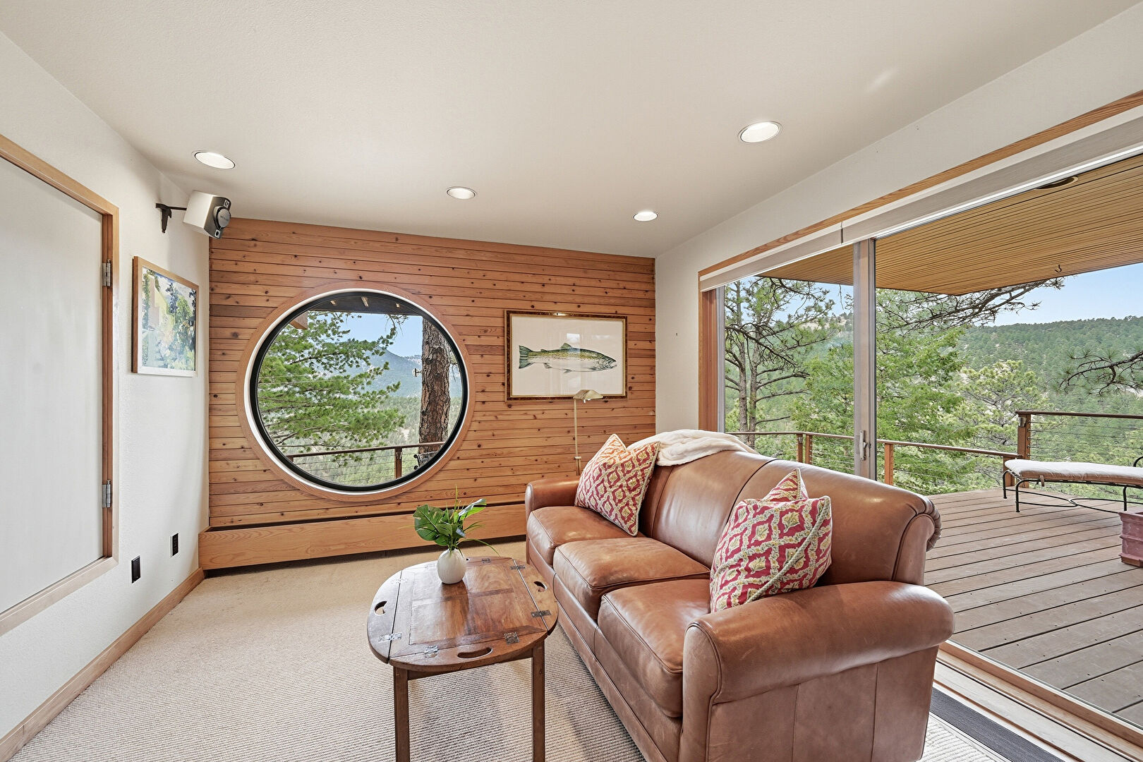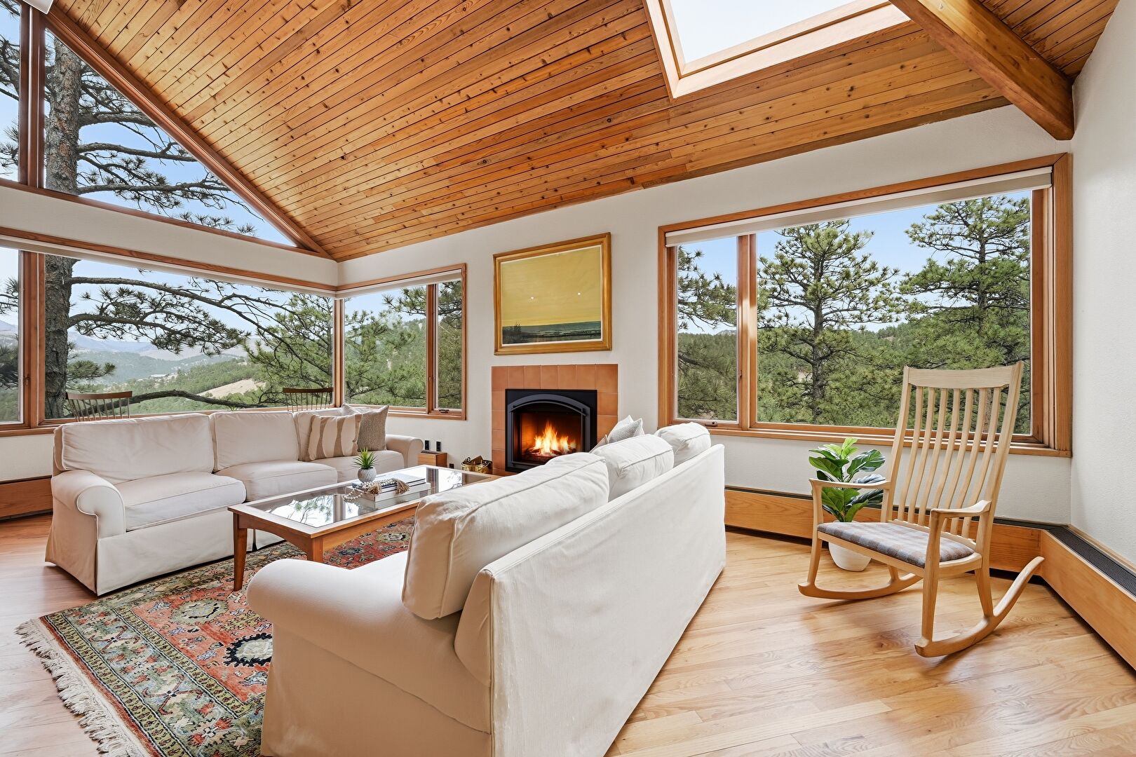 Access To Exterior, Baseboards Wall, Beamed Ceiling, Bonus Room, Built In Desk, Carpet, Cathedral Ceiling, Drywall, Floor Ceiling Windows, High Ceiling, Mountain View, Natural Light, Office Area, Skylight, Vaulted Ceiling, Wood Ceiling, Wood Wall, High Ceiling, Natural Light, Track Lighting, Wood Ceiling, Wood Wall