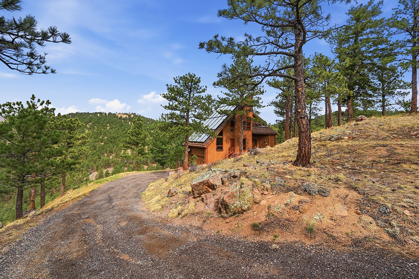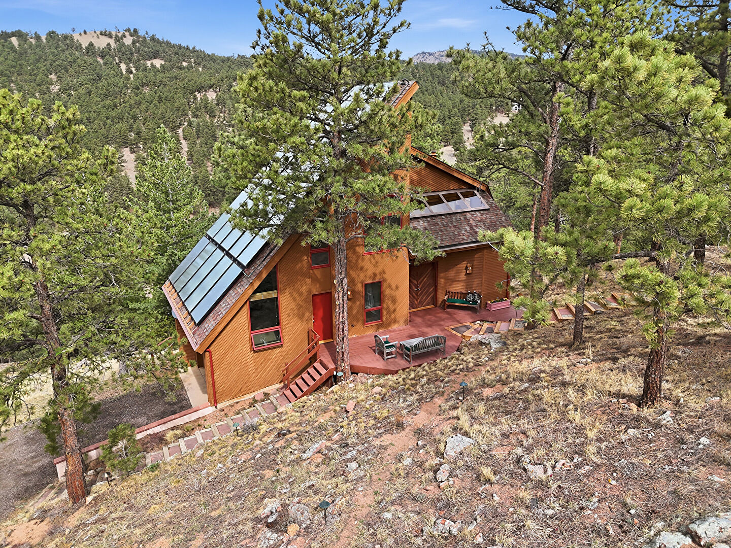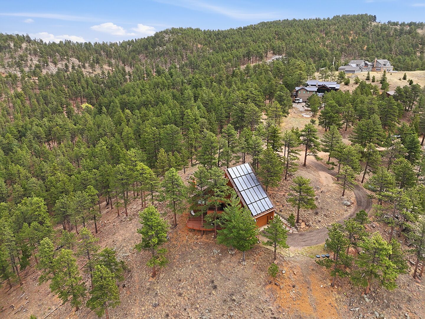 Driveway, Horizontal Siding, Metal Roof, Mountain View, Outdoor Structure, Patio, Propane Tank, Shingle Roof, Solar Panels, Stairs, Standing Seam Roof, Vertical Siding, Woods View, Chimney, Forest View, Metal Roof, Mountain View, Water Meter