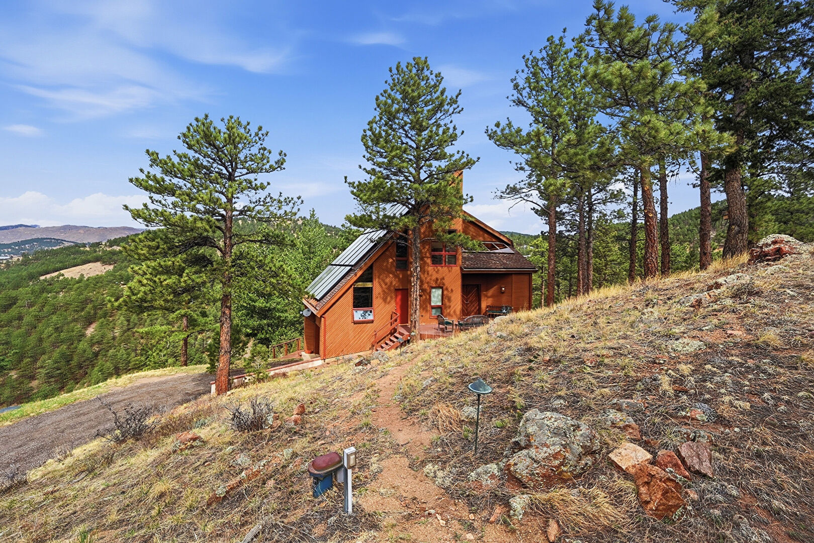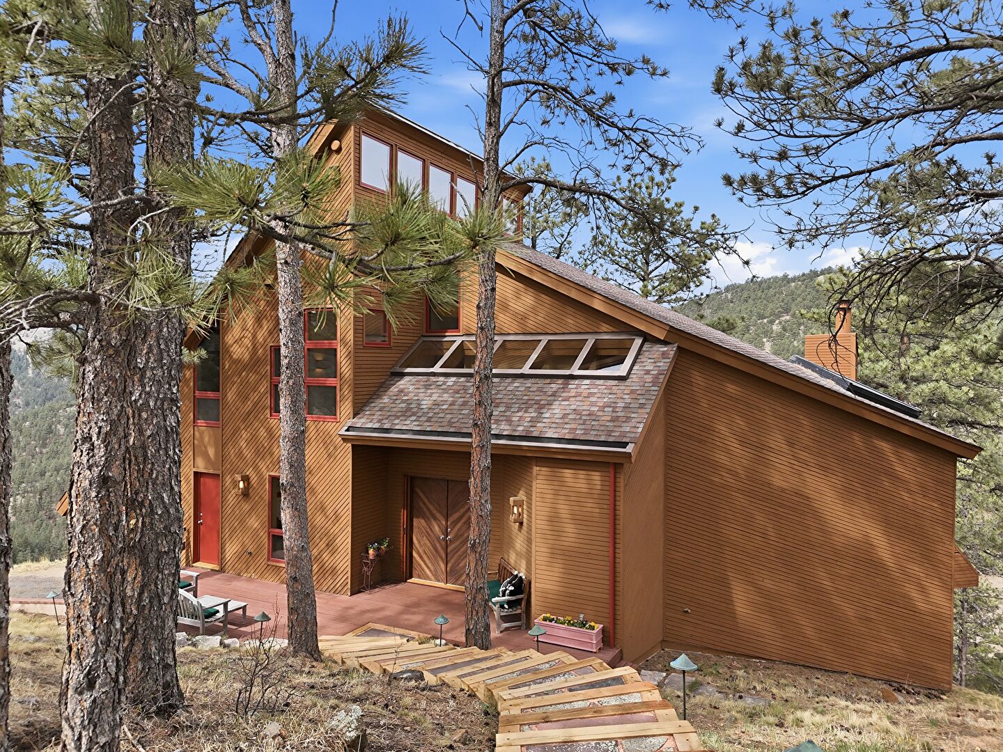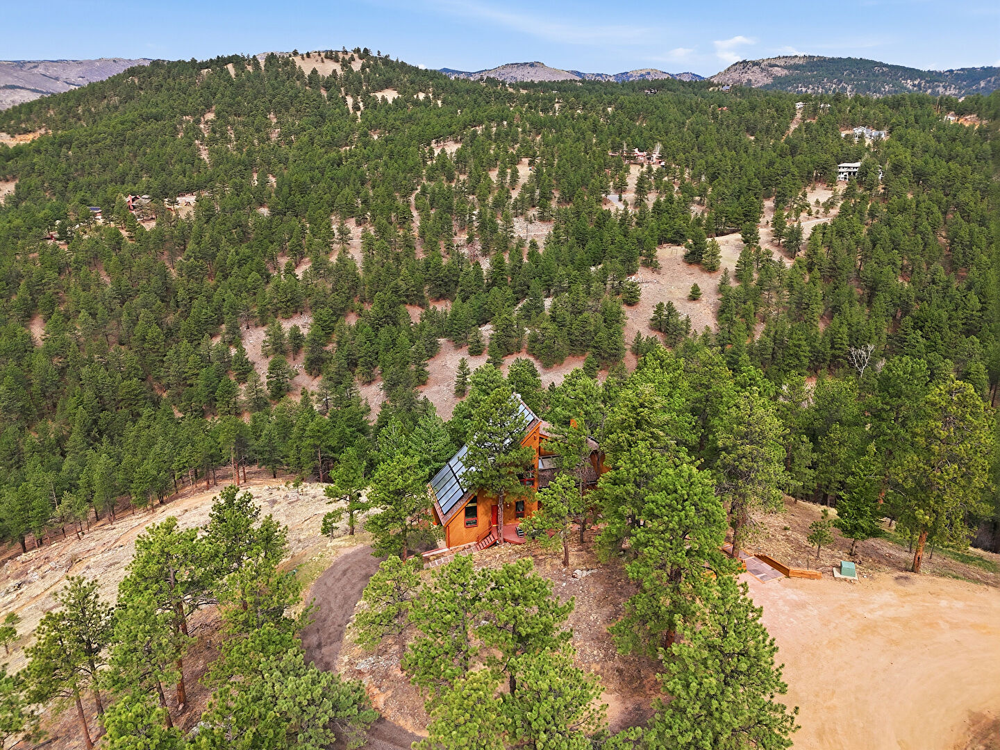Driveway, Horizontal Siding, Metal Roof, Mountain View, Outdoor Structure, Patio, Propane Tank, Shingle Roof, Solar Panels, Stairs, Standing Seam Roof, Vertical Siding, Woods View, Chimney, Forest View, Metal Roof, Mountain View, Water Meter
