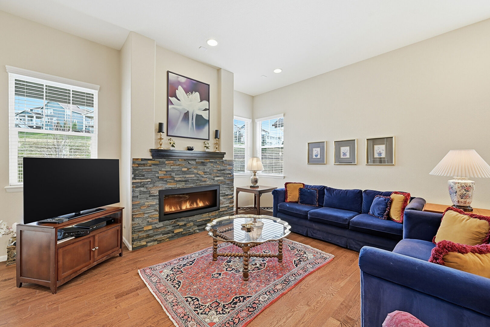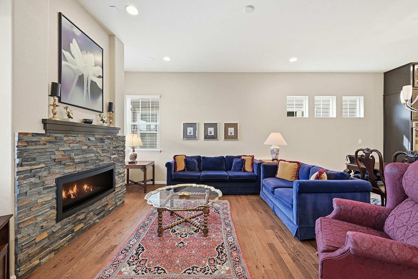 Baseboards Wall, Drywall, Fireplace, Natural Light, Notable Chandelier, Recessed Lighting, Vent, Wood Finish Floor, Baseboards Wall, Recessed Lighting