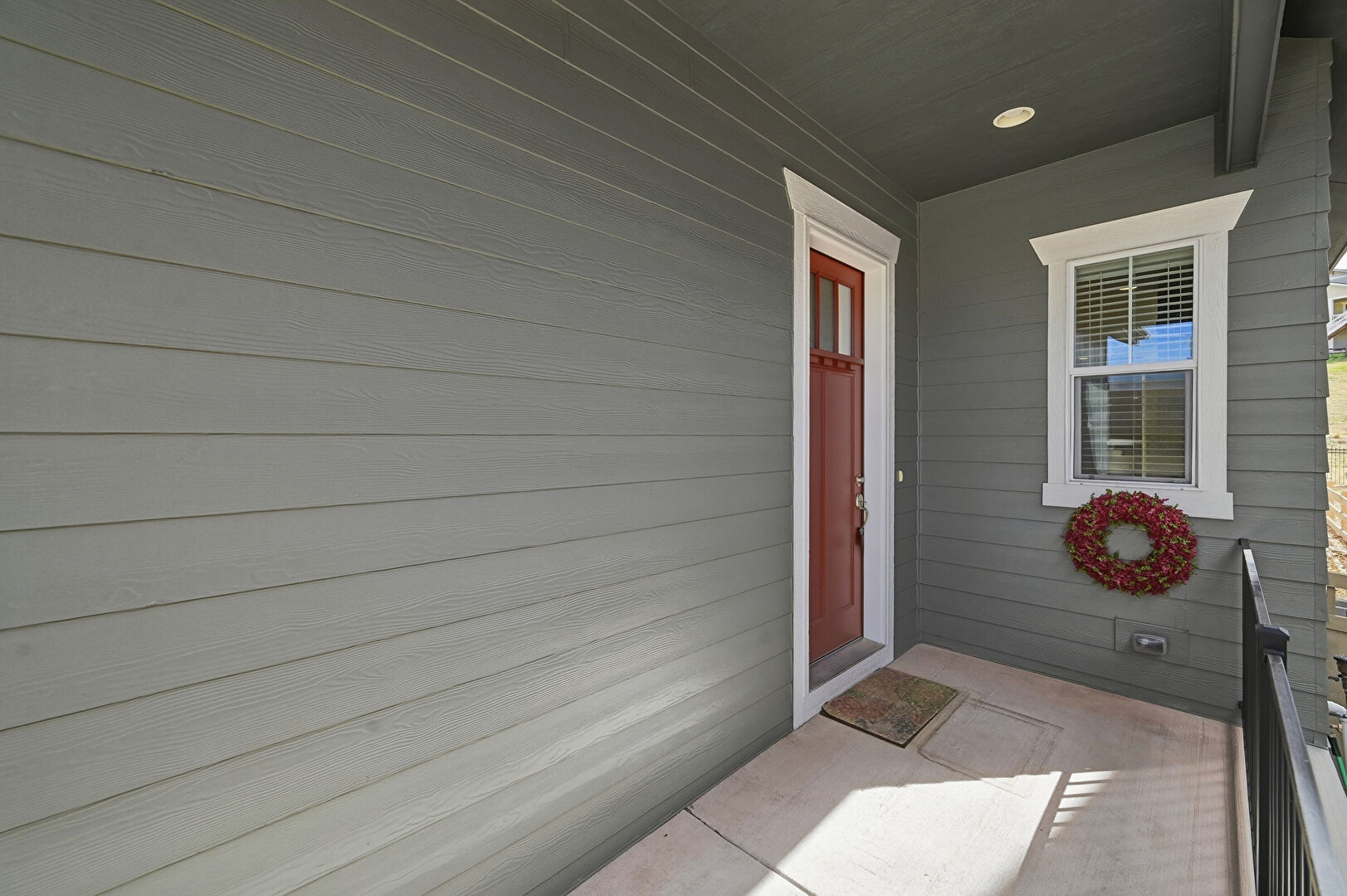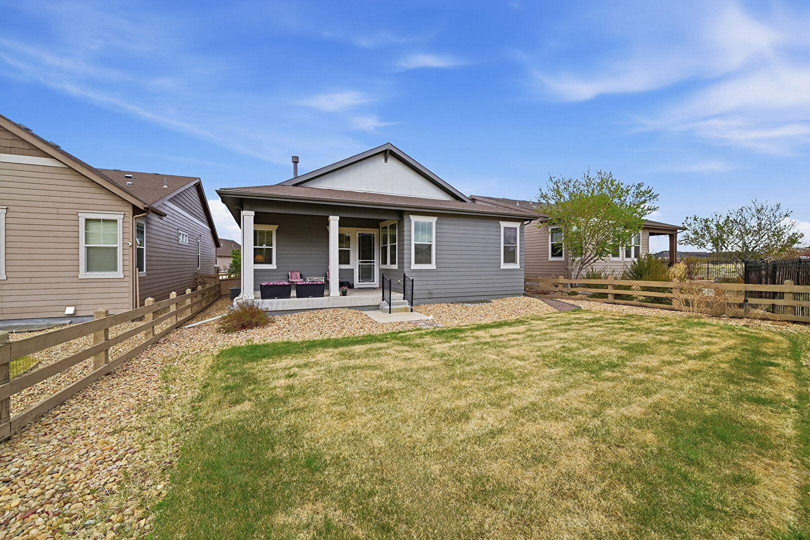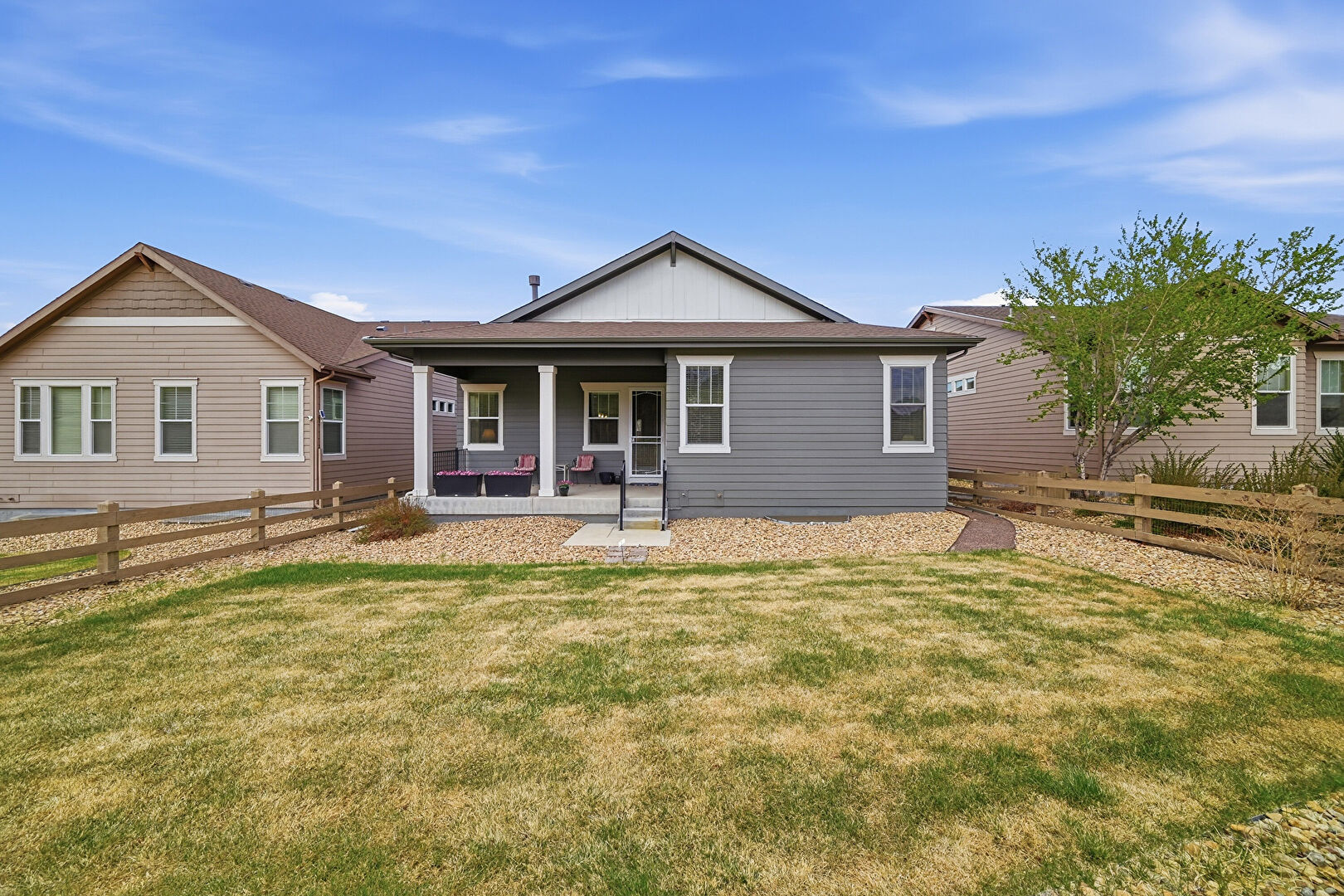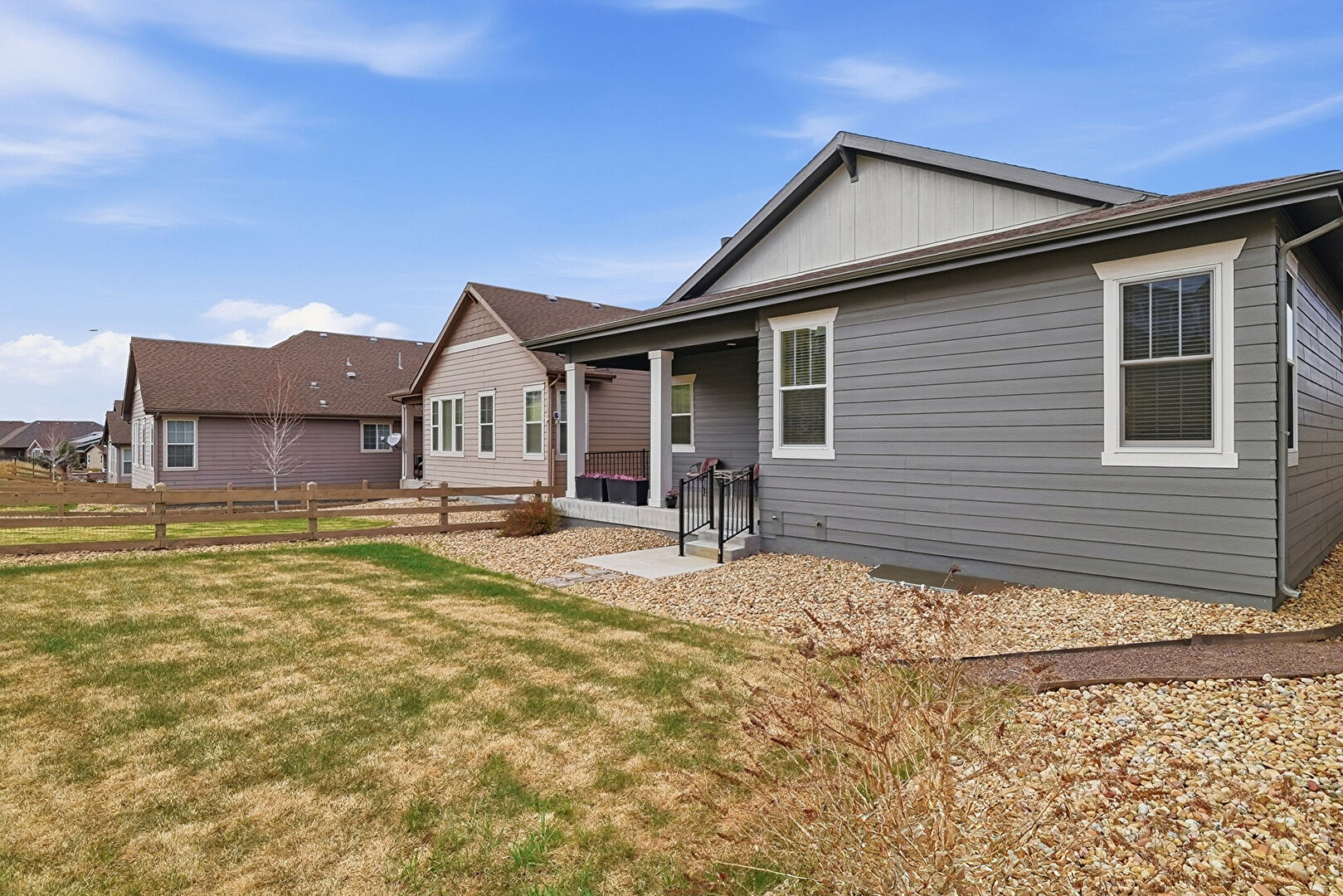 Concrete Foundation, Downspout, Fence, Gutters, Horizontal Siding, Lawn, Patio, Porch, Shake Shingle Siding, Vertical Siding, Downspout, Porch