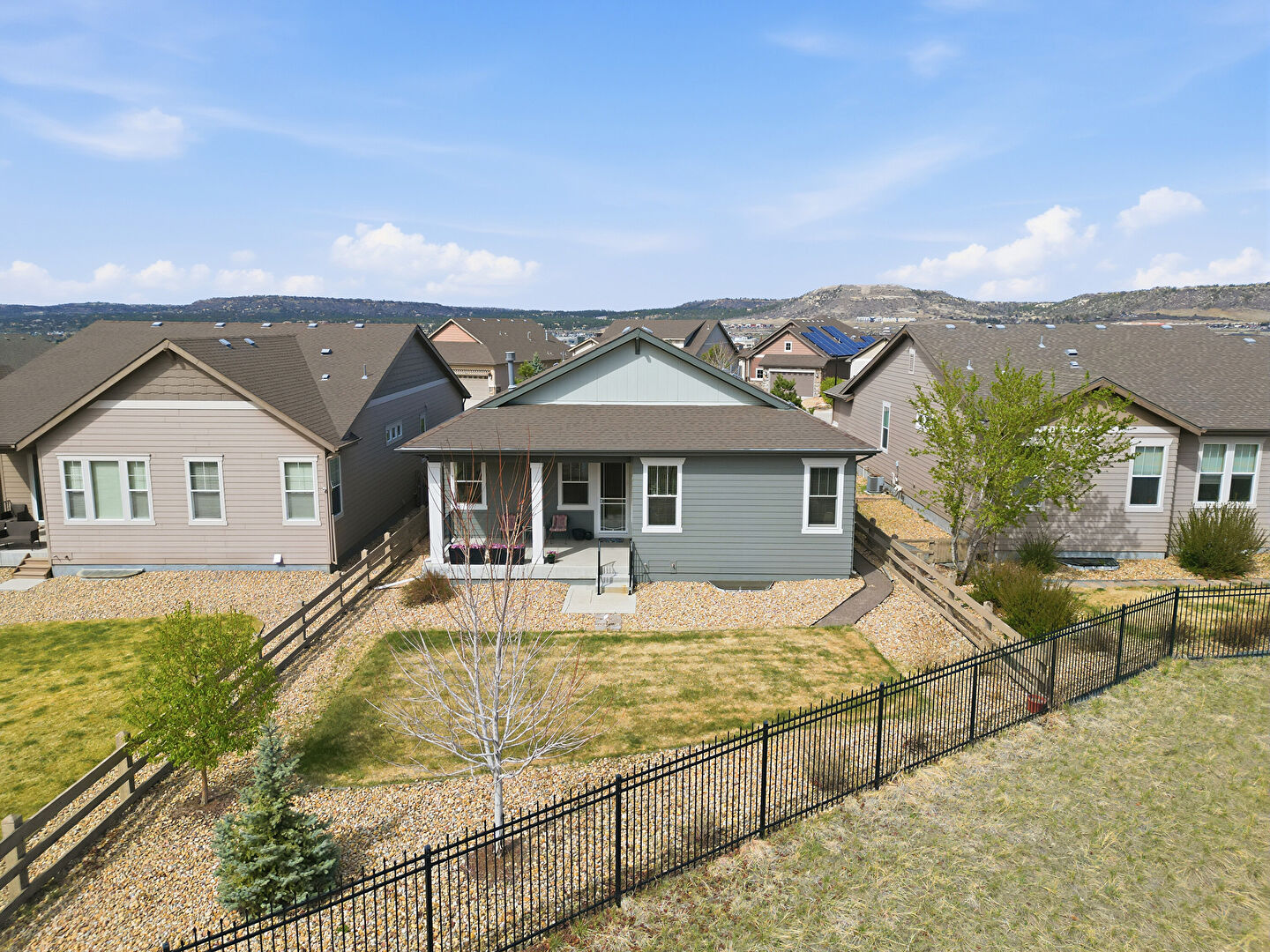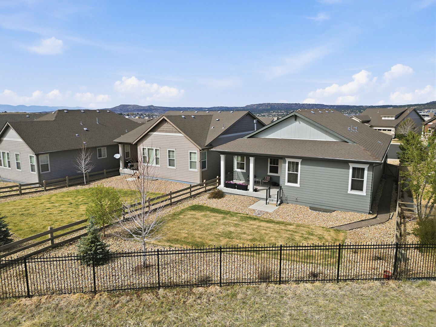 Board Batten Siding, Concrete Foundation, Dormer Roof, Downspout, Driveway, Fence, Gutters, Horizontal Siding, Lawn, Mountain View, Park View, Patio, Residential View, Satellite Dish, Shingle Roof, Stone Siding, Vertical Siding, Downspout, Fence, Patio, Residential View