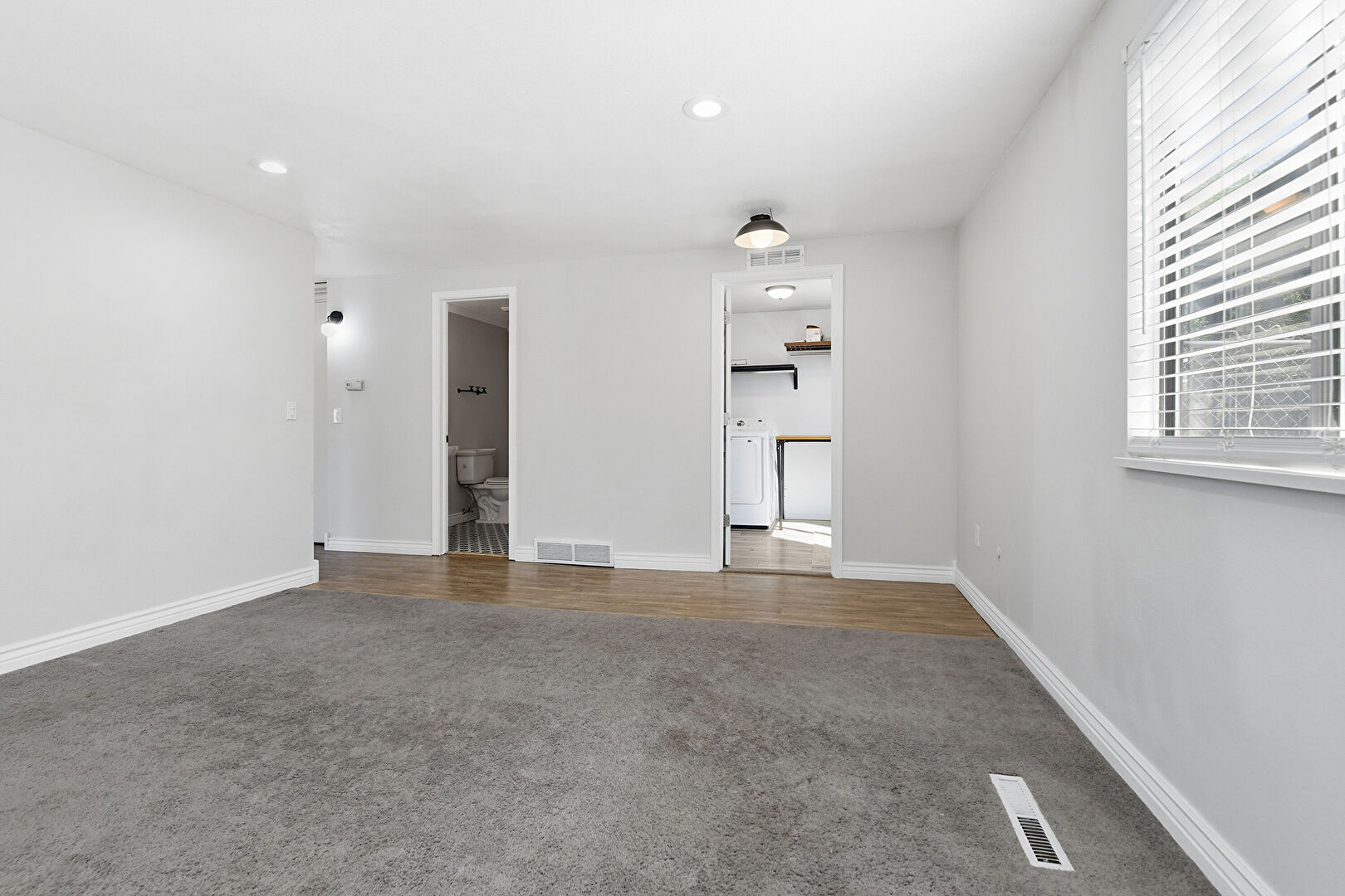 Baseboards Wall, Carpet, Drywall, Natural Light, Recessed Lighting, Vent, Washer Dryer, Baseboards Wall, Carpet, Laundry