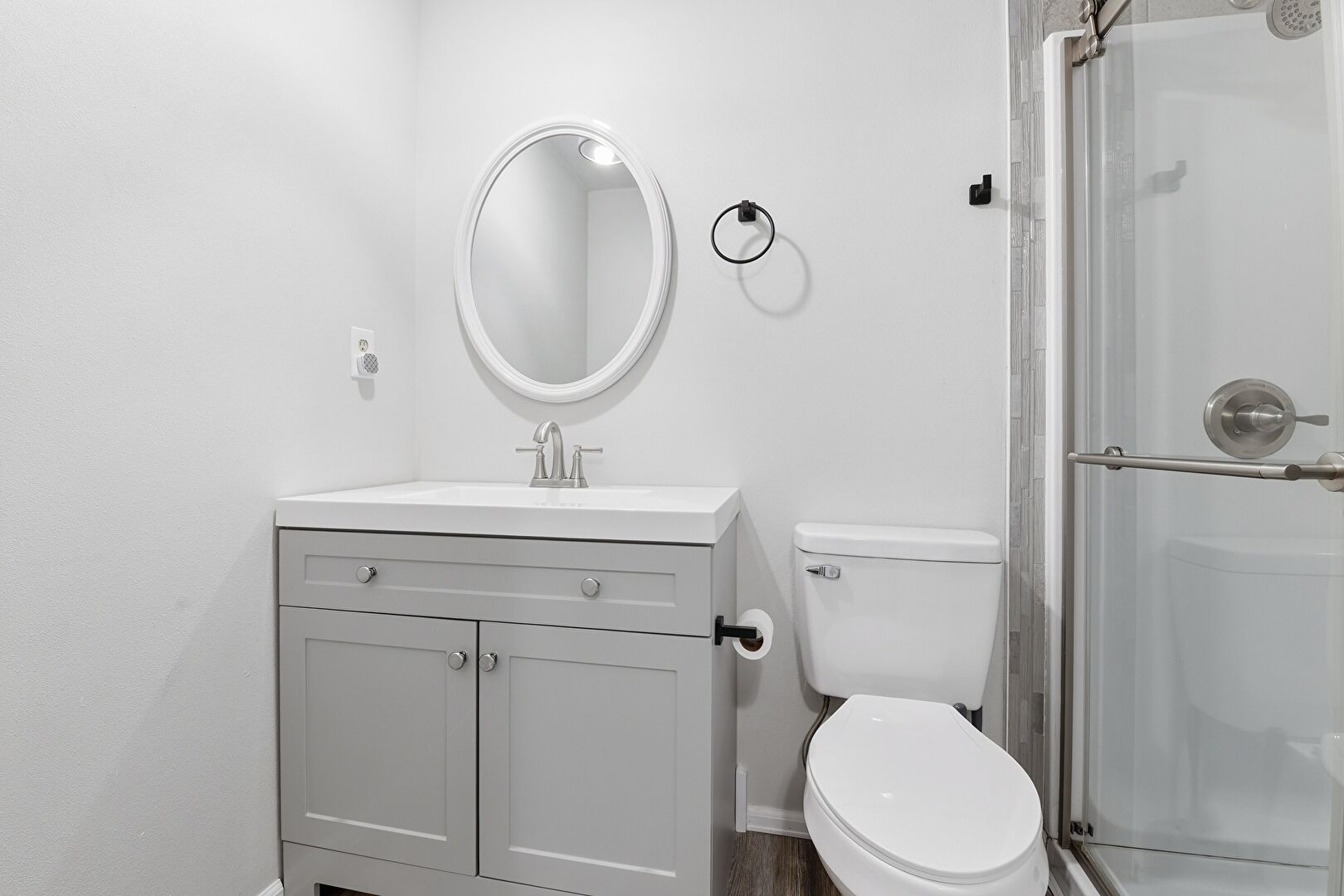 Baseboards Wall, Drywall, Full Bathroom, Vanity, Full Bathroom, Wood Finish Floor