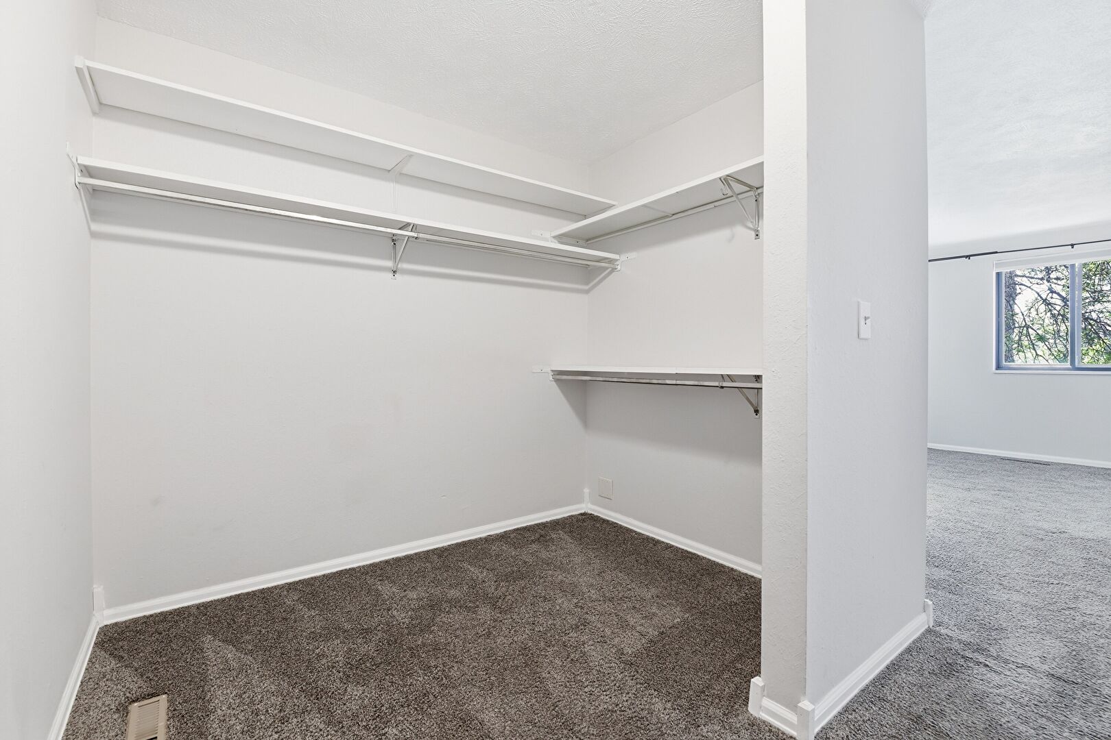 Baseboards Wall, Carpet, Closet, Drywall, Natural Light, Smoke Carbon Monoxide Detector, Textured Ceiling, Vent, Baseboards Wall, Carpet, Natural Light, Textured Wall, Vent