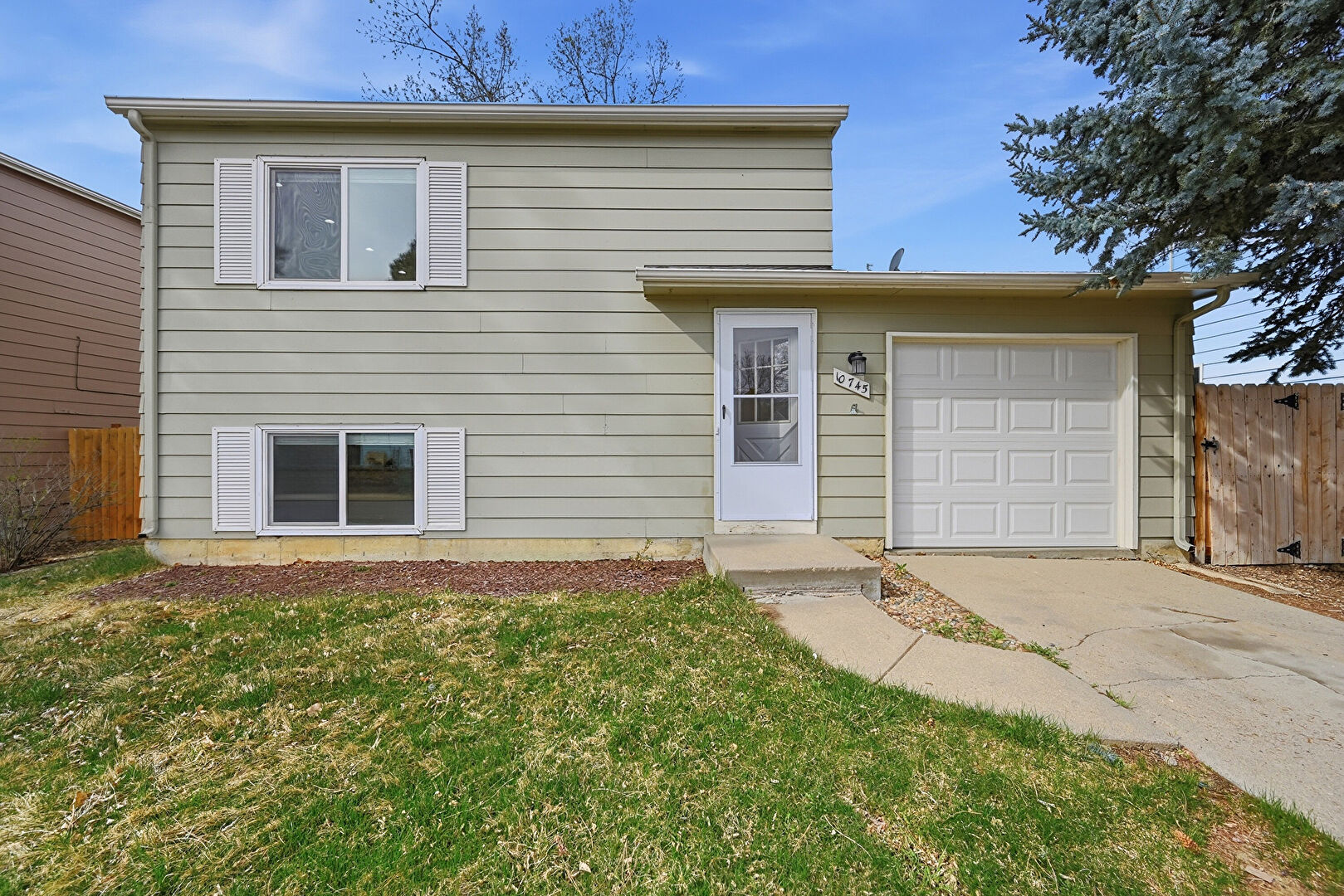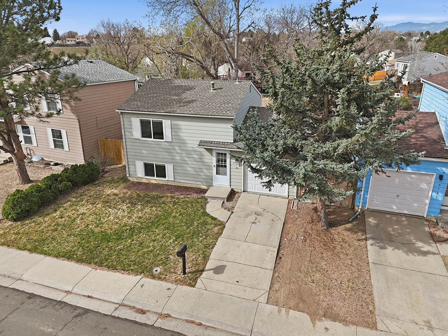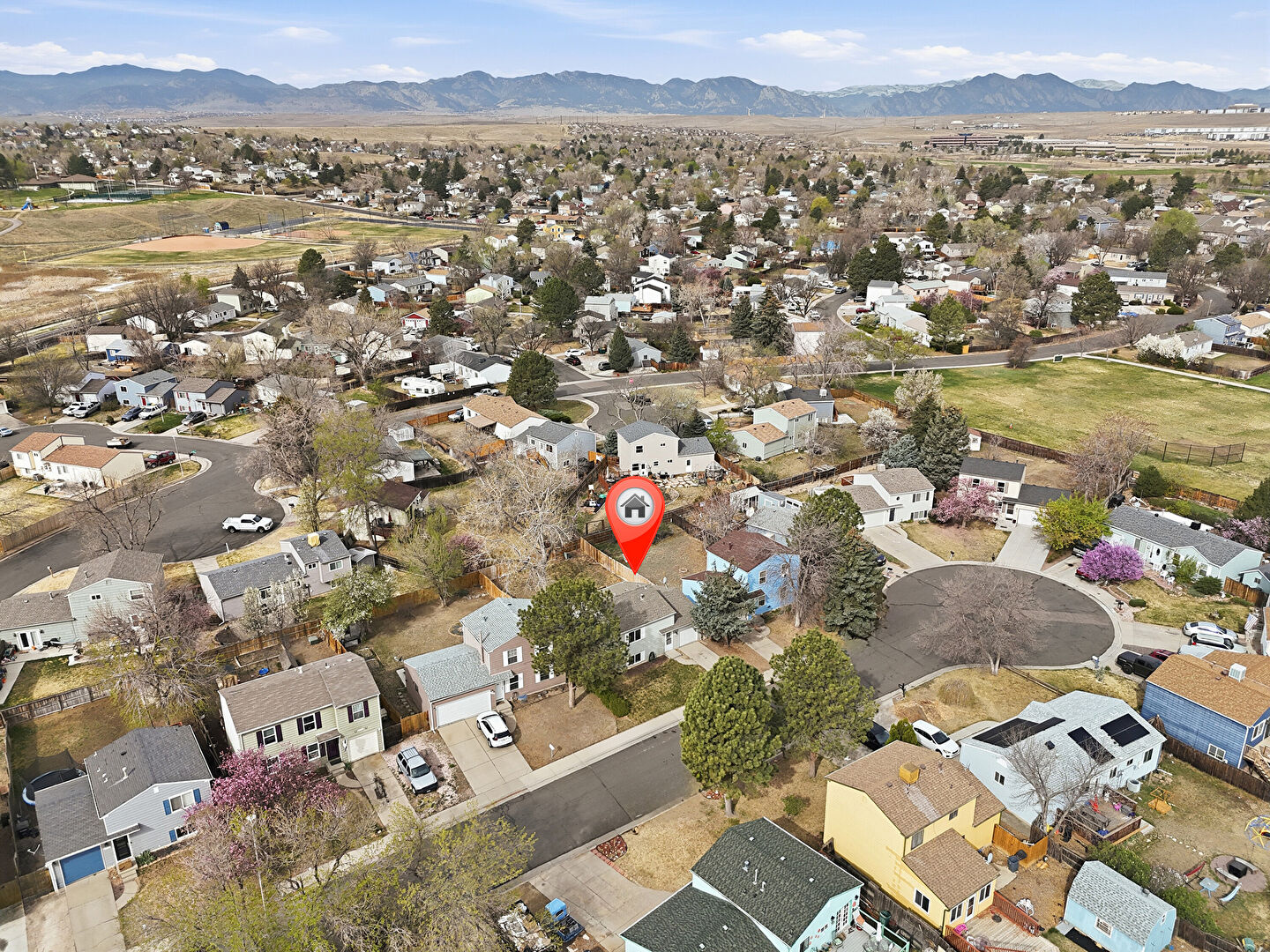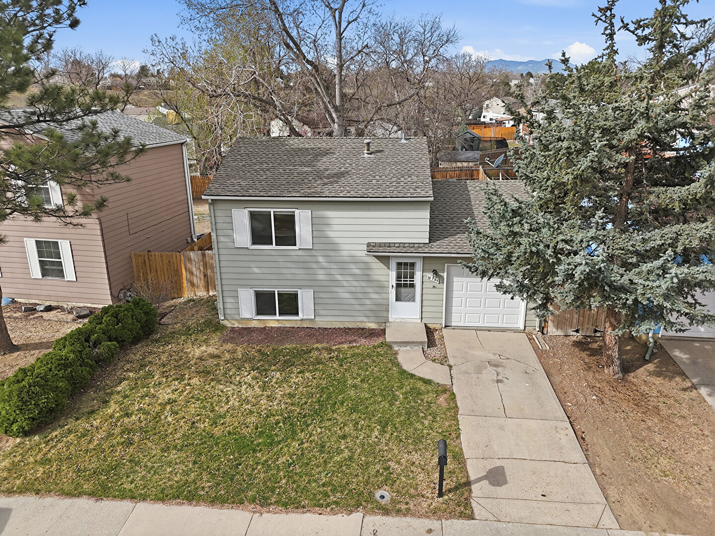 Concrete Foundation, Downspout, Driveway, Fence, Gas Meter, Horizontal Siding, Lawn, Mountain View, Residential View, Shingle Roof, Lawn, Mountain View, Residential View, Shingle Roof