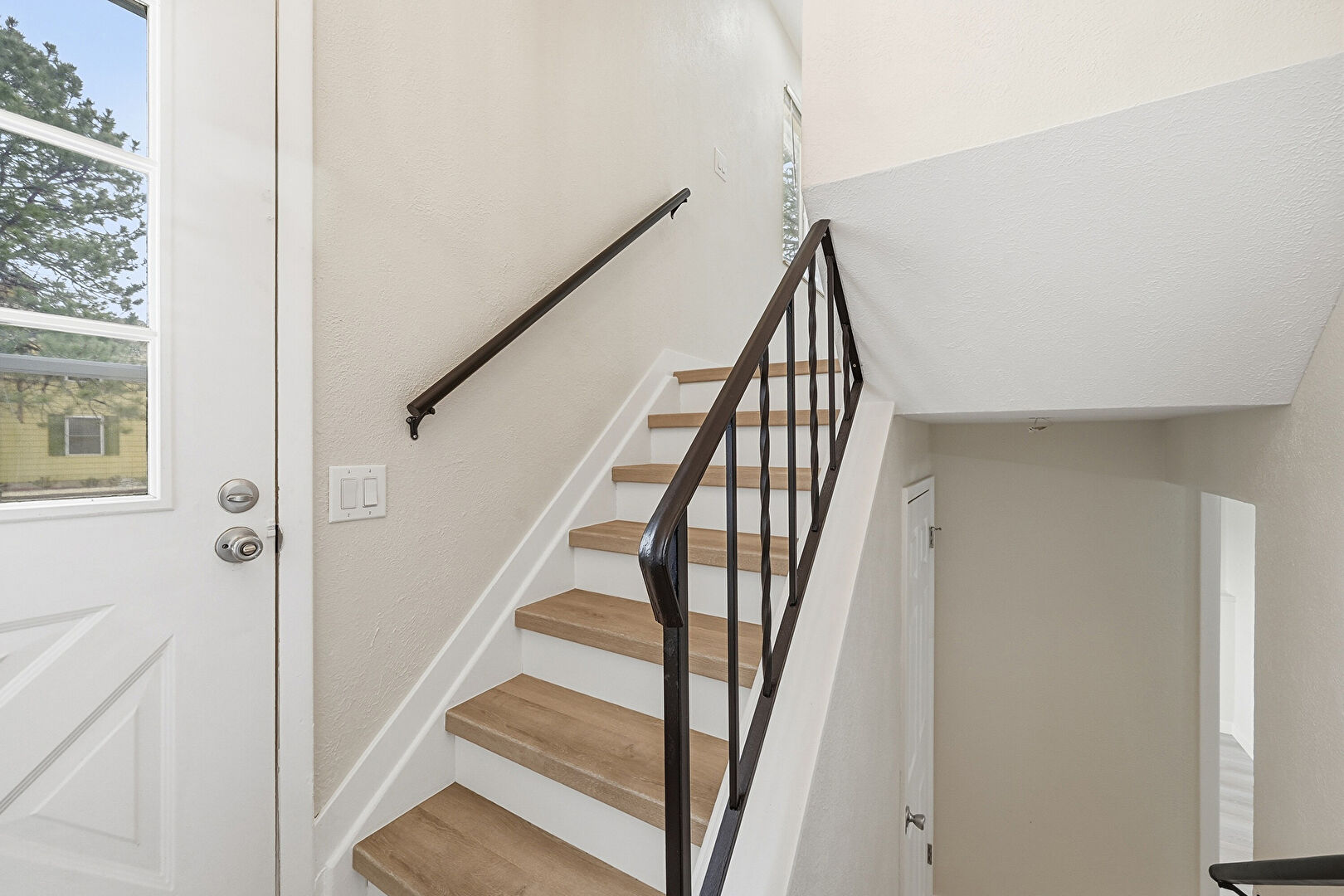 Natural Light, Stairs, Textured Wall, Wood Finish Floor