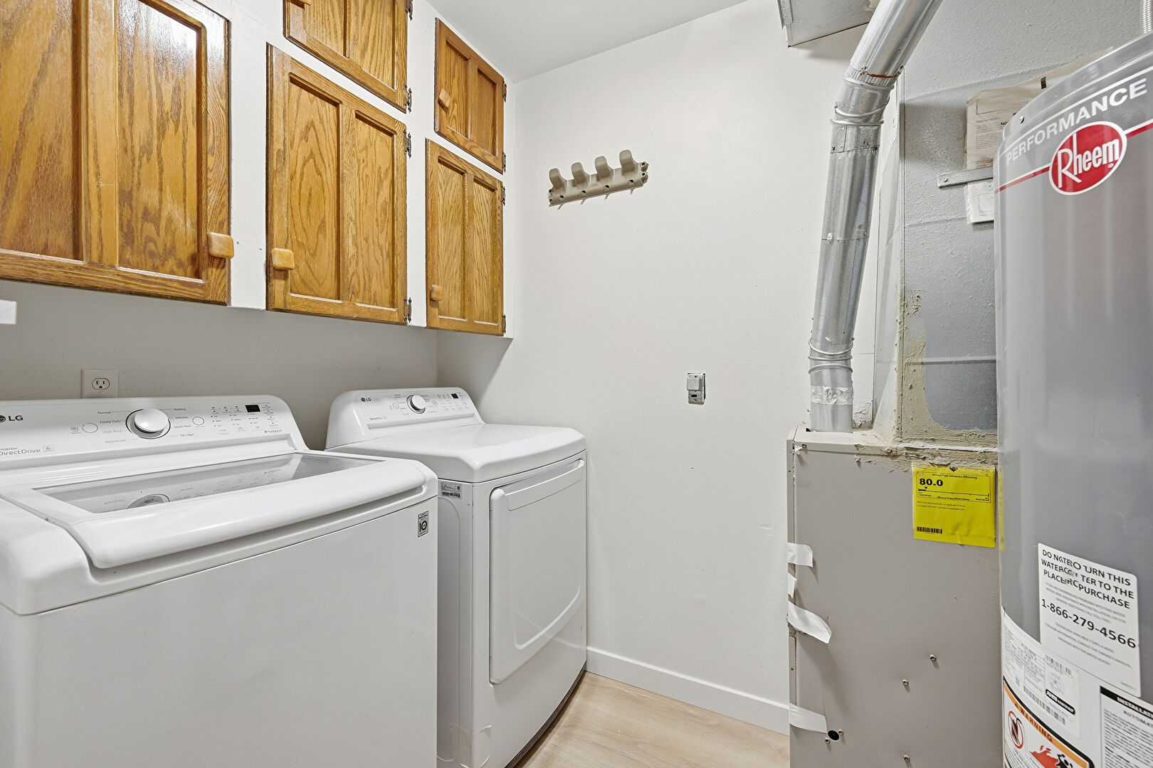 Baseboards Wall, Furnace, Laundry, Water Heater, Wood Finish Floor, Drywall