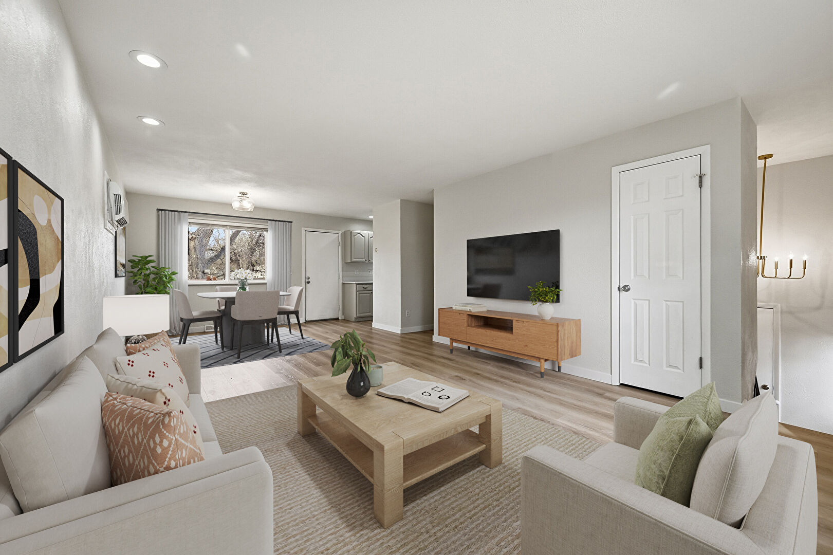 Baseboards Wall, Drywall, Galley Kitchen, Natural Light, Recessed Lighting, Vent, Wall Mounted Ac, Wood Finish Floor, Baseboards Wall, Drywall, Recessed Lighting, Vent, Wood Finish Floor