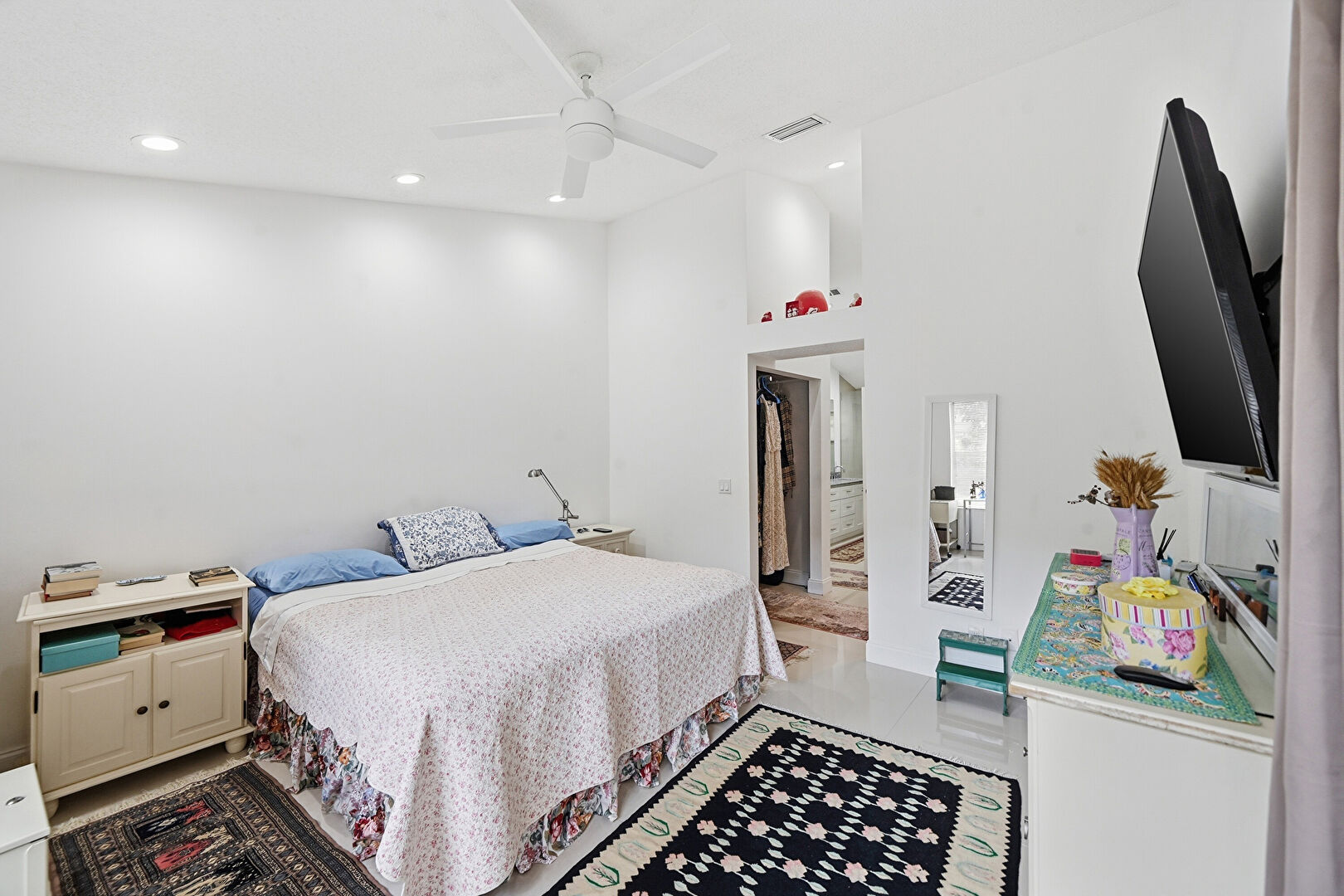 Access To Exterior, Ceiling Fan, Drywall, Ensuite Bathroom, French Doors, High Ceiling, Natural Light, Office Area, Recessed Lighting, Vaulted Ceiling, Vent, Walk In Closet, Access To Exterior, Ceiling Fan, Tile Floor, Vaulted Ceiling