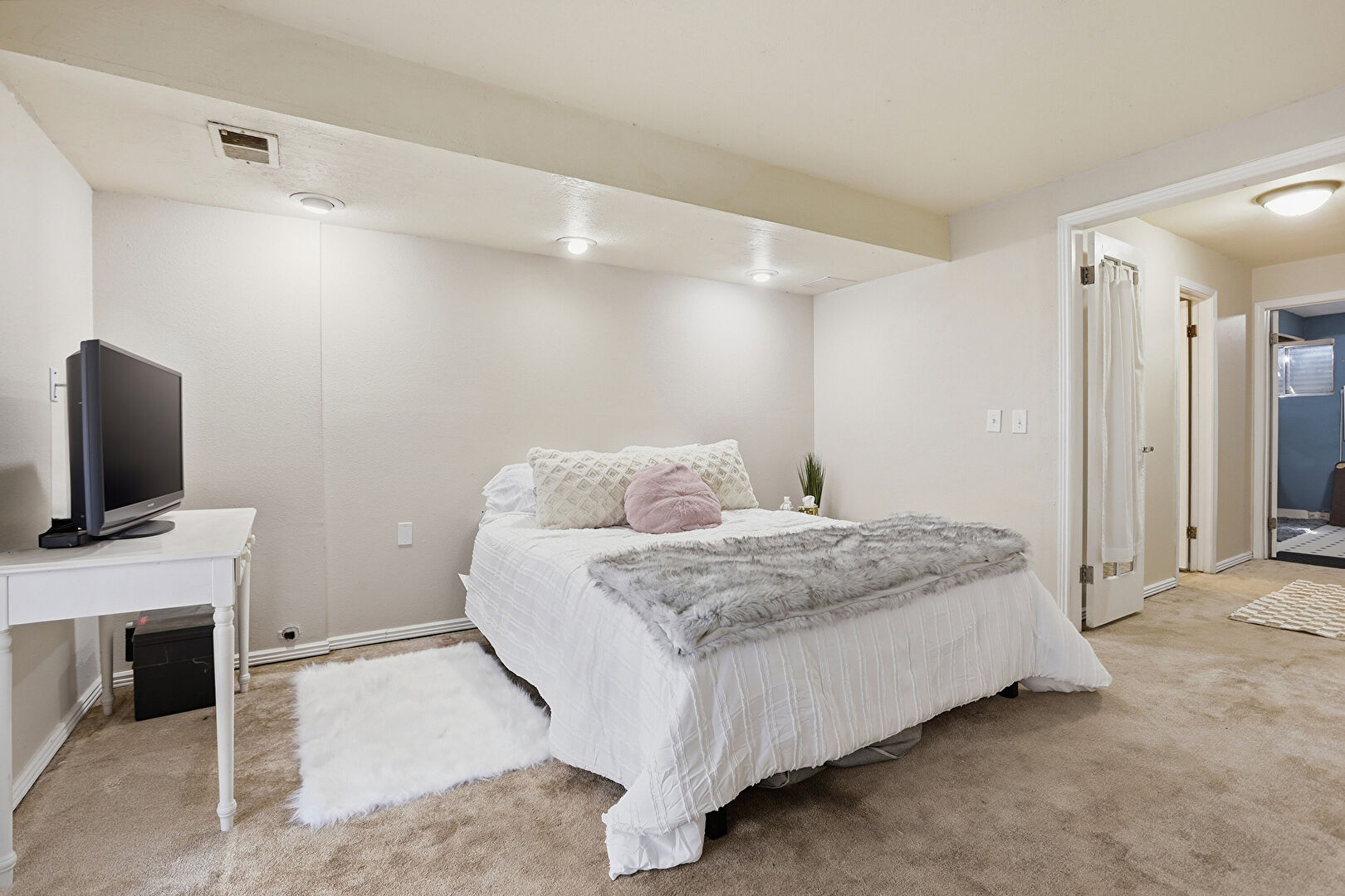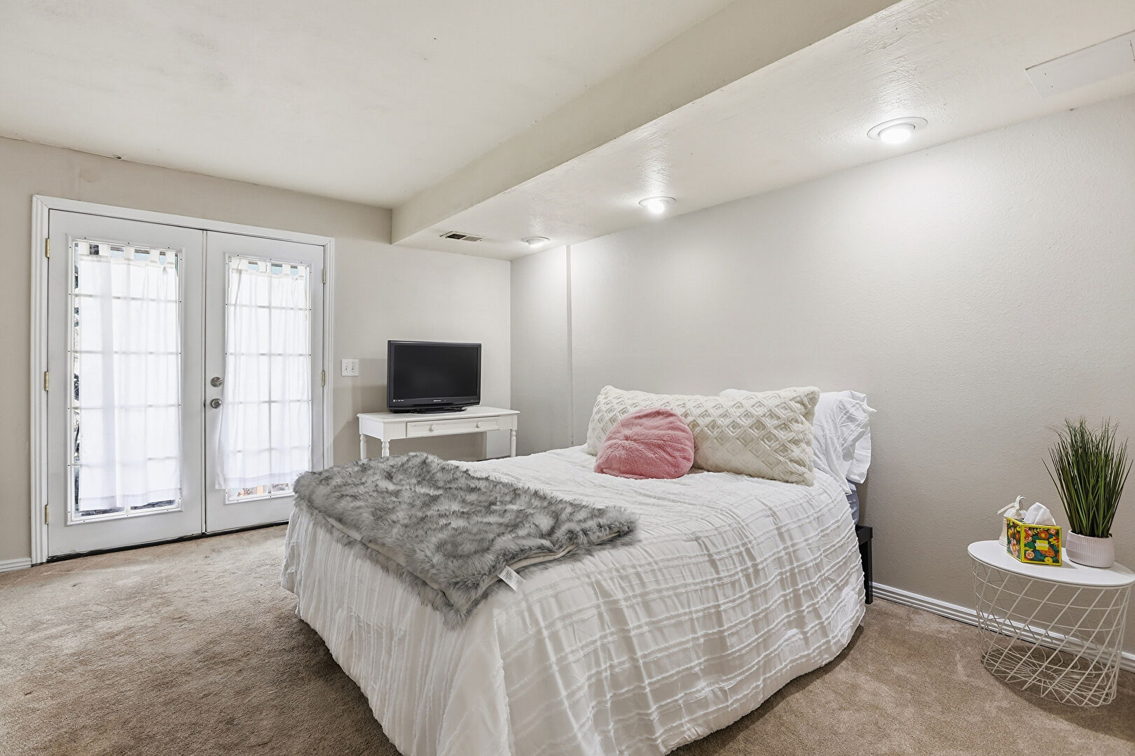 Access To Exterior, Baseboards Wall, Basement, Carpet, Closet, Drywall, High Ceiling, Natural Light, Recessed Lighting, Vaulted Ceiling, Vent, Closet, French Doors, Natural Light, Office Area, Recessed Lighting, Two Closets, Vent