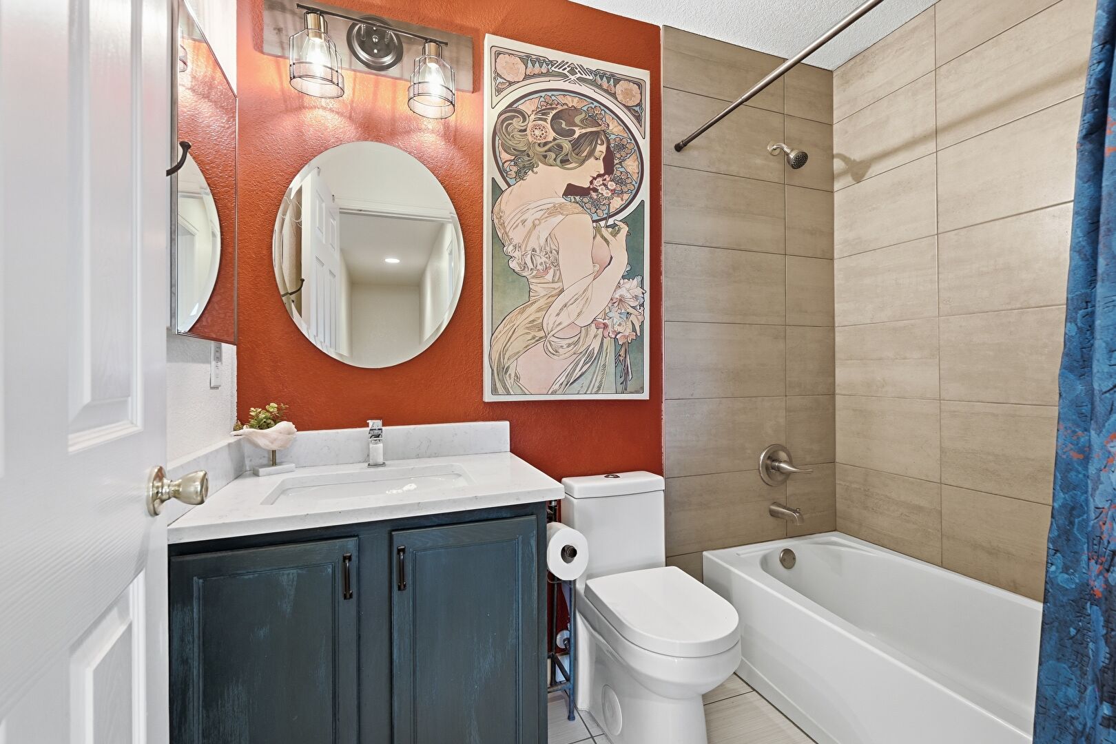 Combined Bath Shower, Drywall, Tile Floor, Vanity, Full Bathroom