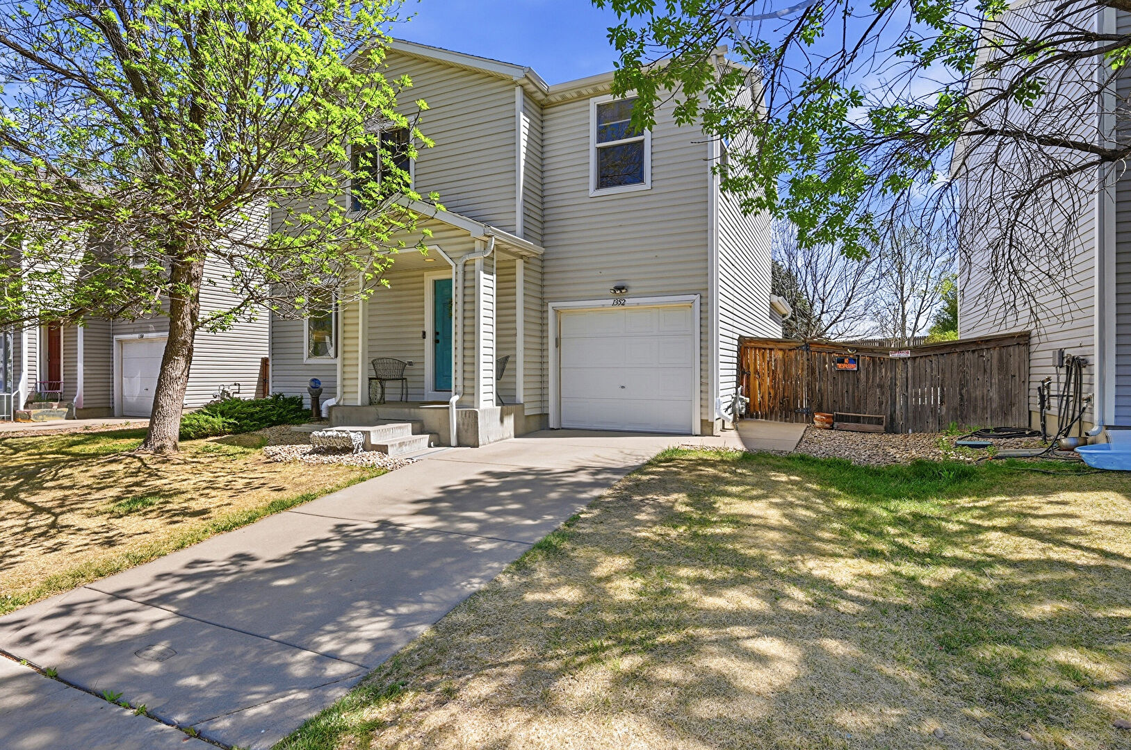 Built In Garage, Concrete Foundation, Downspout, Driveway, Fence, Gas Meter, Gate, Gutters, Horizontal Siding, Lawn, Stoop, Built In Garage, Concrete Foundation, Horizontal Siding