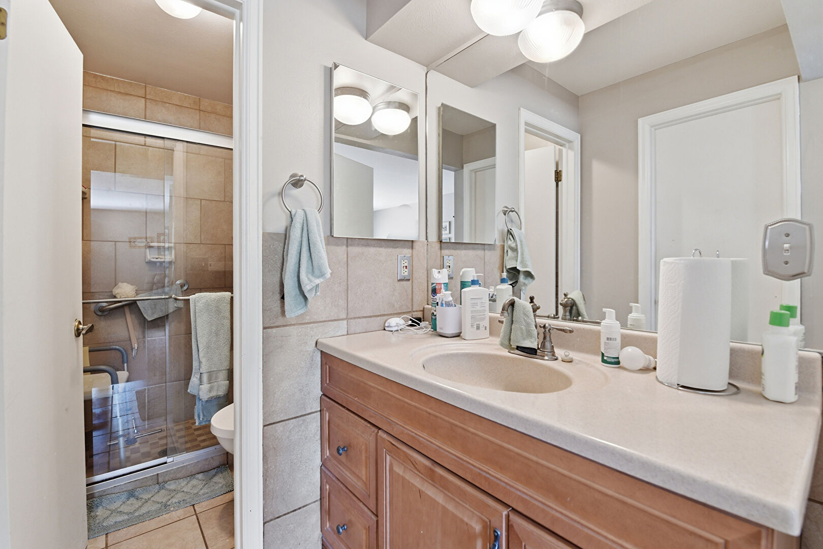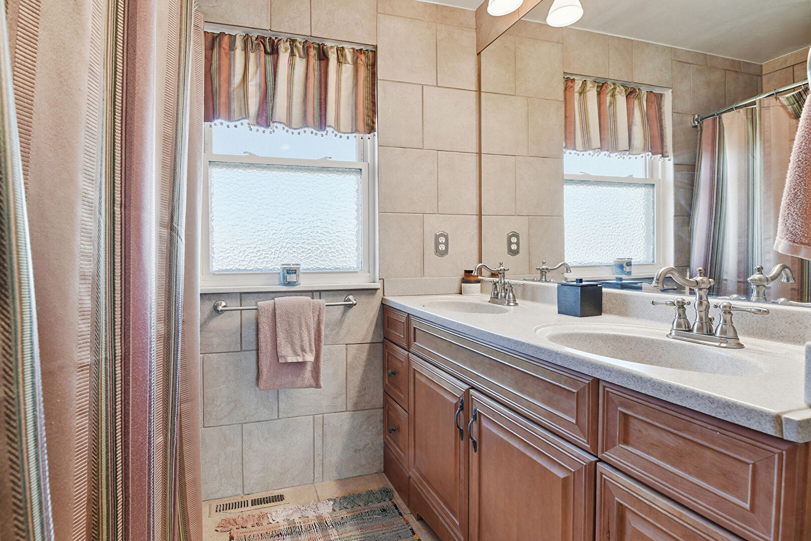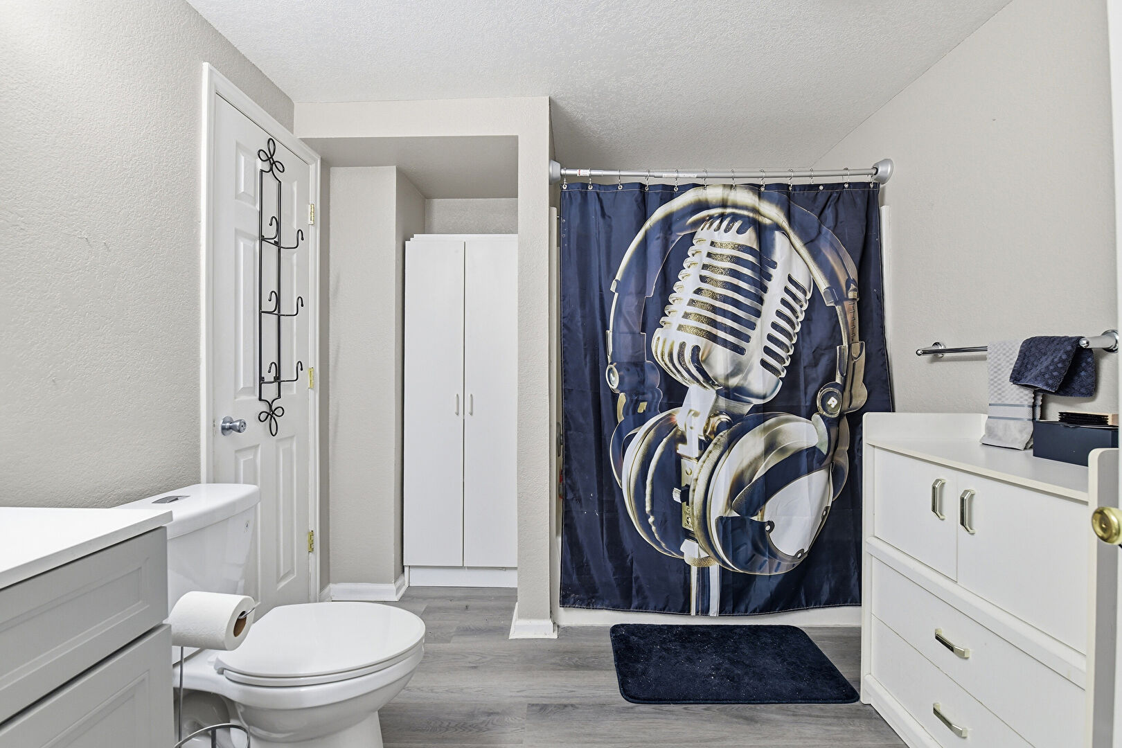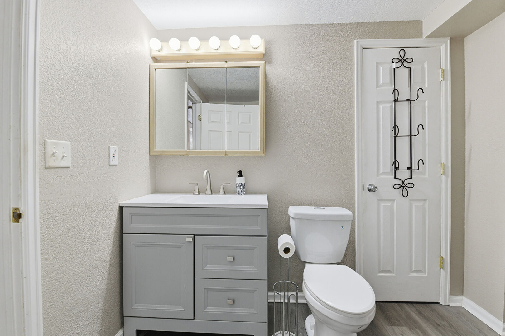 Baseboards Wall, Closet, Double Vanity, Drywall, Full Bathroom, Half Bathroom, Natural Light, Textured Ceiling, Textured Wall, Tile Wall, Vanity, Vent, Wood Finish Floor, Full Bathroom, Vanity, Wood Finish Floor