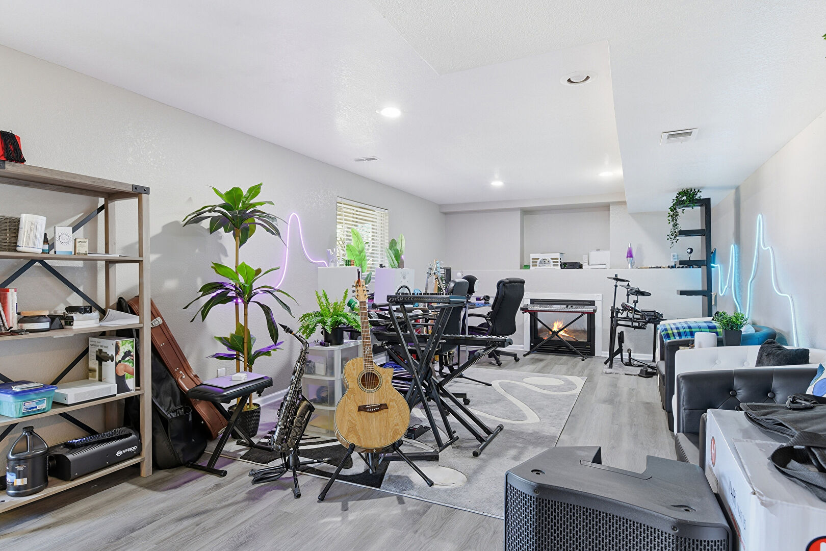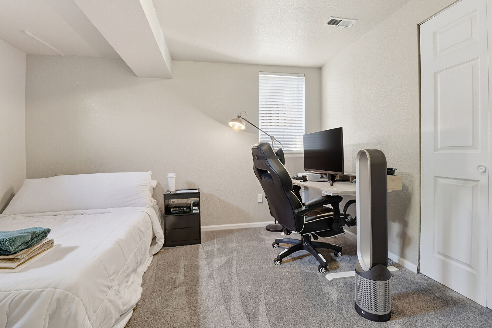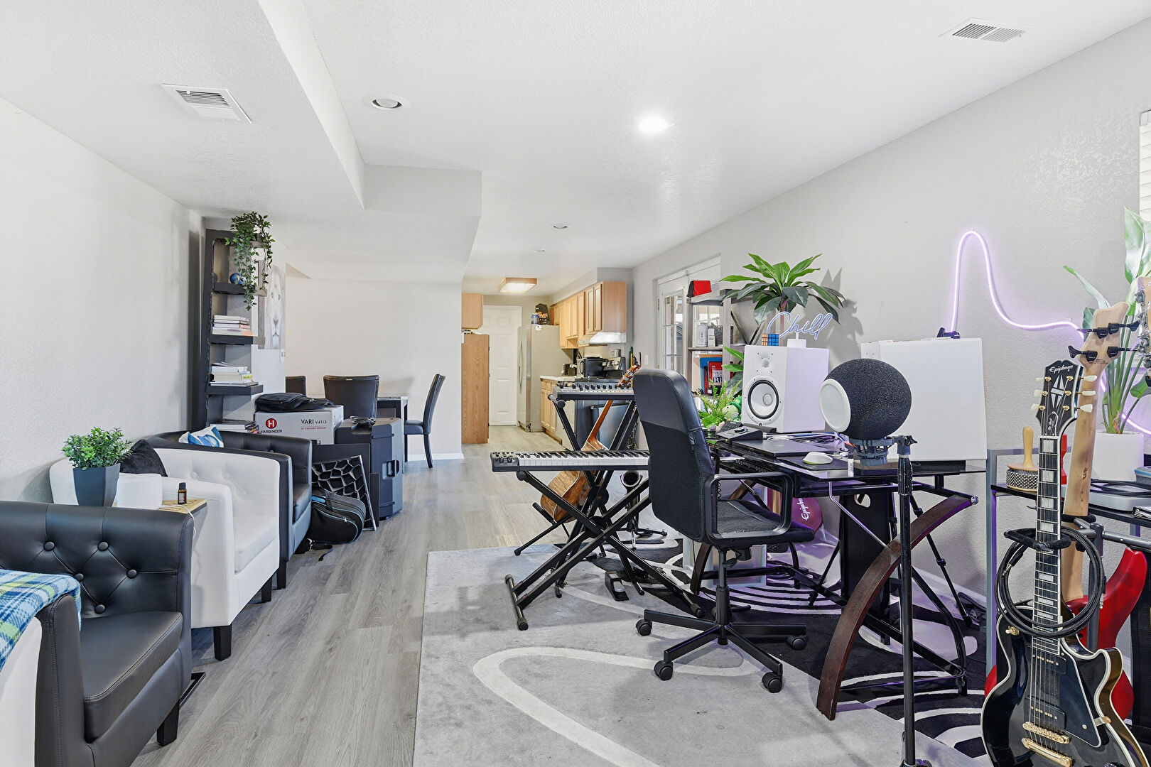 Drywall, Office Area, Recessed Lighting, Vent, Wood Finish Floor, Baseboards Wall, Natural Light