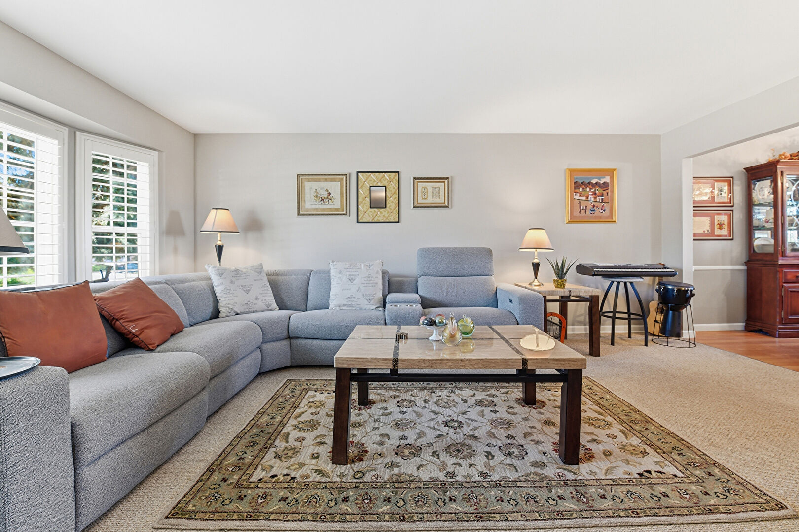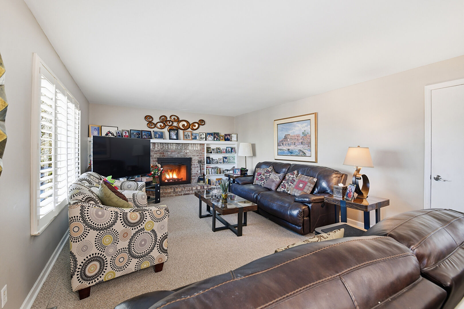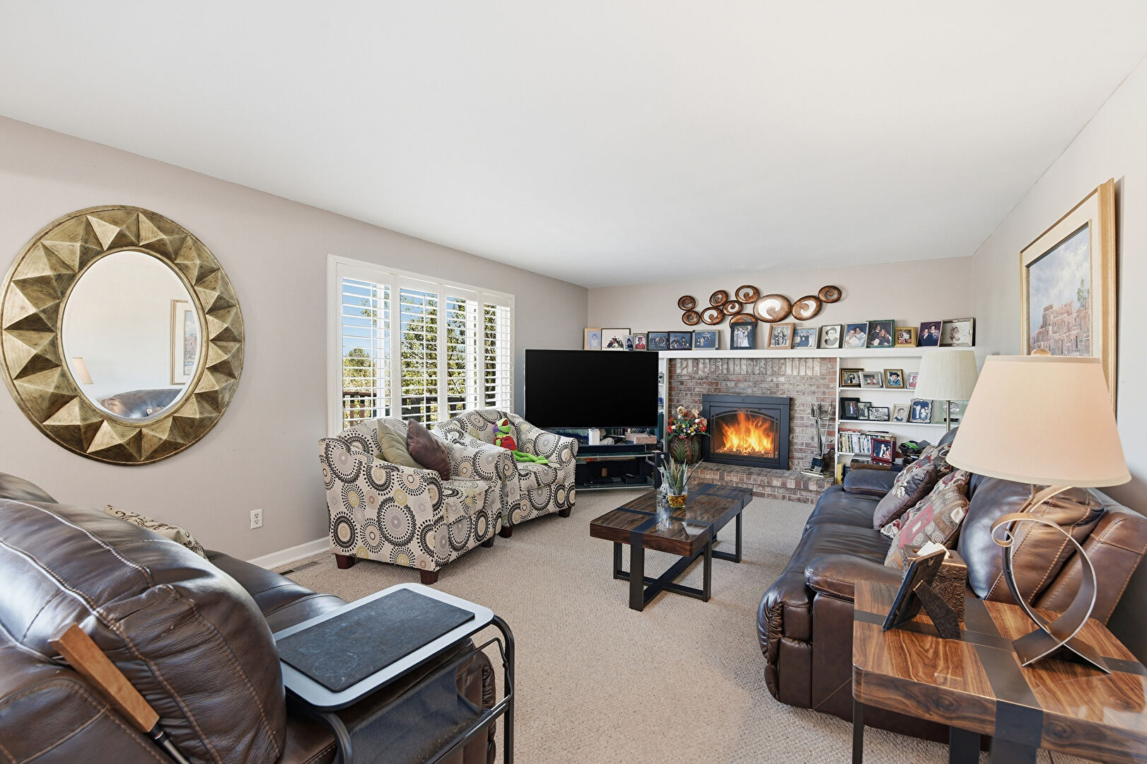 Baseboards Wall, Carpet, Drywall, Fireplace, Natural Light, Notable Chandelier, Carpet, Fireplace