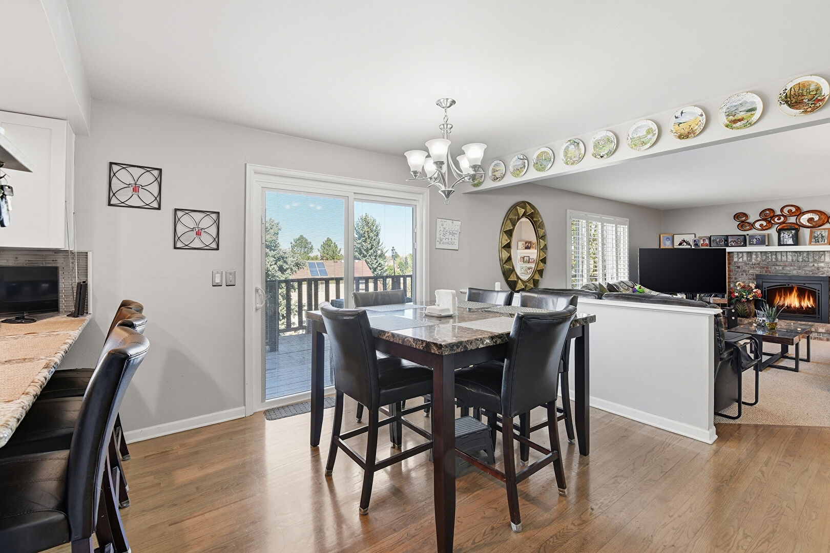 Baseboards Wall, Drywall, Fireplace, G Shaped Kitchen, Natural Light, Notable Chandelier, Recessed Lighting, Vent, Wood Finish Floor, Drywall, Wood Finish Floor