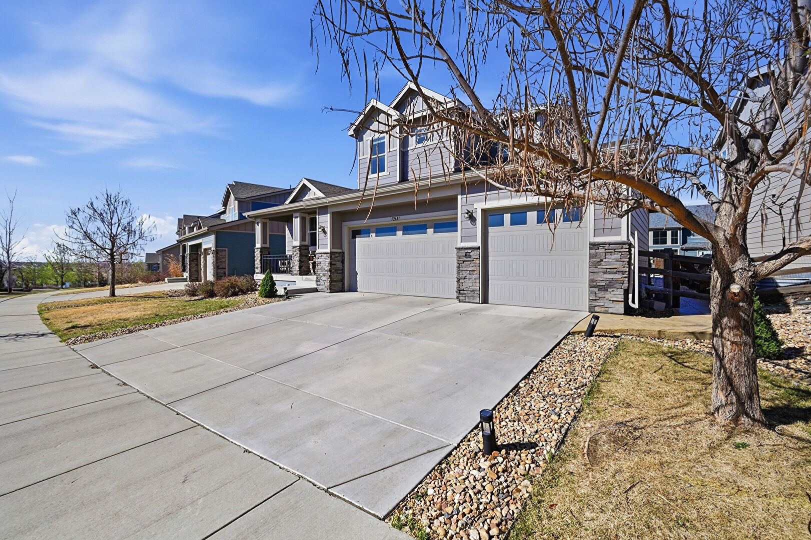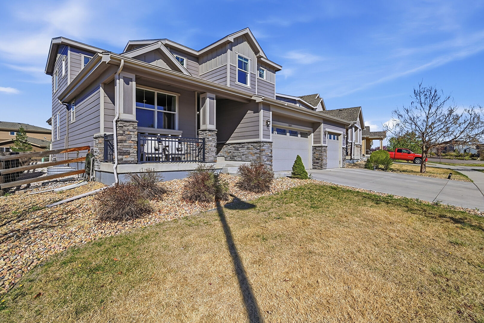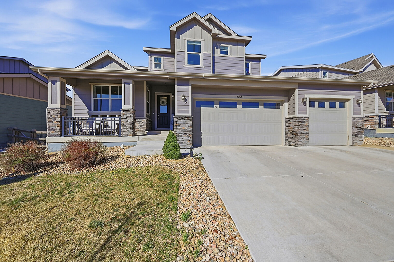 Board Batten Siding, Built In Garage, Concrete Foundation, Downspout, Driveway, Fence, Gutters, Horizontal Siding, Lawn, Porch, Stone Siding, Vertical Siding, Driveway, Horizontal Siding, Porch