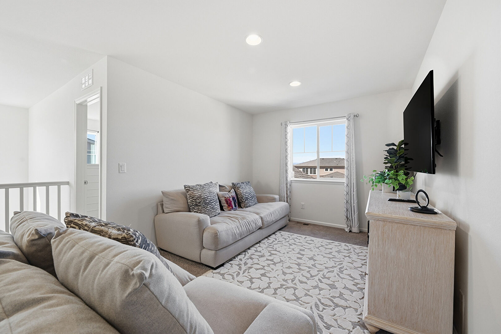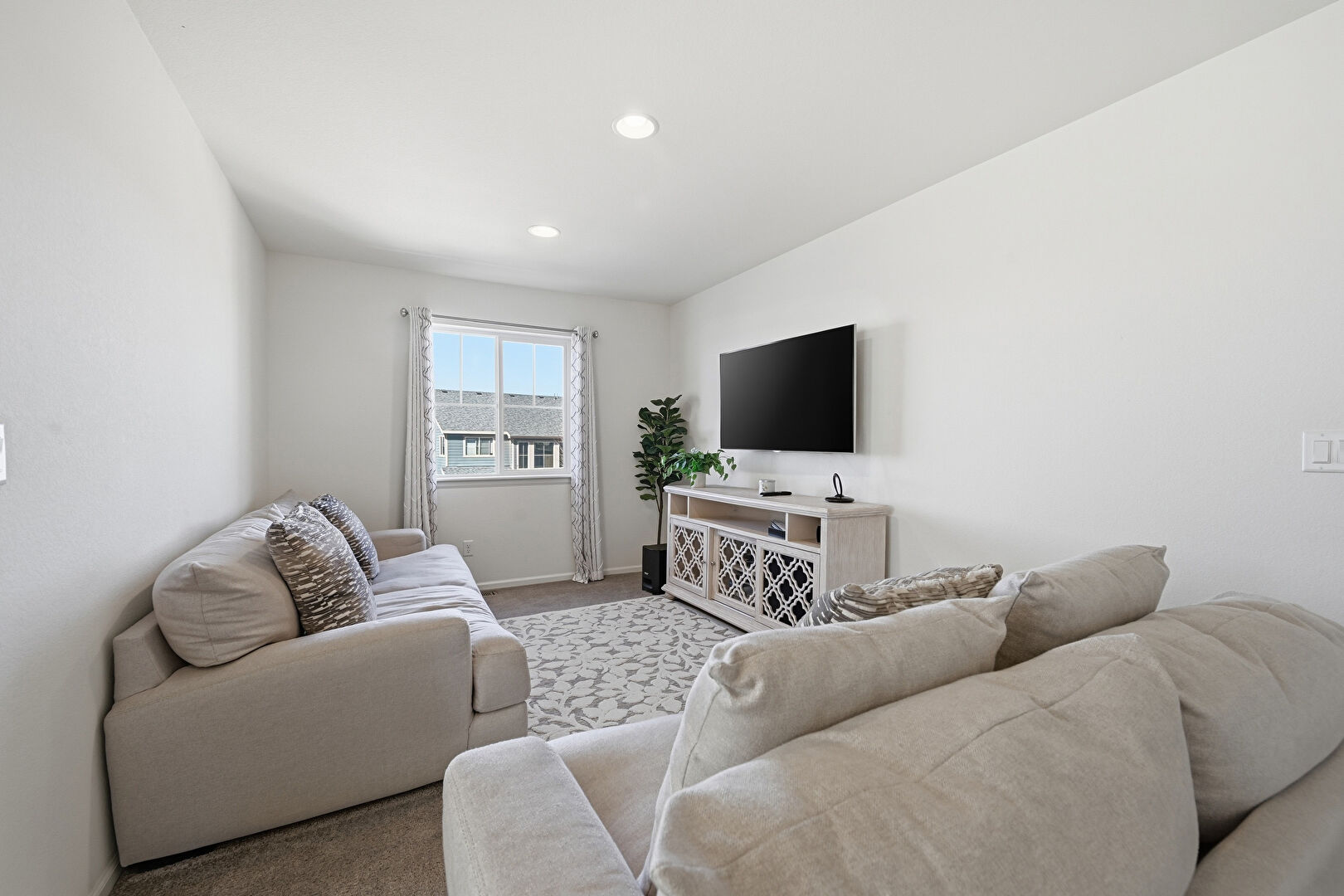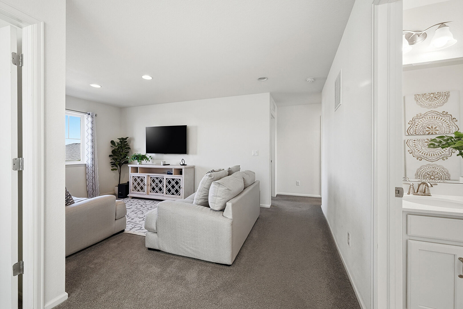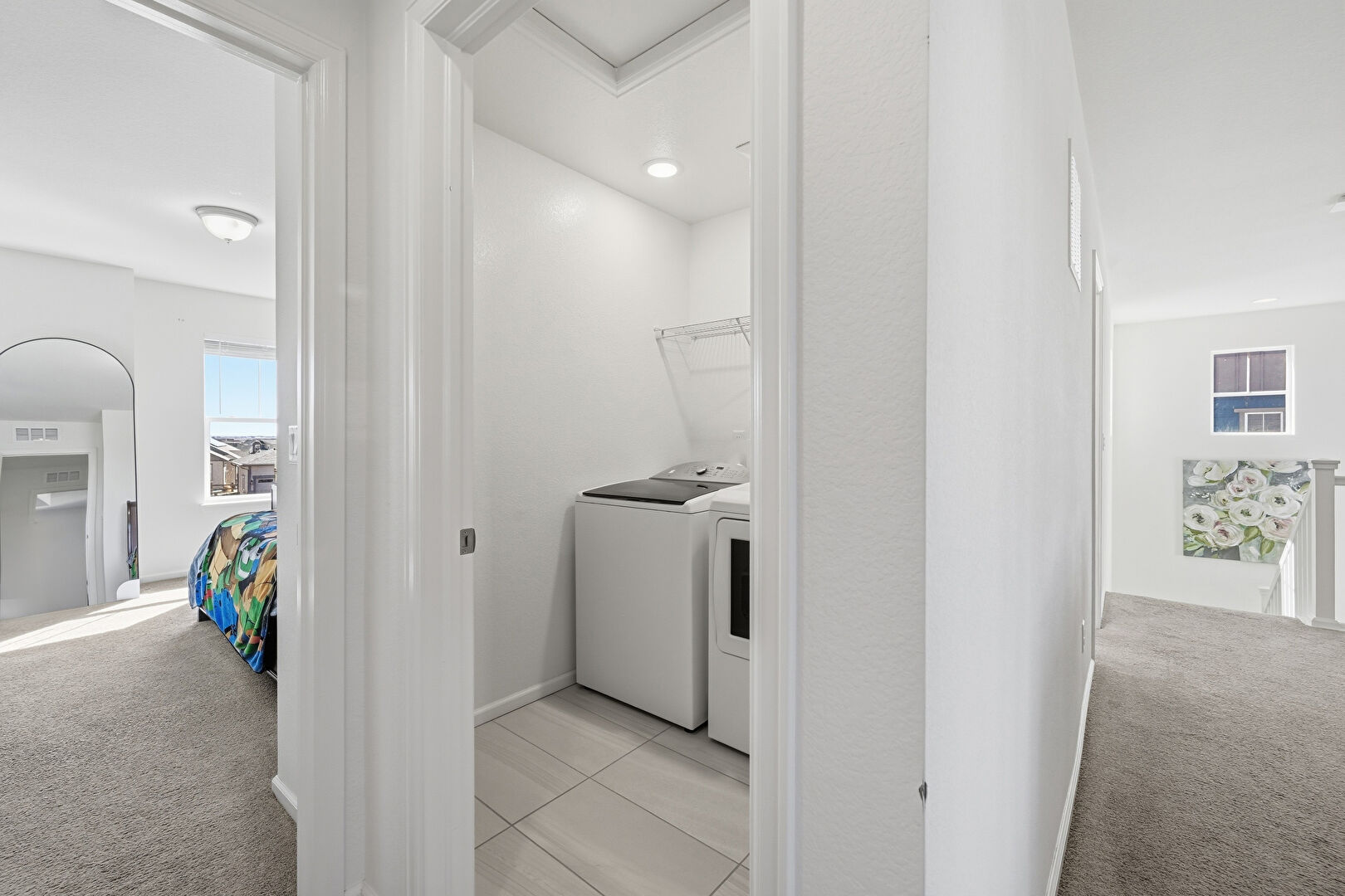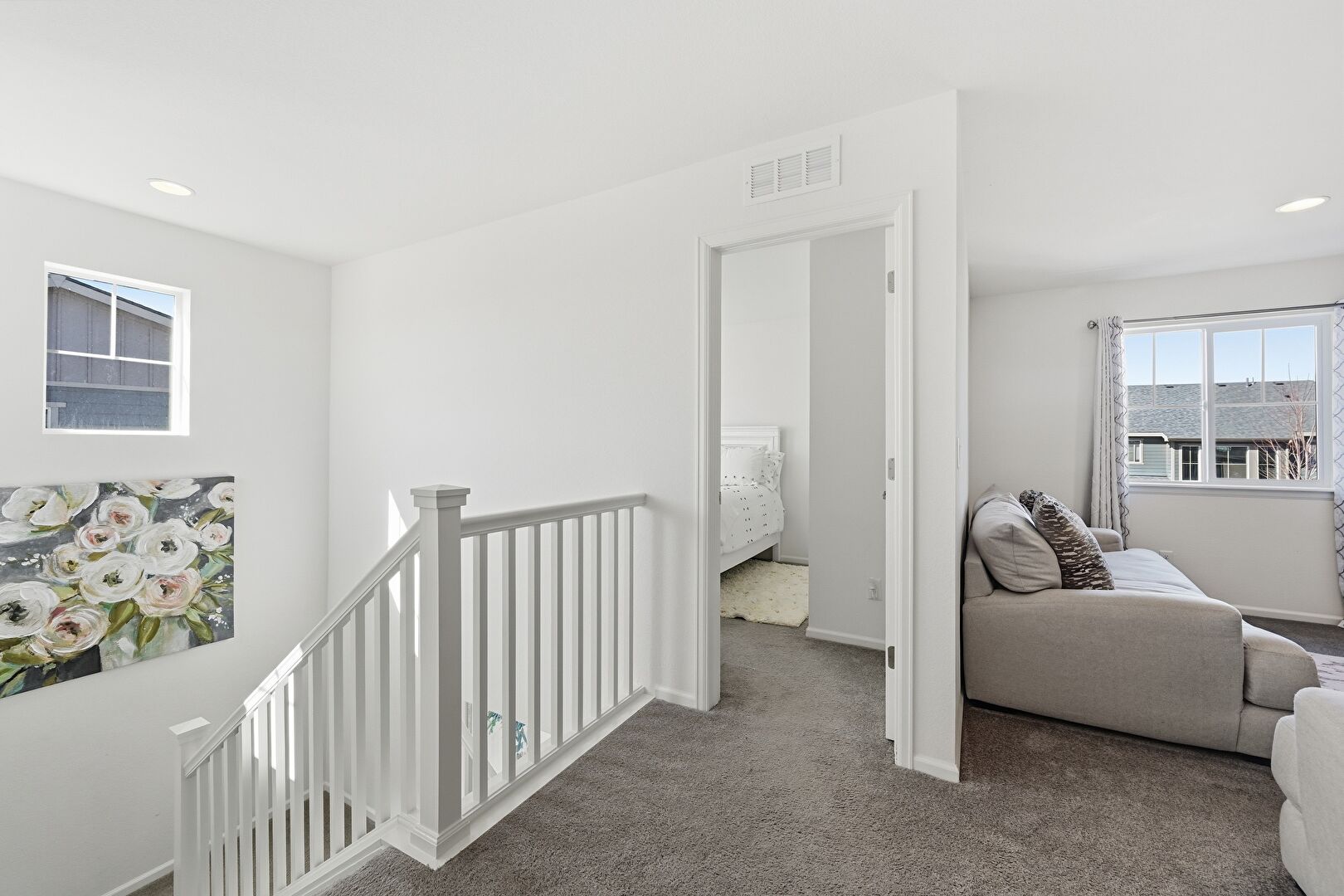 Baseboards Wall, Carpet, Drywall, Laundry, Loft, Natural Light, Recessed Lighting, Scuttle, Tile Floor, Vaulted Ceiling, Vent, Wood Finish Floor, Drywall, Natural Light, Upstairs Landing