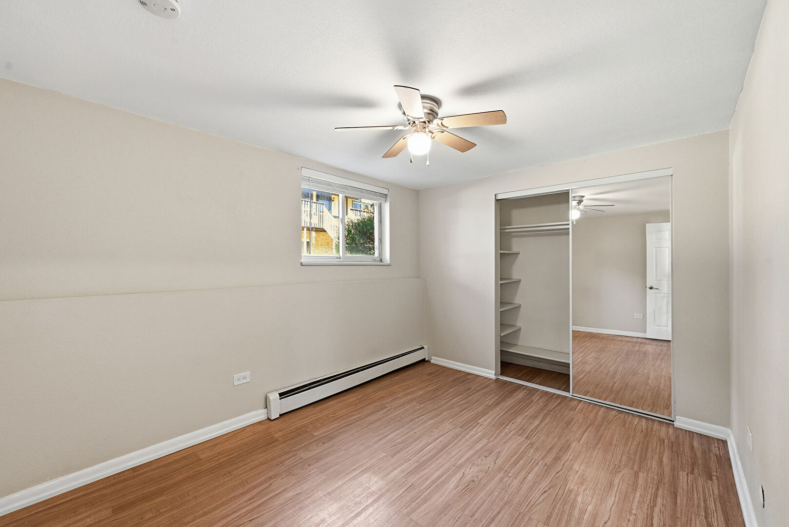 Baseboards Wall, Ceiling Fan, Closet, Drywall, Natural Light, Smoke Carbon Monoxide Detector, Wood Finish Floor, Baseboard Radiator, Baseboards Wall