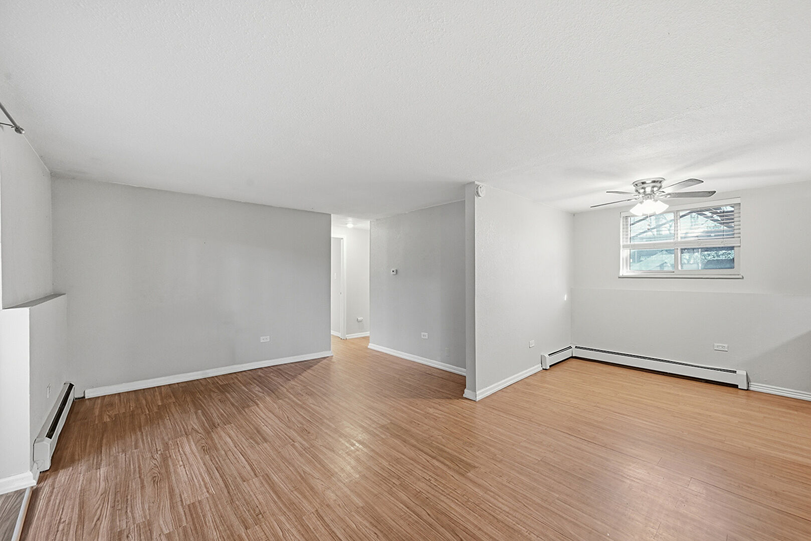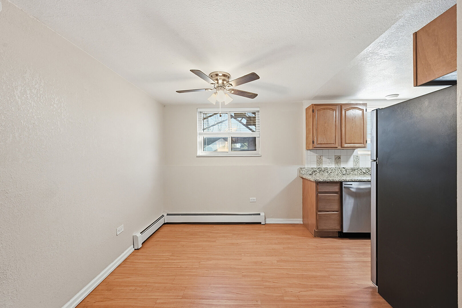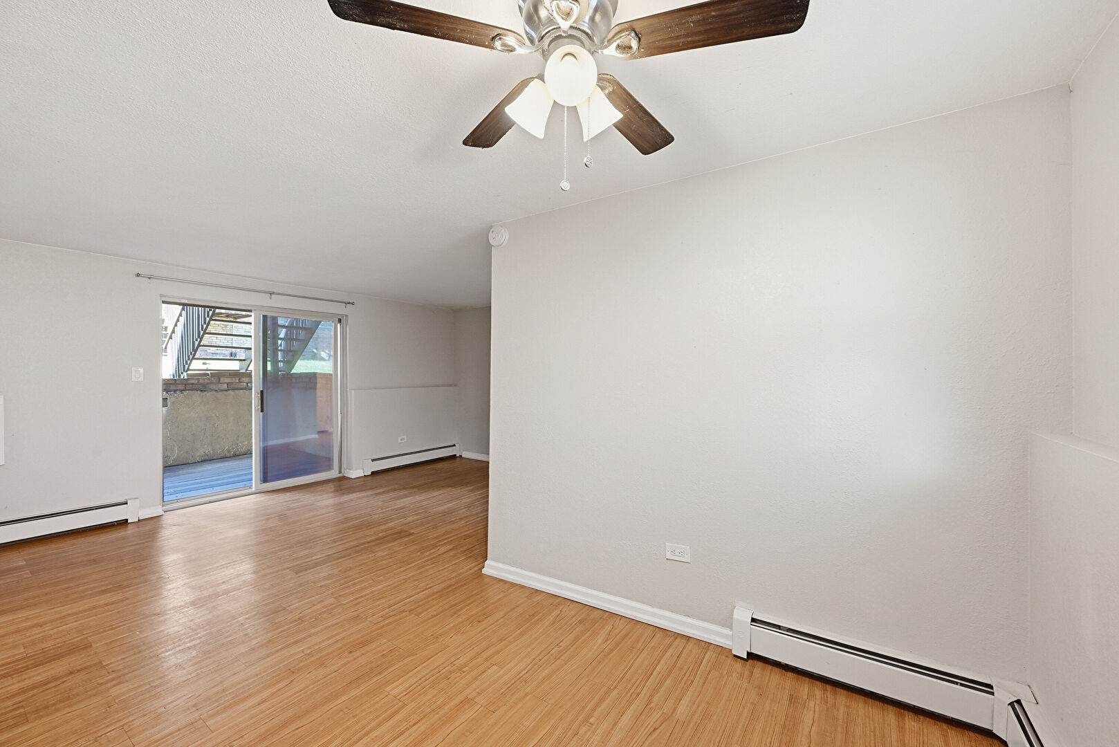 Baseboard Radiator, Baseboards Wall, Ceiling Fan, Drywall, Natural Light, Wood Finish Floor