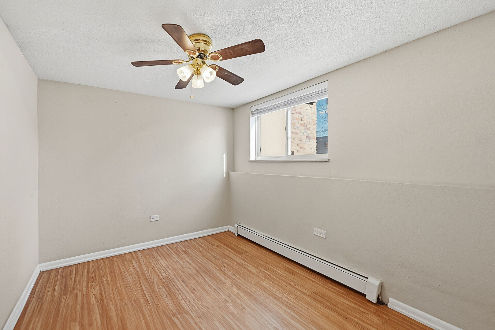 Baseboard Radiator, Baseboards Wall, Ceiling Fan, Closet, Drywall, Natural Light, Textured Ceiling, Wood Finish Floor, Baseboards Wall, Natural Light, Wood Finish Floor