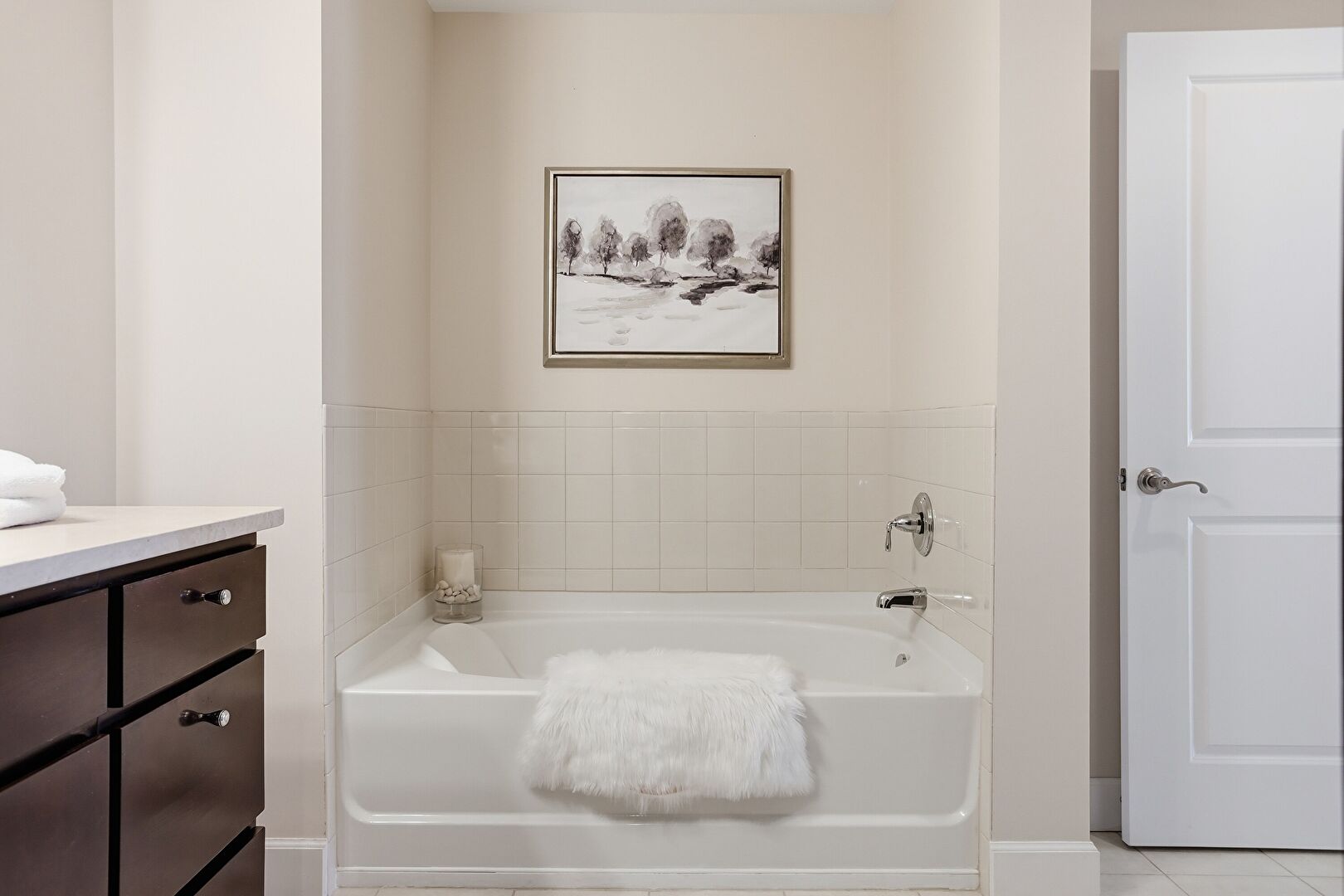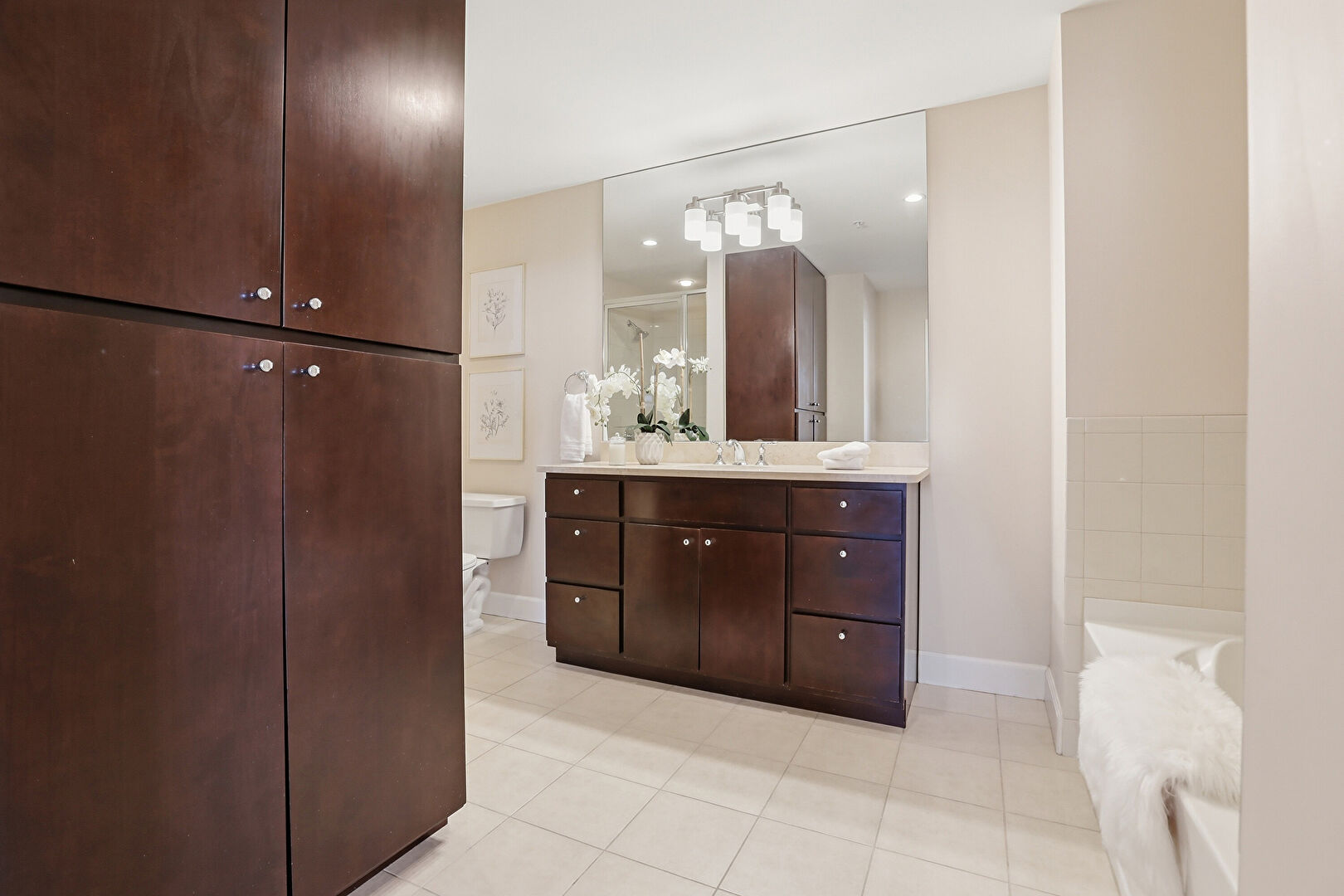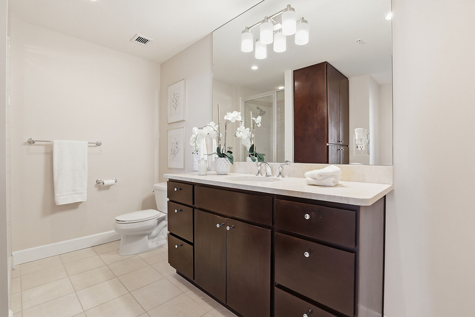 Baseboards Wall, Drywall, Full Bathroom, Recessed Lighting, Tile Floor, Vanity, Vent, Closet, Tile Floor, Vanity