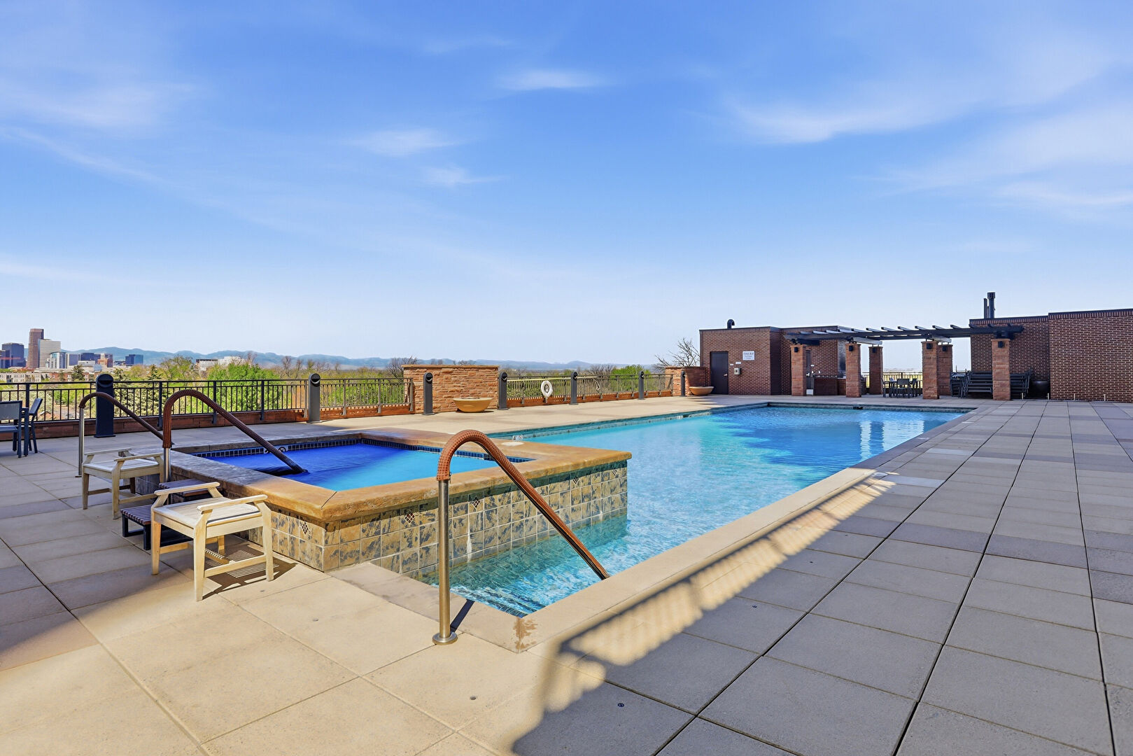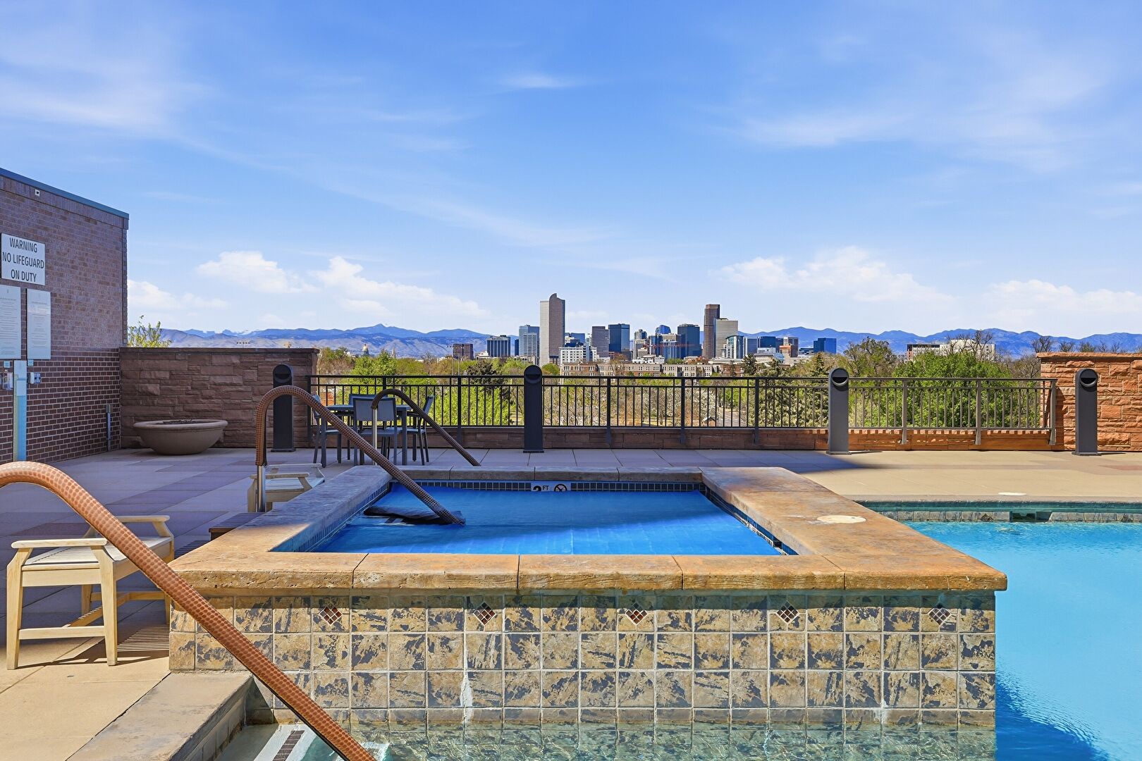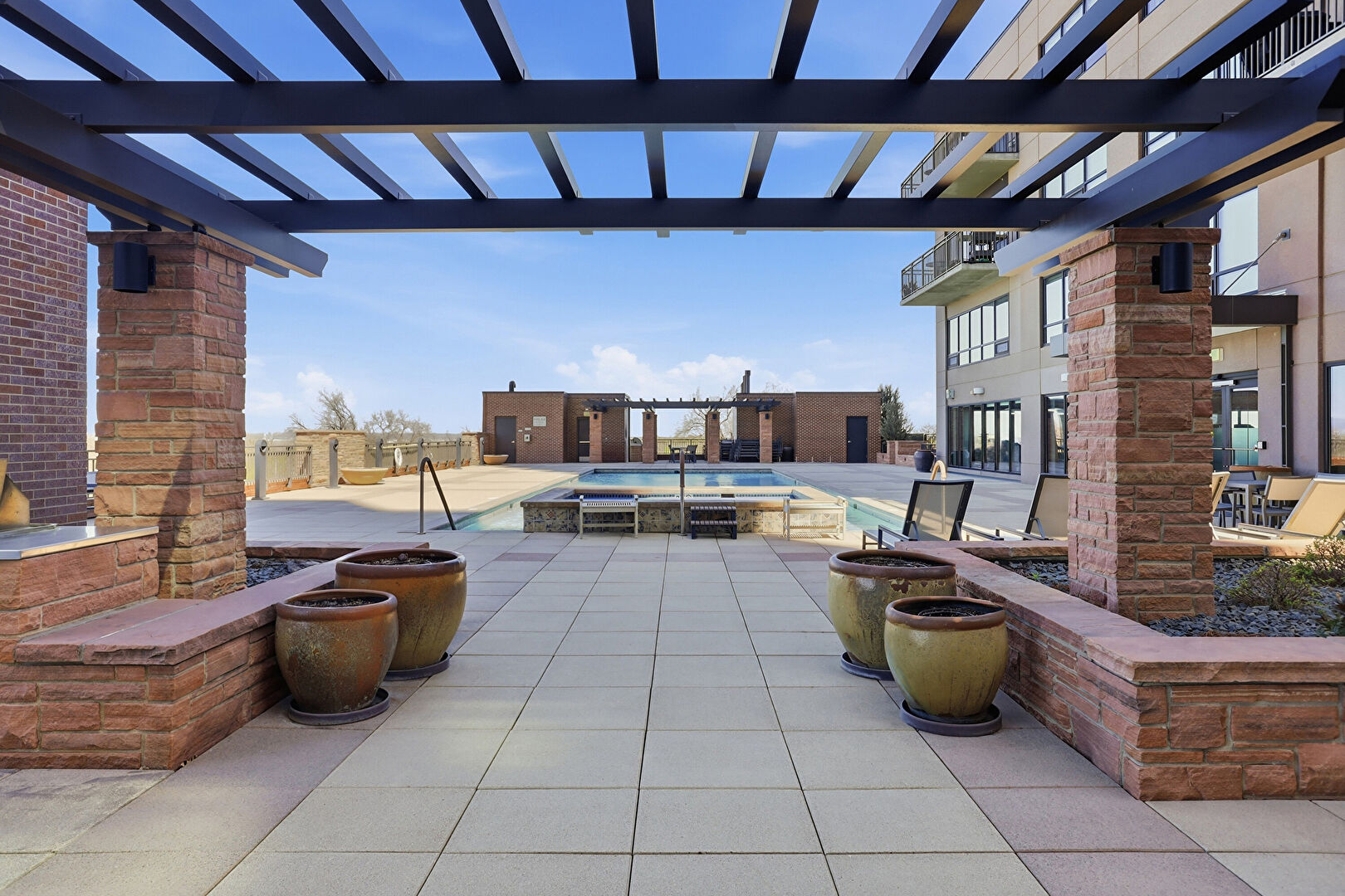 Apartment Complex View, City View, Fence, Fire Pit, Grill, Handrail, Hot Tub, Mountain View, Outdoor Dining Area, Outdoor Living Space, Patio, Pergola, Pool, Pool Hot Tub Combo, Handrail, Hot Tub, Mountain View, Patio, Pergola