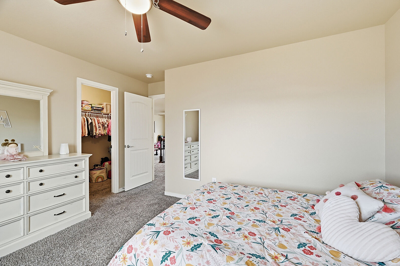 Baseboards Wall, Carpet, Ceiling Fan, Drywall, Natural Light, Textured Ceiling, Vent, Carpet, Walk In Closet
