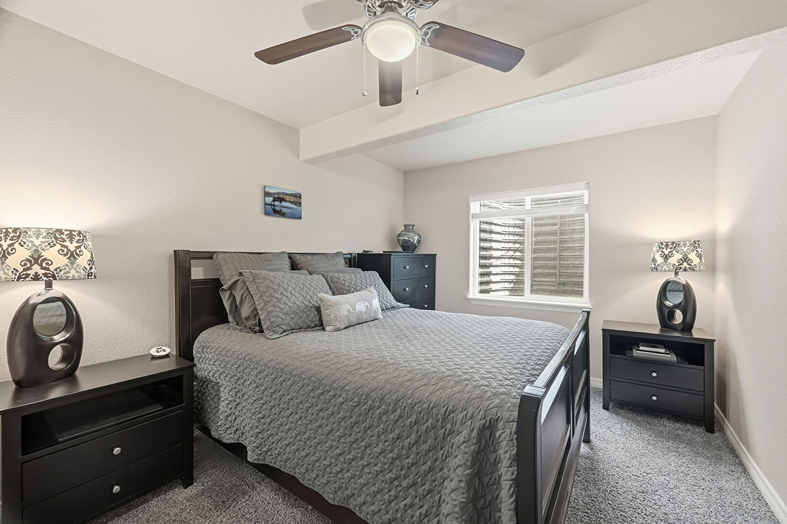 Baseboards Wall, Carpet, Ceiling Fan, Drywall, Natural Light, Textured Ceiling, Ceiling Fan, Drywall
