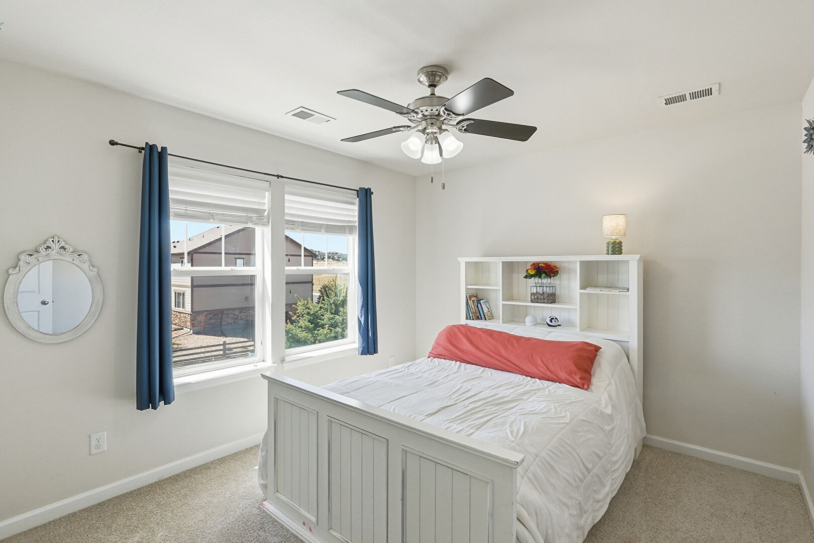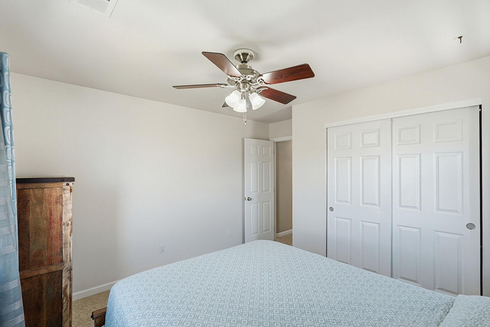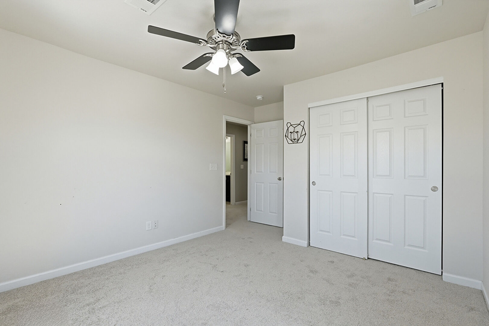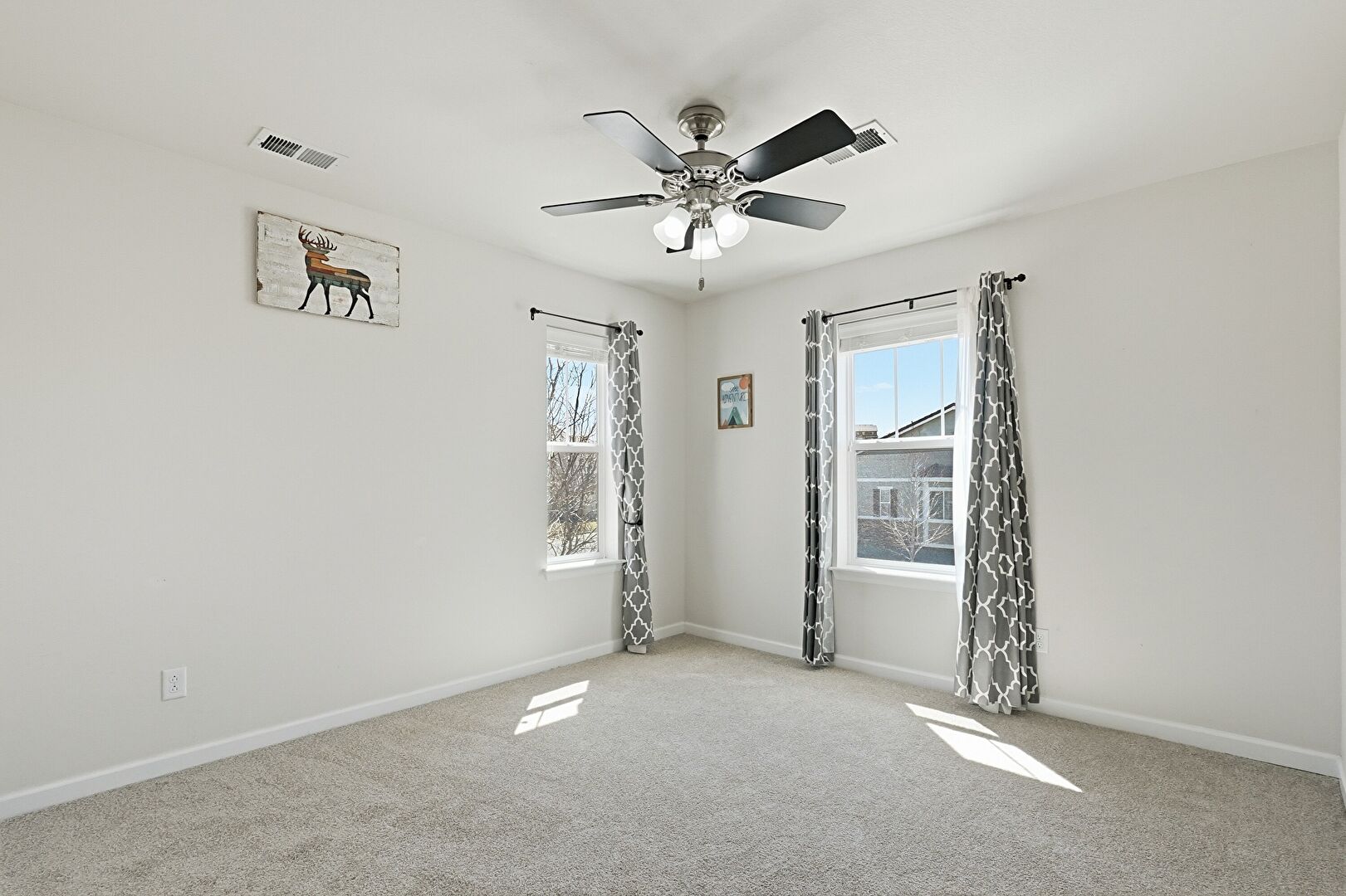 Carpet, Ceiling Fan, Closet, Drywall, Natural Light, Vent, Baseboards Wall